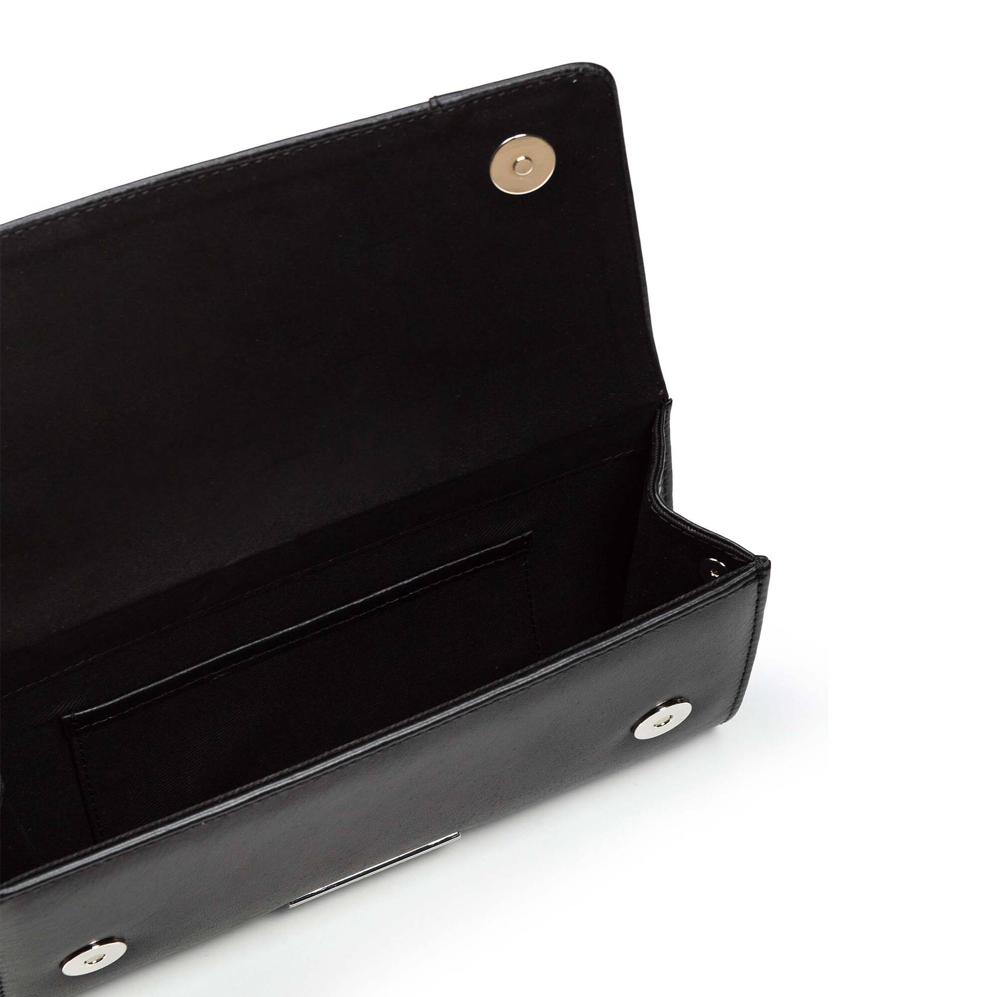 Bolso de piel con el interior forrado en textil y cadena de eslabones dorados.