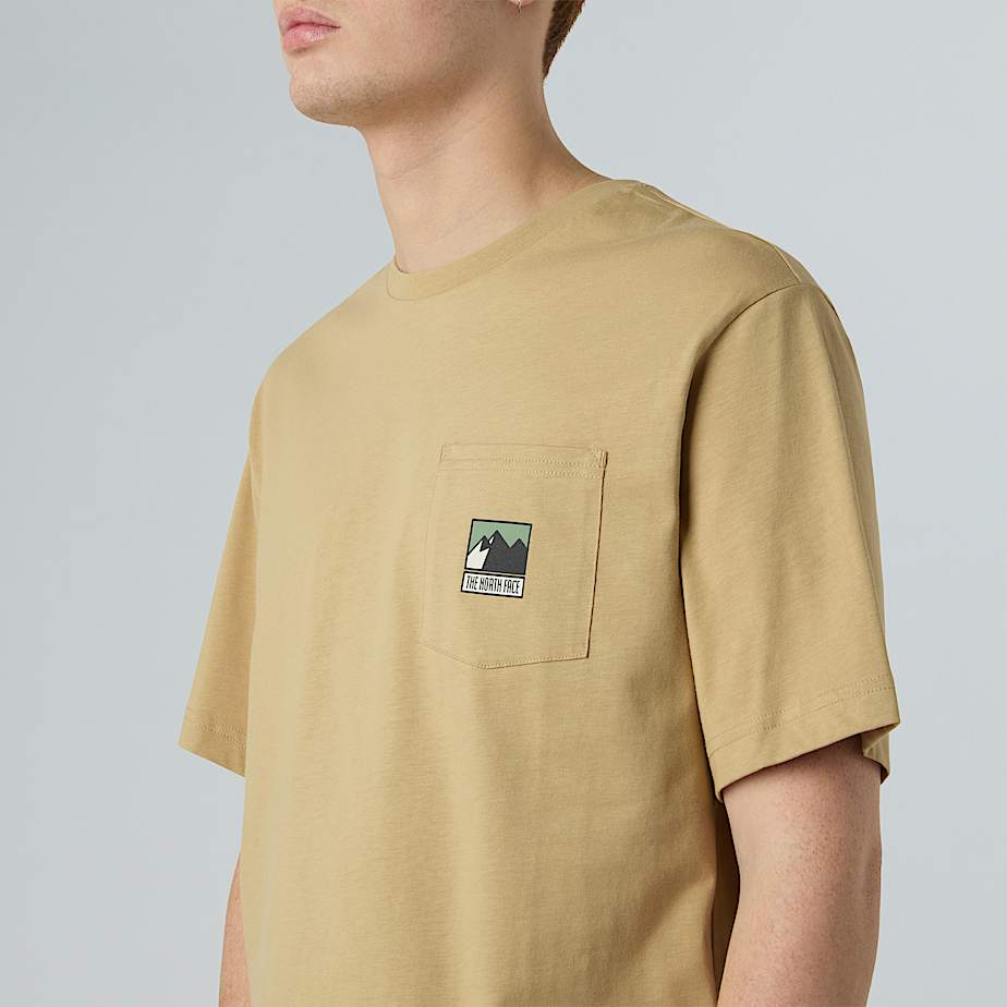 The North Face Mountain Logo Relaxt Geschnittenes Pocket T-shirt Für Herren Khaki Stone