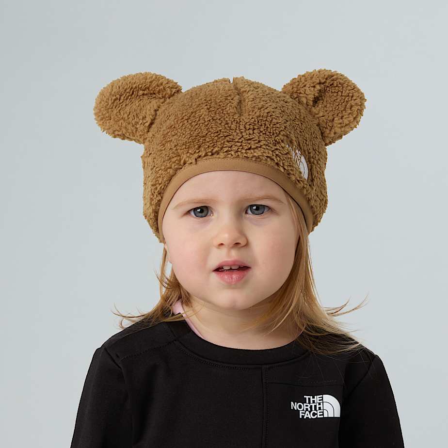 Dazu gibt es eine Mütze mit angenähten Bärenohren und aufgesticktem Logo.