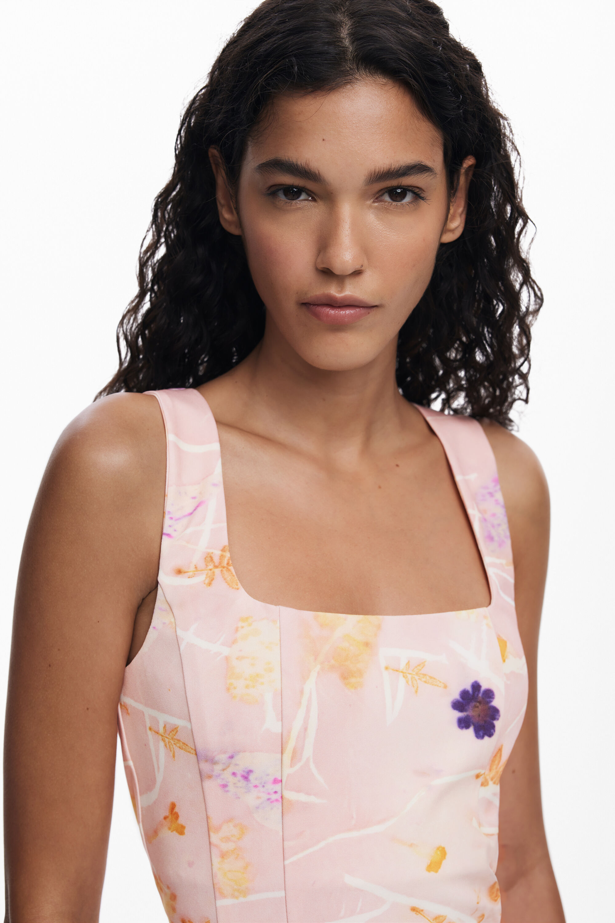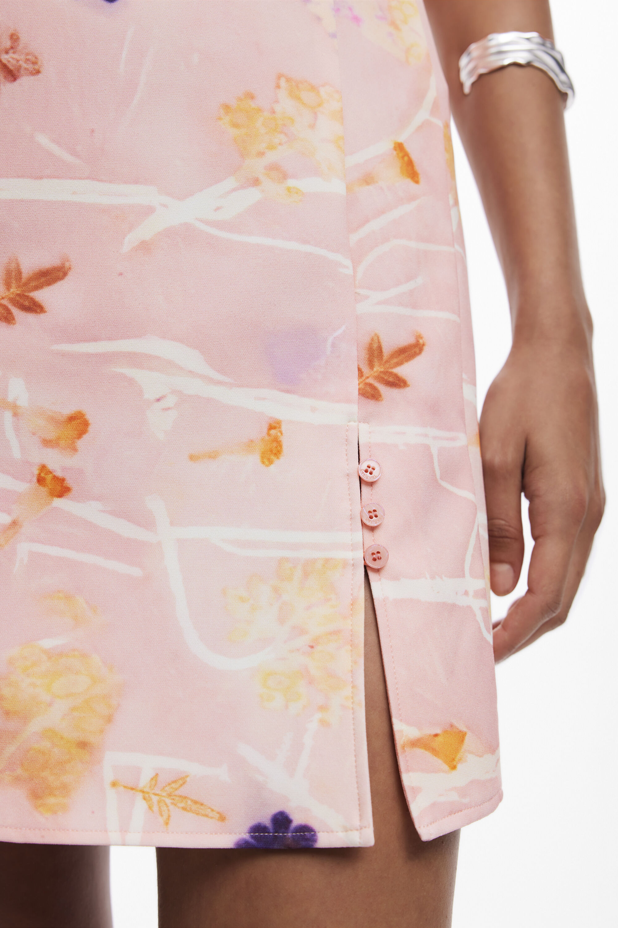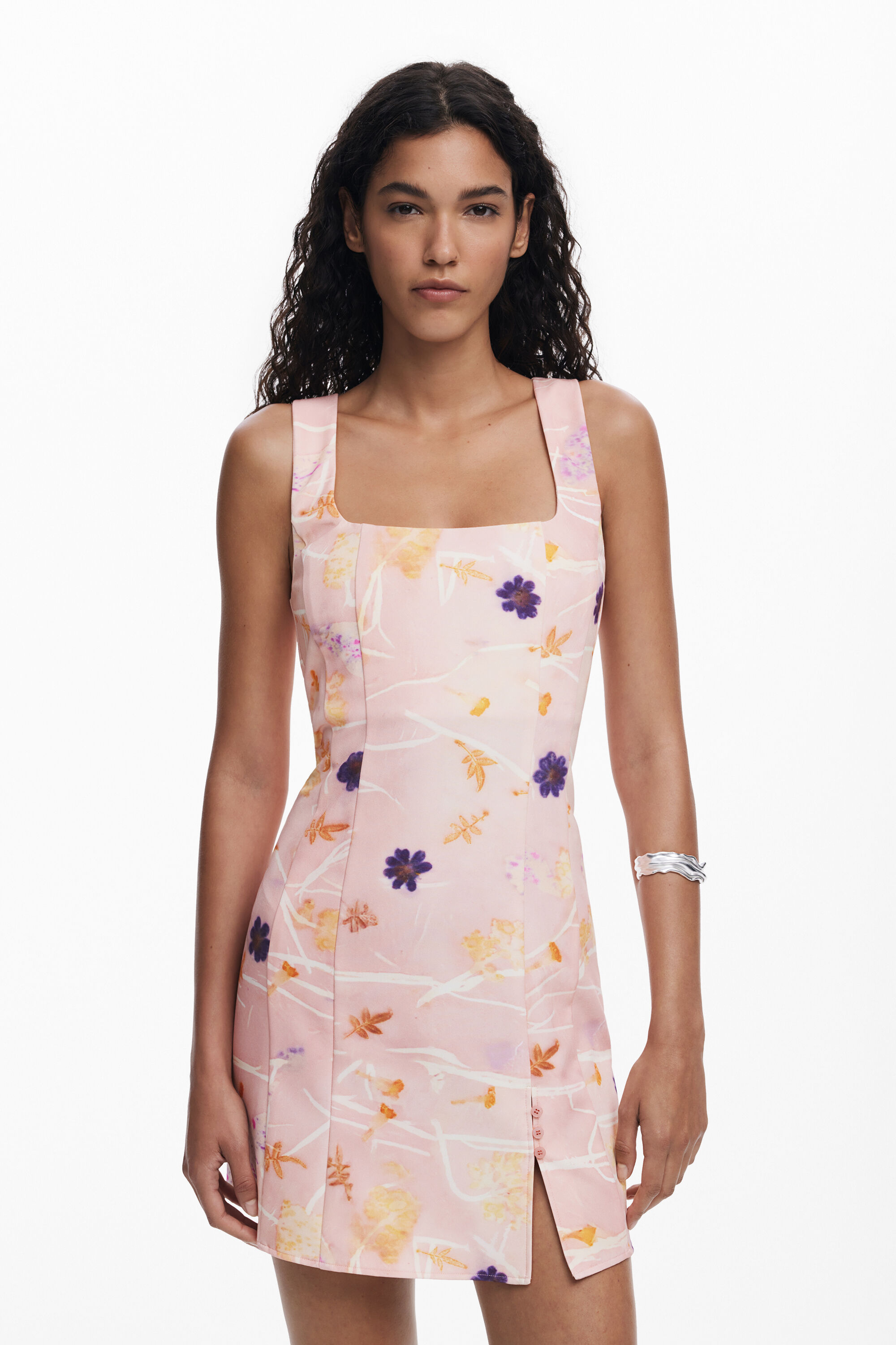Abito corto aderente con spalline, stampa floreale, chiusura con cerniera e spacco nella parte inferioreColore: