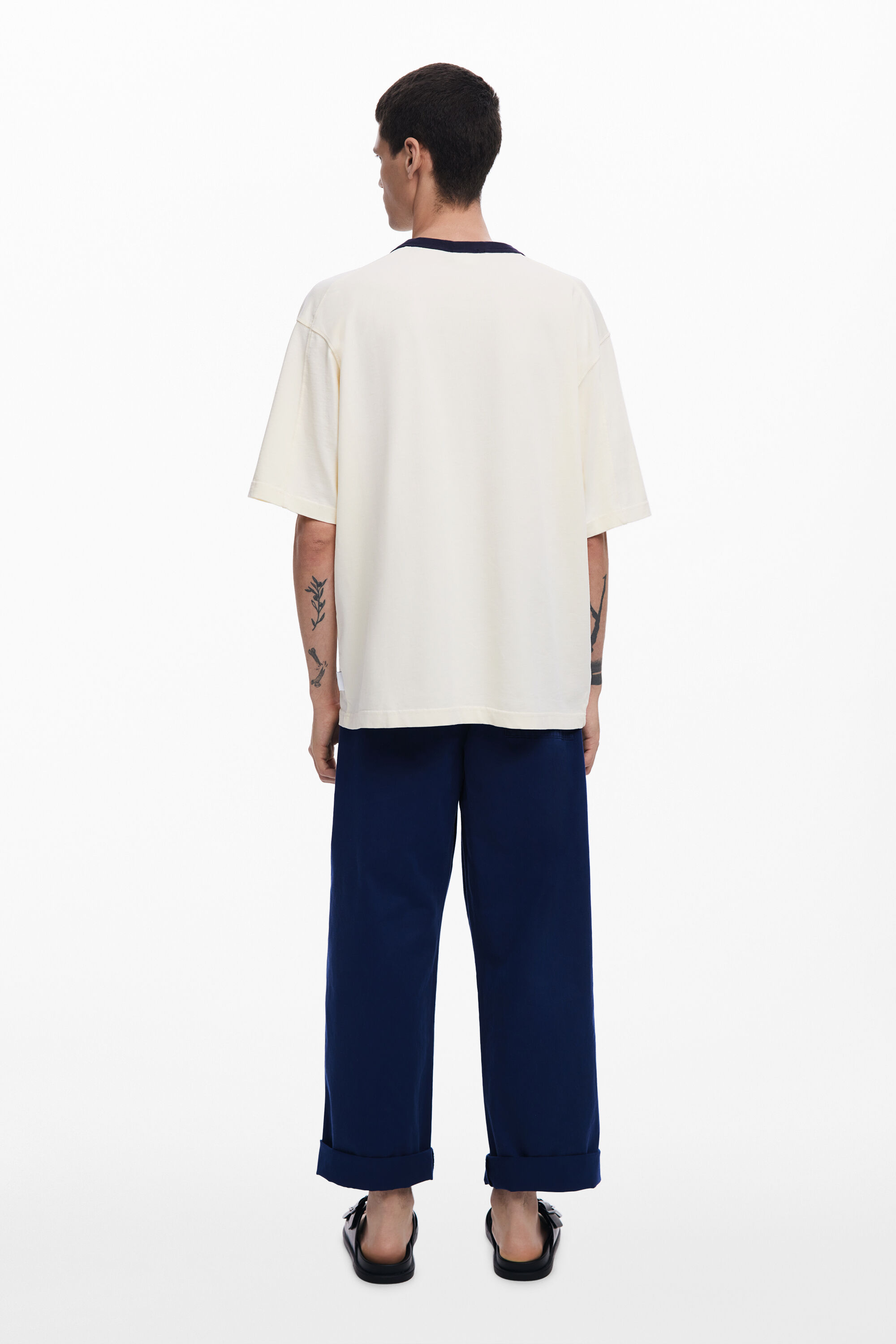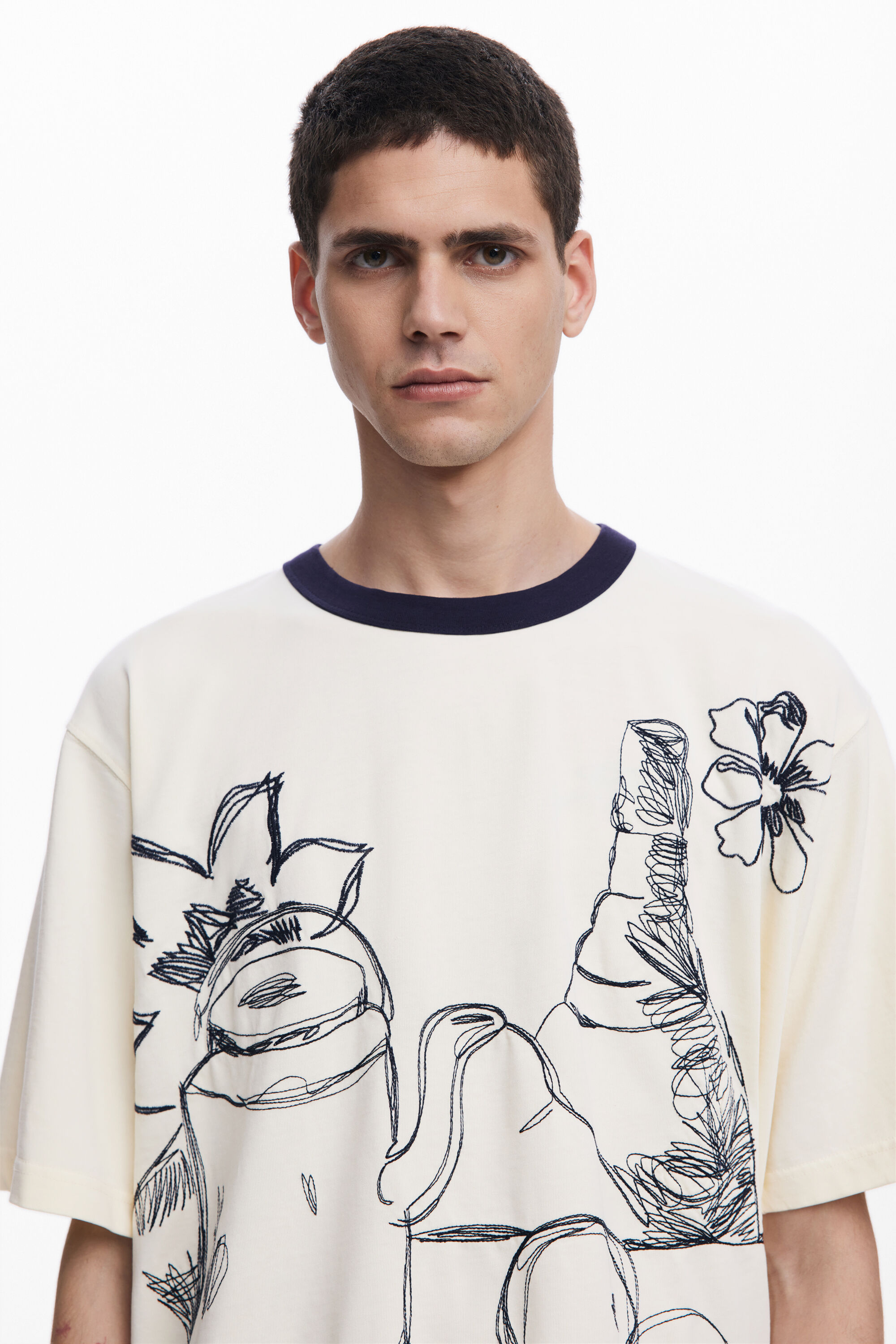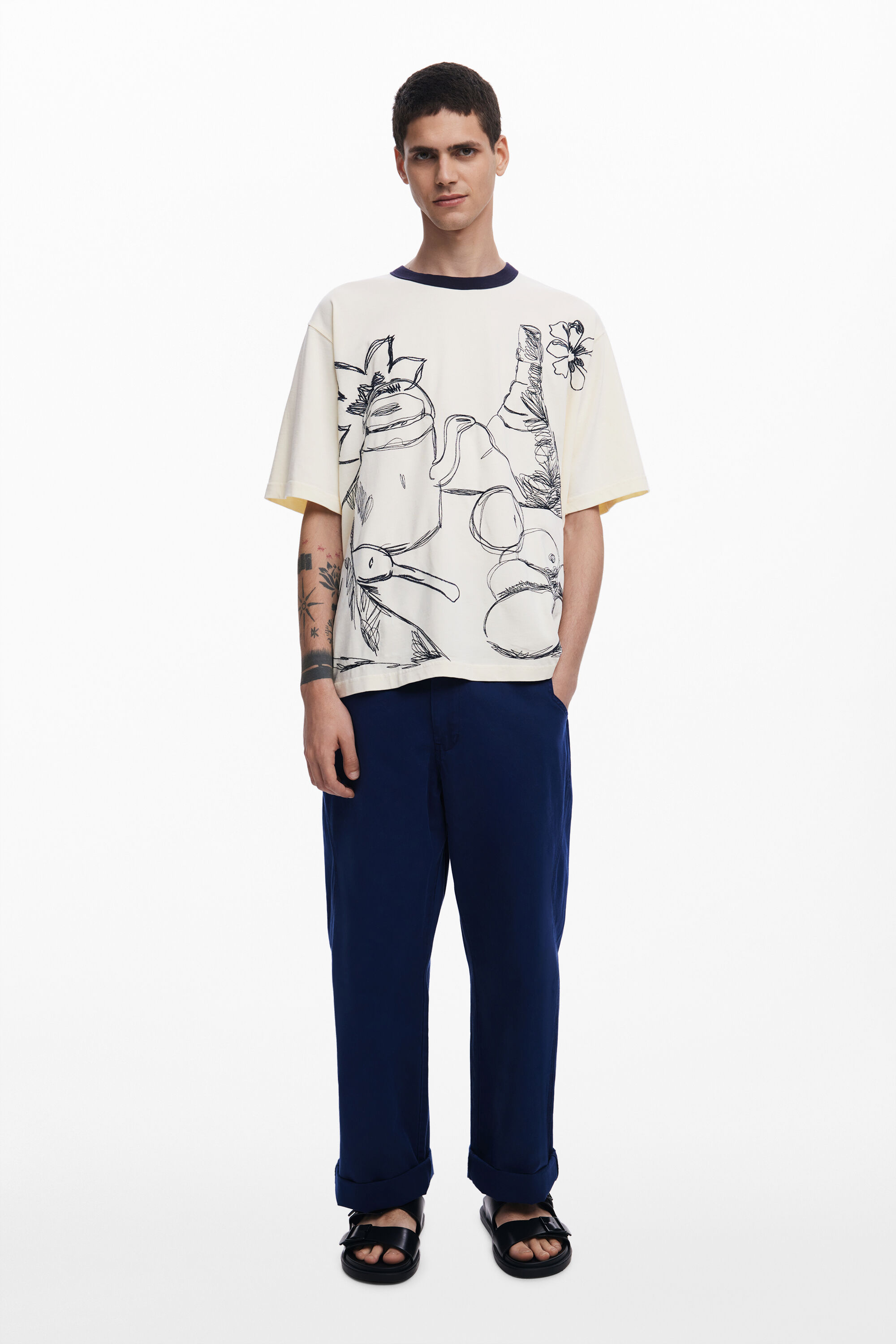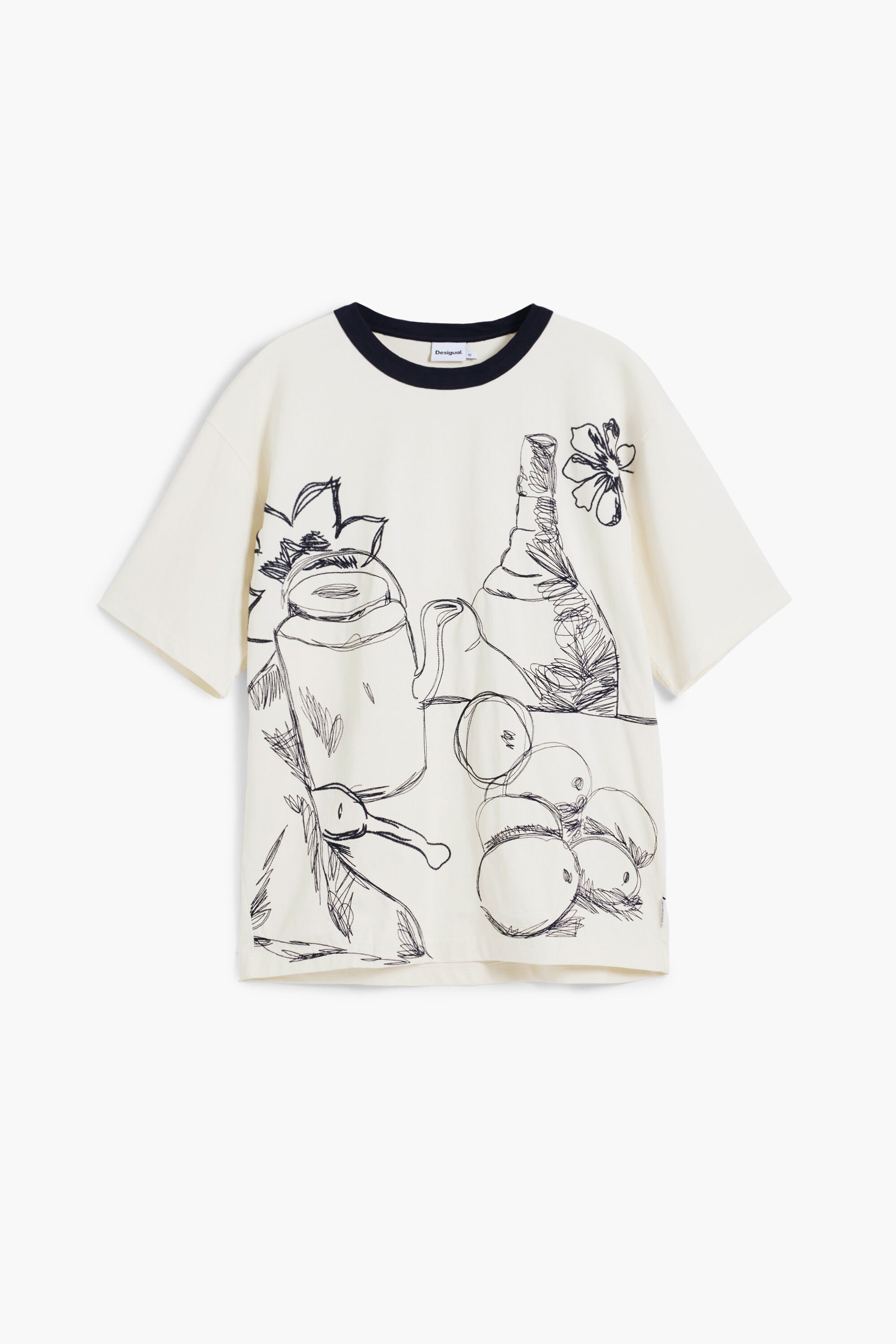 Maglietta a maniche corte con ricami di frutta e accessori da cucina, con estetica da natura morta e colletto a contrasto di colore.Colore: Tinta unitaFit: RegularCollo: rotondoManica: CortaDettagli ricamatiRealizzato con materiali sostenibiliCollezione AW25Progettato a BarcellonaAcquistando prodotti in cotone di Desigual, stai sostenendo il nostro investimento in Better Cotton.