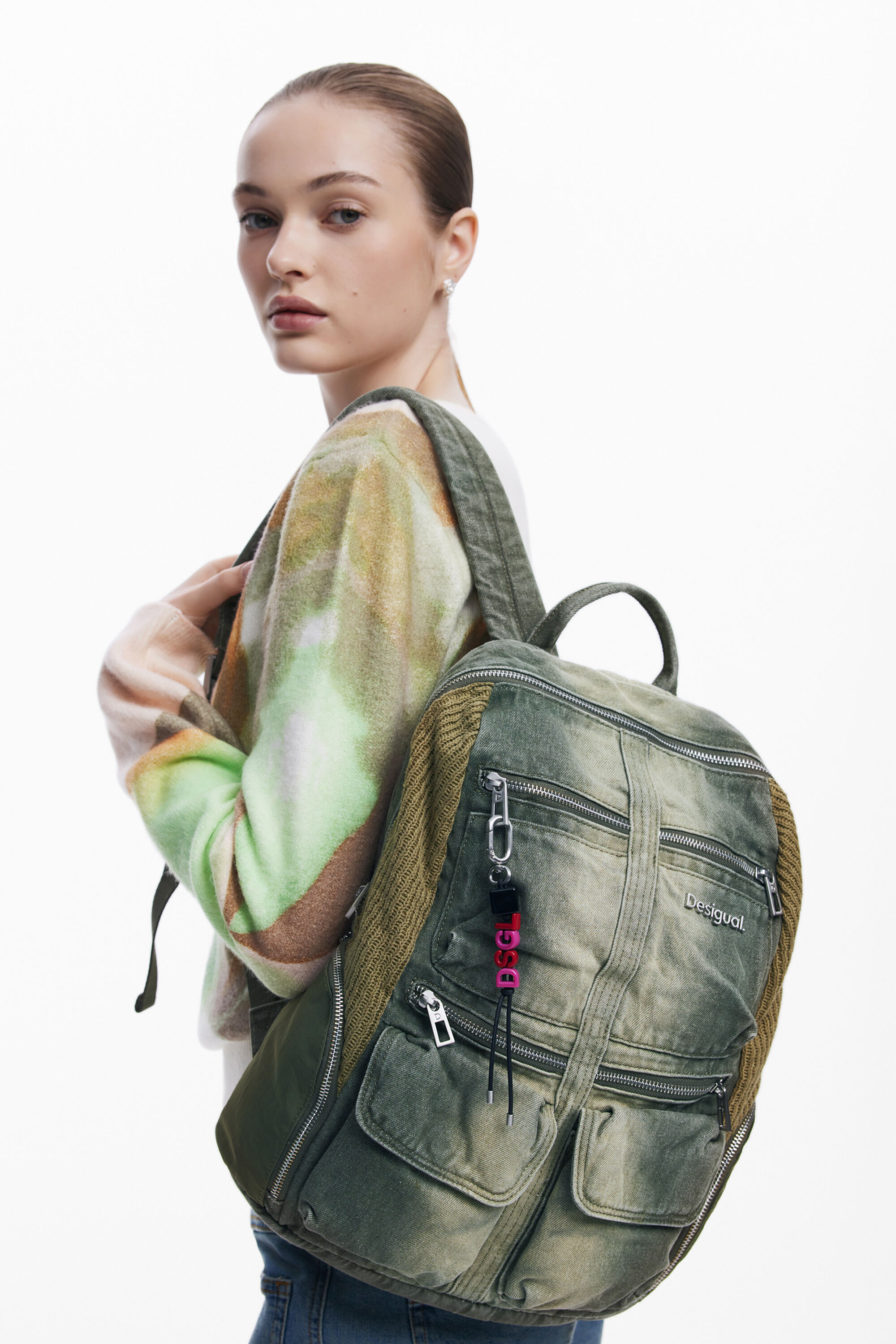 Zaino grande in denim effetto consumato combinato con maglia, con molteplici tasche esterne, chiusura con cerniera con scomparto per il computer e tasca interna.Effetto consumatoMolteplici tasche esterneChiusura: con cernieraScomparto interno per il computerTasca interna con cernieraTessuto denimScomparto internoLaptop FriendlyProgettato a BarcellonaMisure: 33x15x38,5 cm
