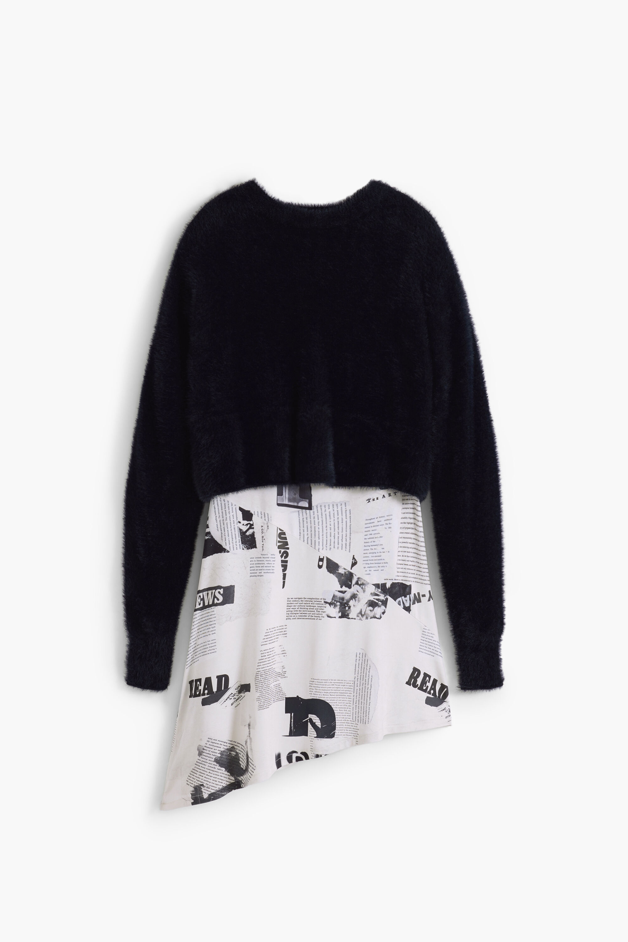 Abito dal tocco morbido con orlo asimmetrico, senza maniche e collo rotondo con stampa di giornale e maglione sovrapposto rimovibile.Stampa ArtyFit: RegularCollo: rotondoManica: LungaLunghezza: MidiMaglione sovrapposto rimovibileRealizzato con materiali sostenibiliCollezione AW25Progettato a BarcellonaPoliestere riciclato