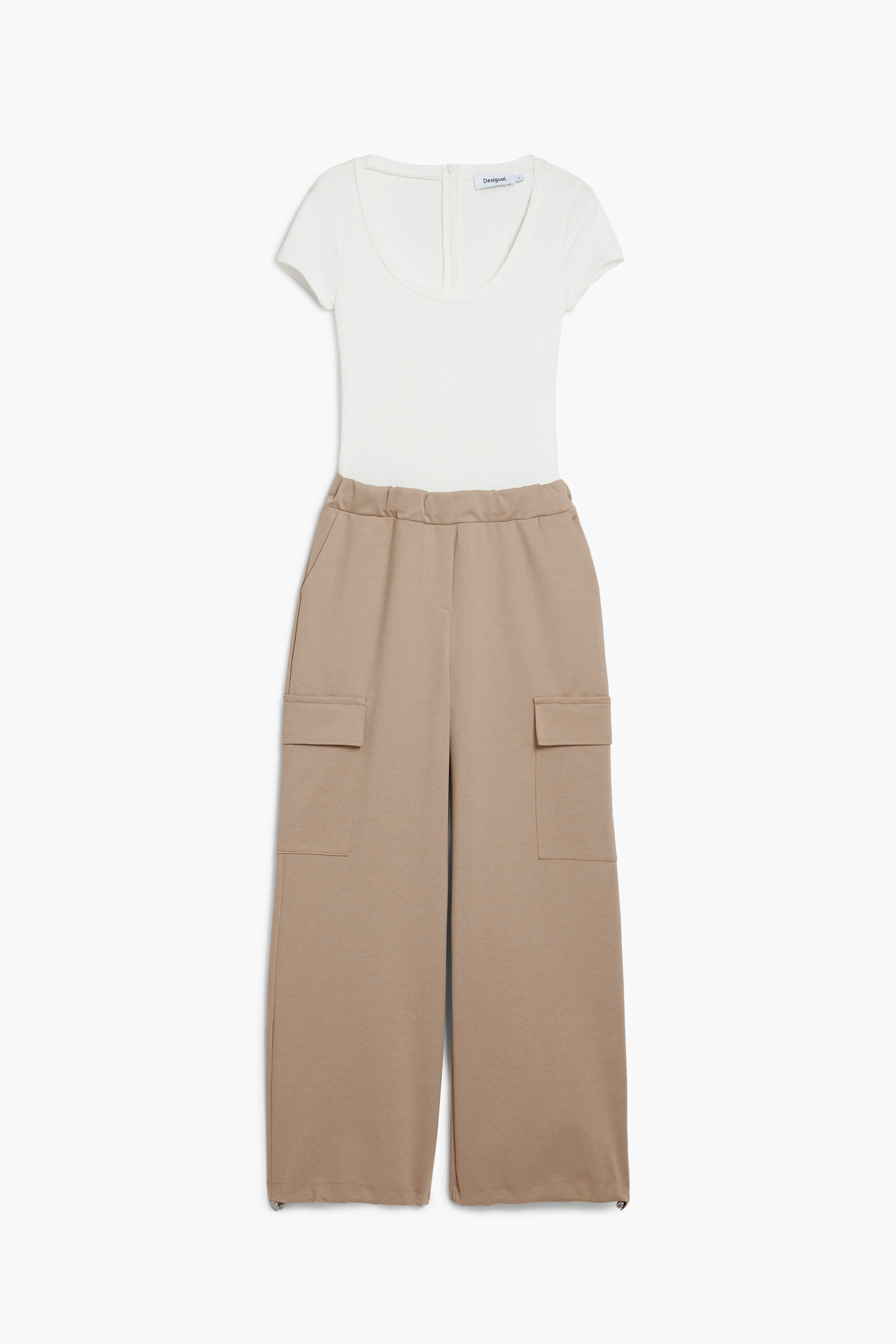 Tuta lunga bicolore con combinazione di tessuti effetto due pezzi, parte superiore liscia, a manica corta e collo rotondo e parte inferiore stile cargo.BicoloreFit: RegularCollo: rotondoManica cortaLunghezza: LungoVari tasche lateraliVita elasticaElastico regolabile sul fondo stile parachuteRealizzato con materiali sostenibiliCollezione AW25Progettato a BarcellonaPoliestere riciclato