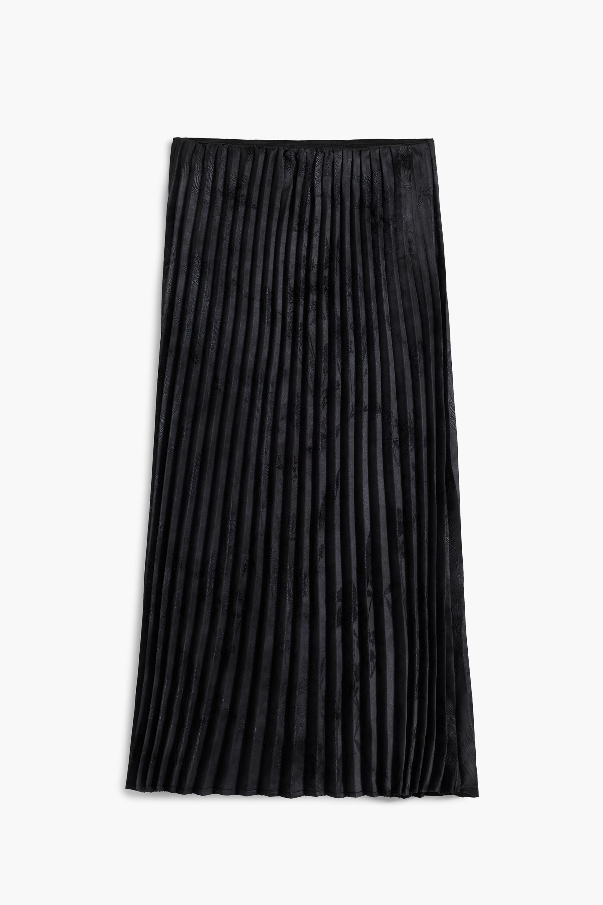 Gonna midi in tessuto elastico con pieghe e stampa di fiori scuri di ispirazione orientale.Stampa florealeVestibilità: drittaLunghezza: MidiVita elasticaTessuto plissettatoRealizzato con materiali sostenibiliCollezione AW25Progettato a BarcellonaPoliestere riciclato