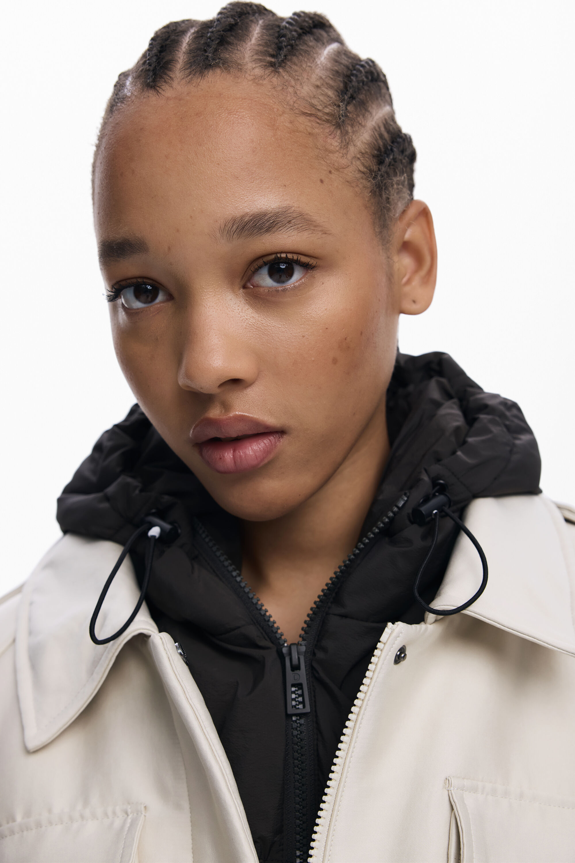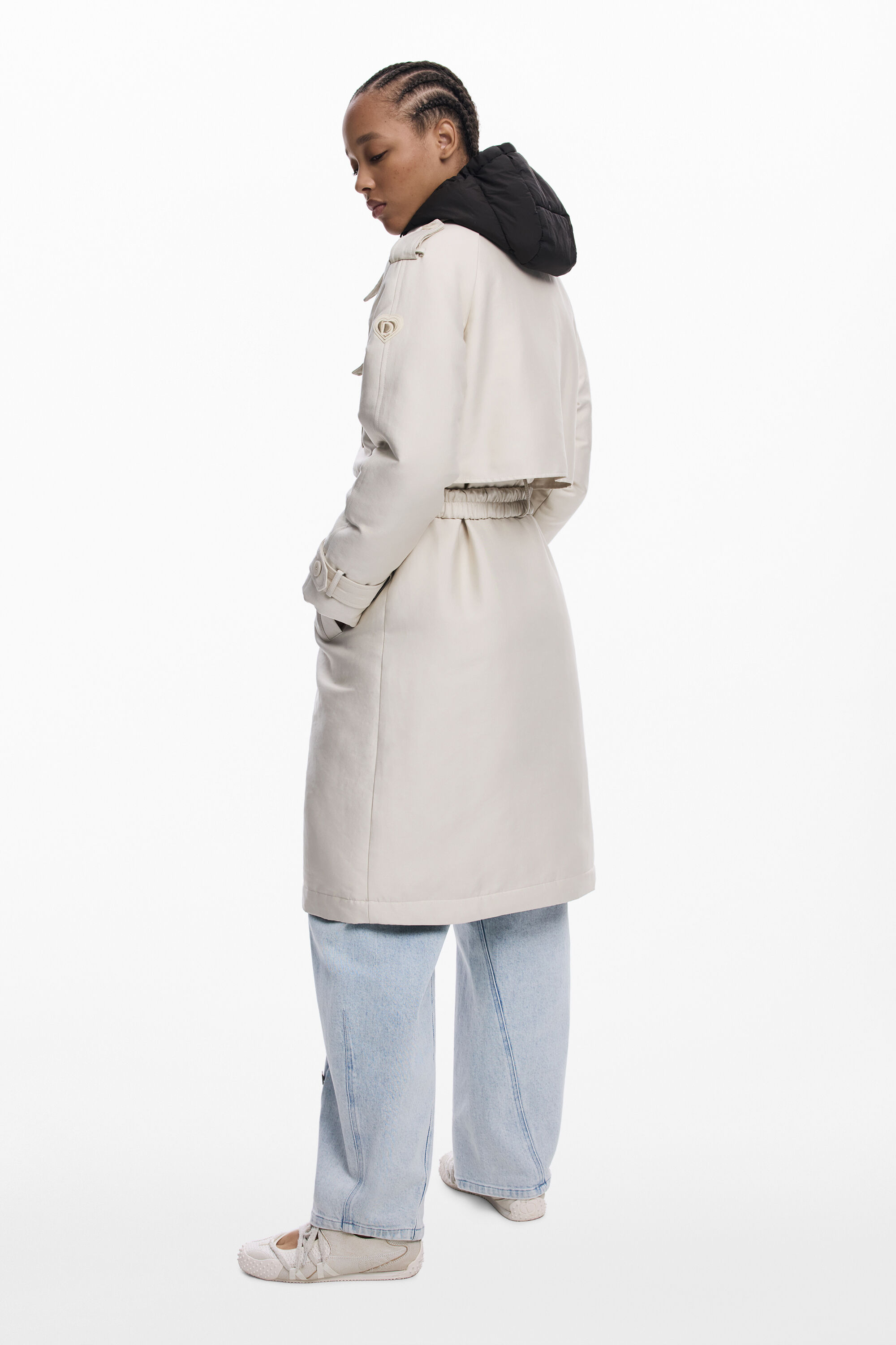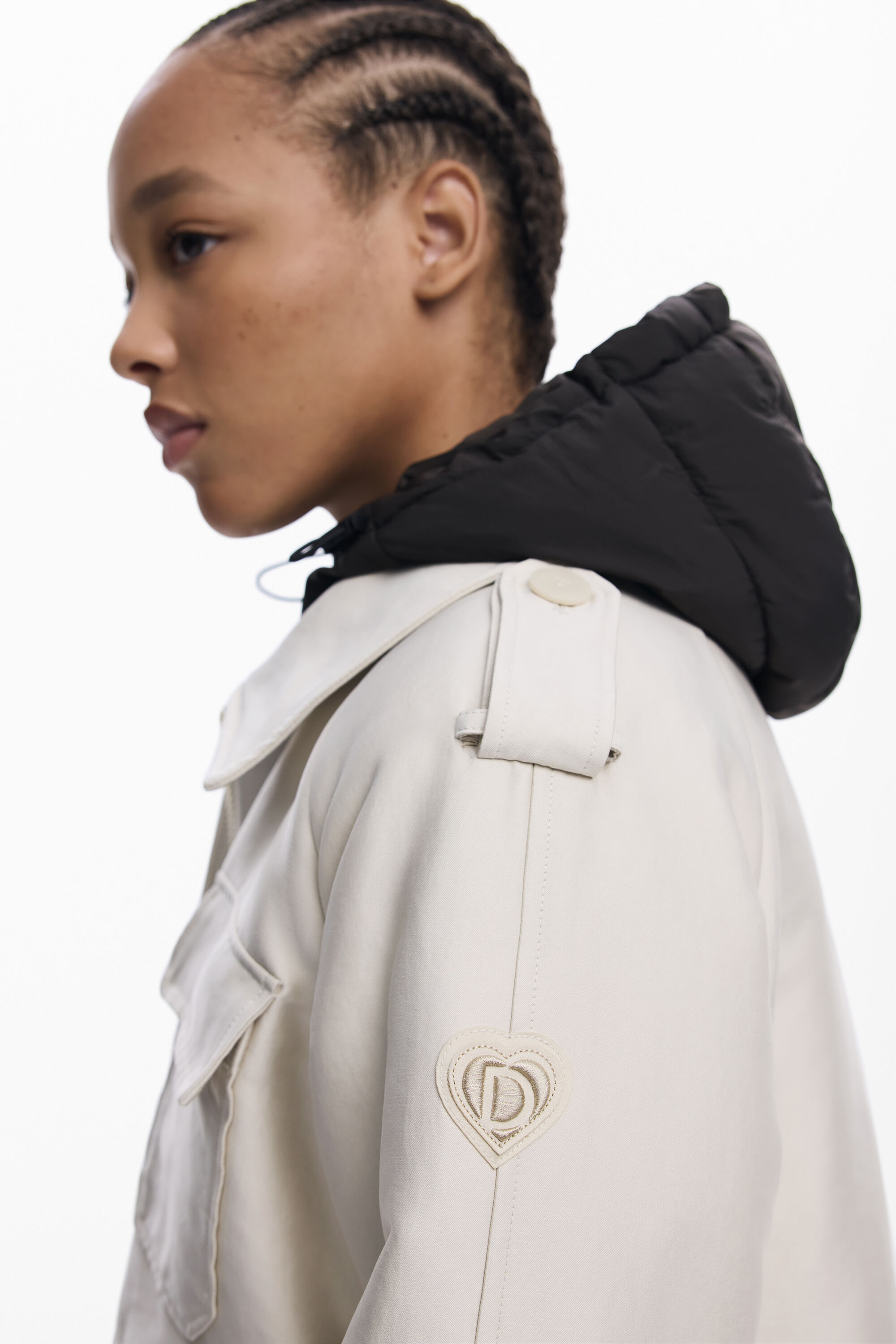 In tessuto impermeabile.Colore: Tinta unitaFit: RegularCappuccio rimovibileManica: LungaTasche frontaliChiusura: con bottoneCintura elastica rimovibileRealizzato con materiali sostenibiliTessuto impermeabileProgettato a BarcellonaAcquistando prodotti in cotone di Desigual, stai sostenendo il nostro investimento in Better Cotton.