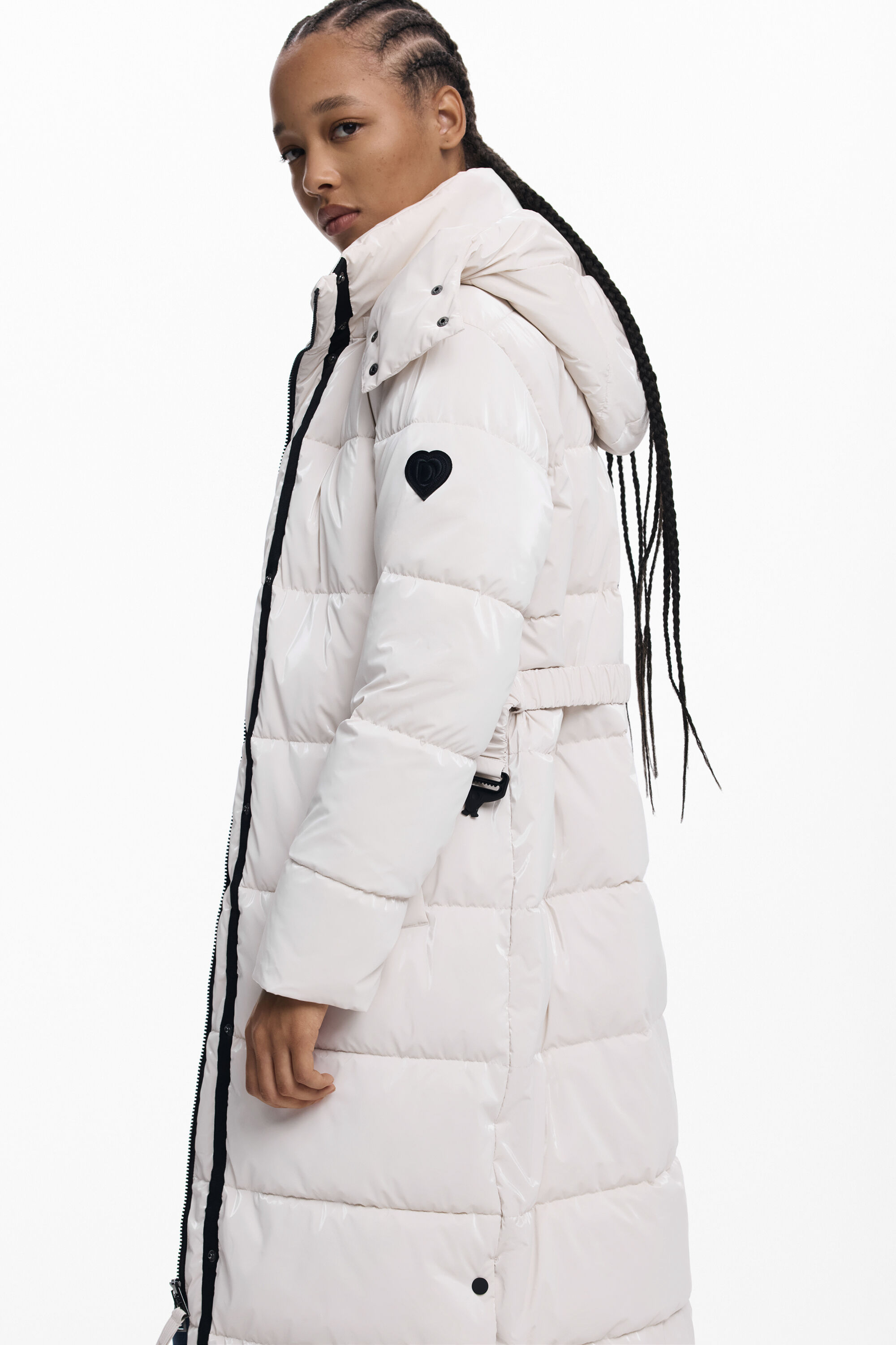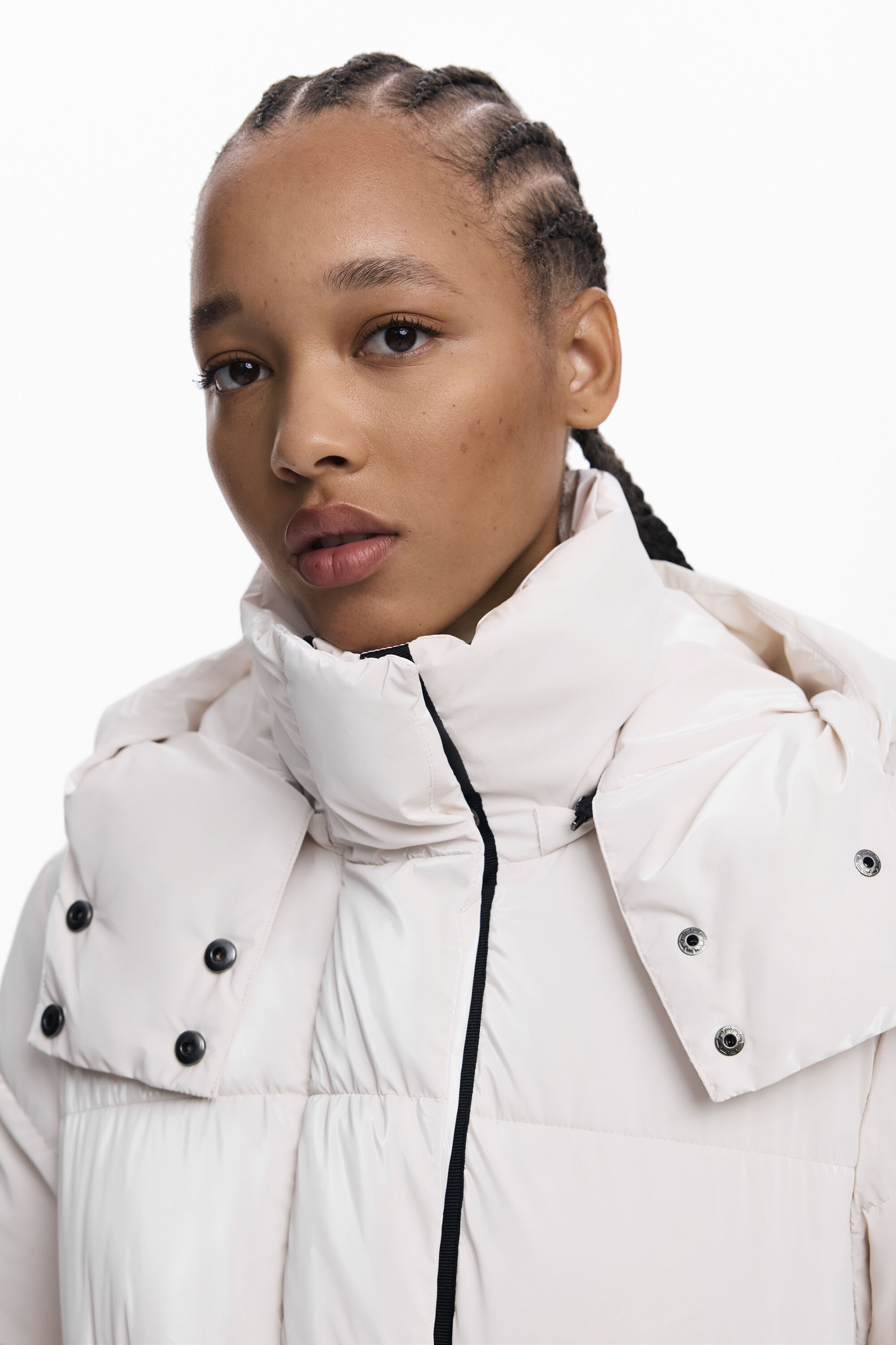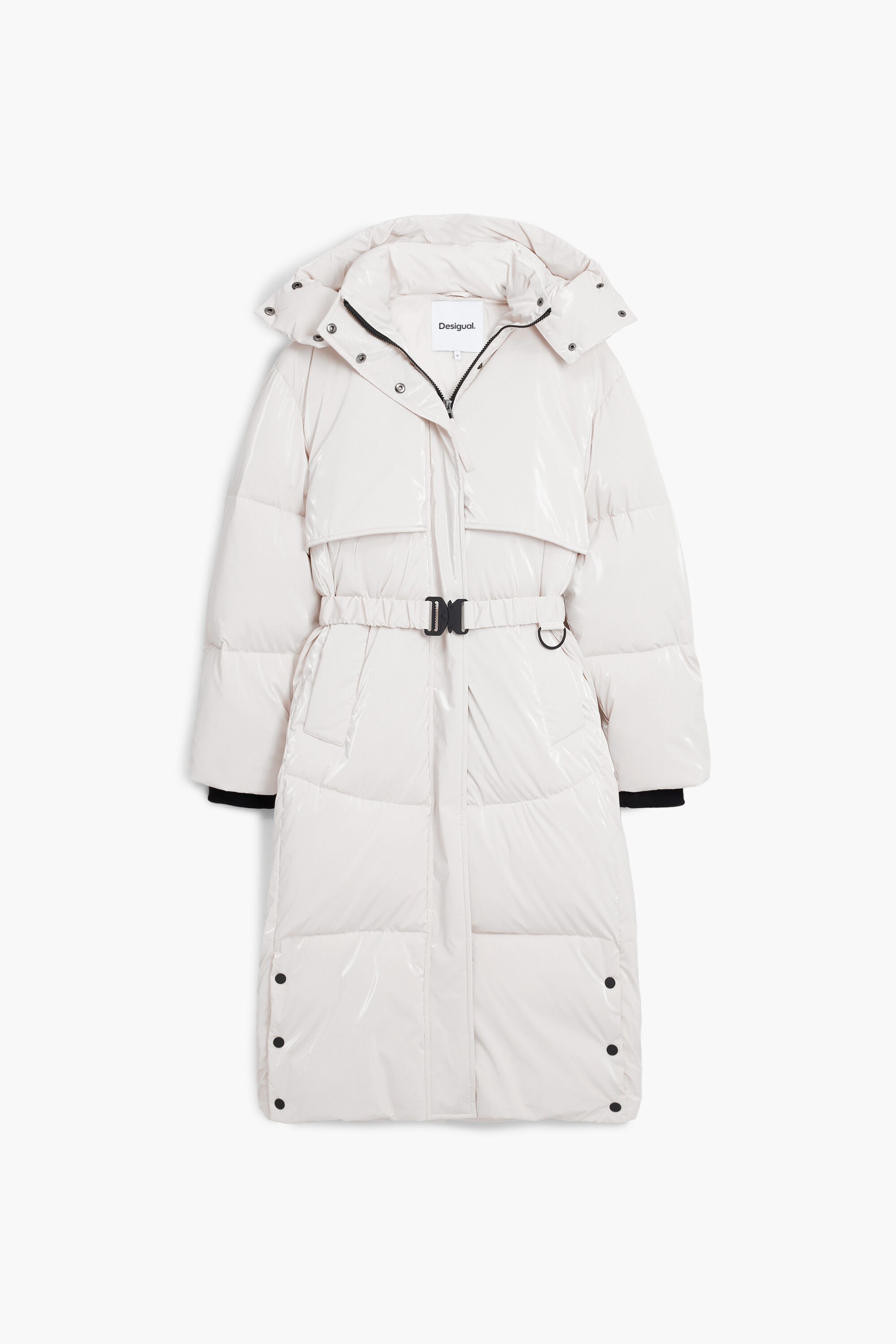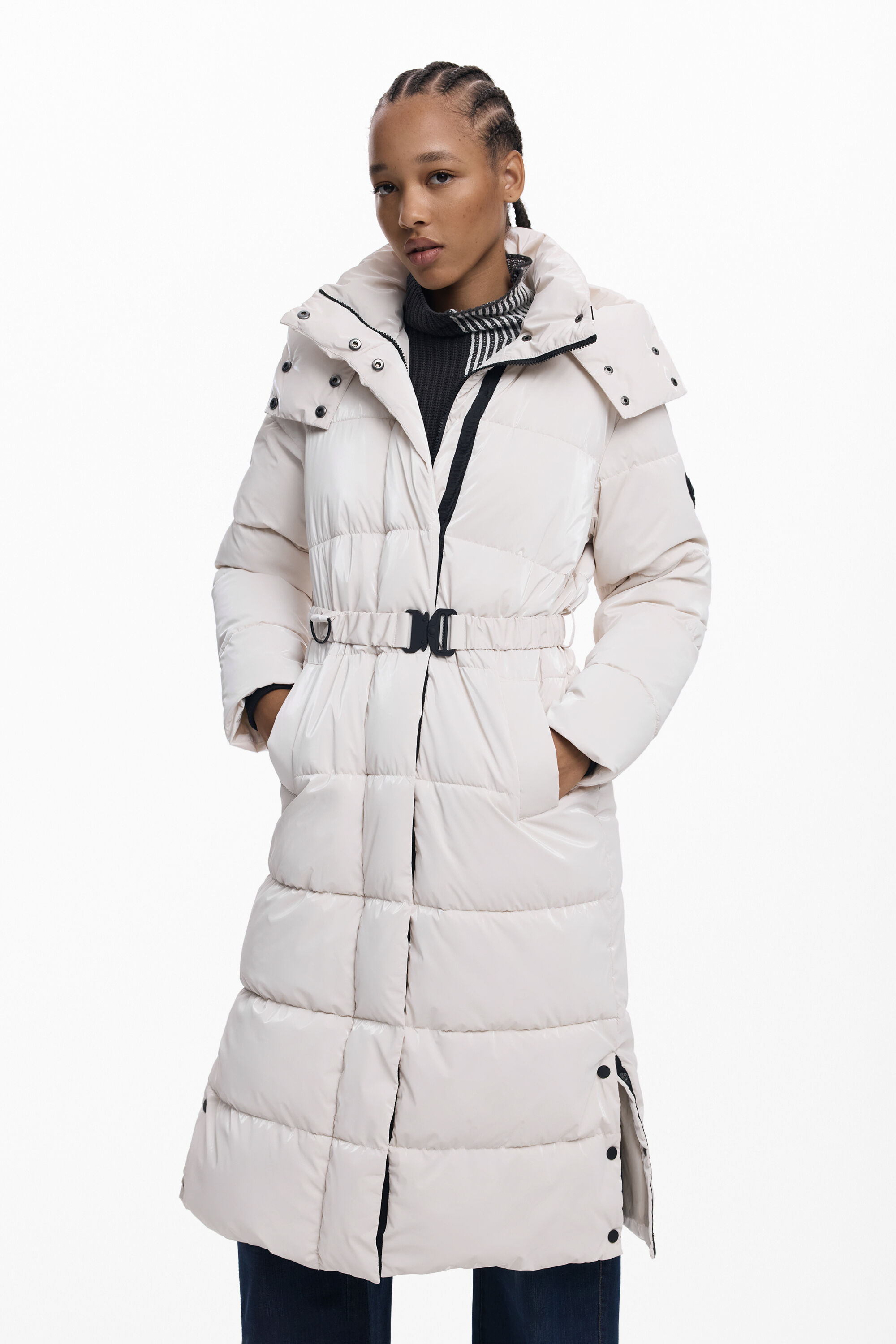 Giacca imbottita lunga, con taglio stile trench, con cappuccio, tasche frontali, spacco sul fondo e cintura removibile in colore tinta unita.Colore: Tinta unitaFit: RegularCappuccio rimovibileManica: LungaLunghezza: LungoTasche anterioriChiusura: con cerniera e bottoneApertura sul fondoRealizzato con materiali sostenibiliCollezione AW25Progettato a BarcellonaPoliammide riciclata
