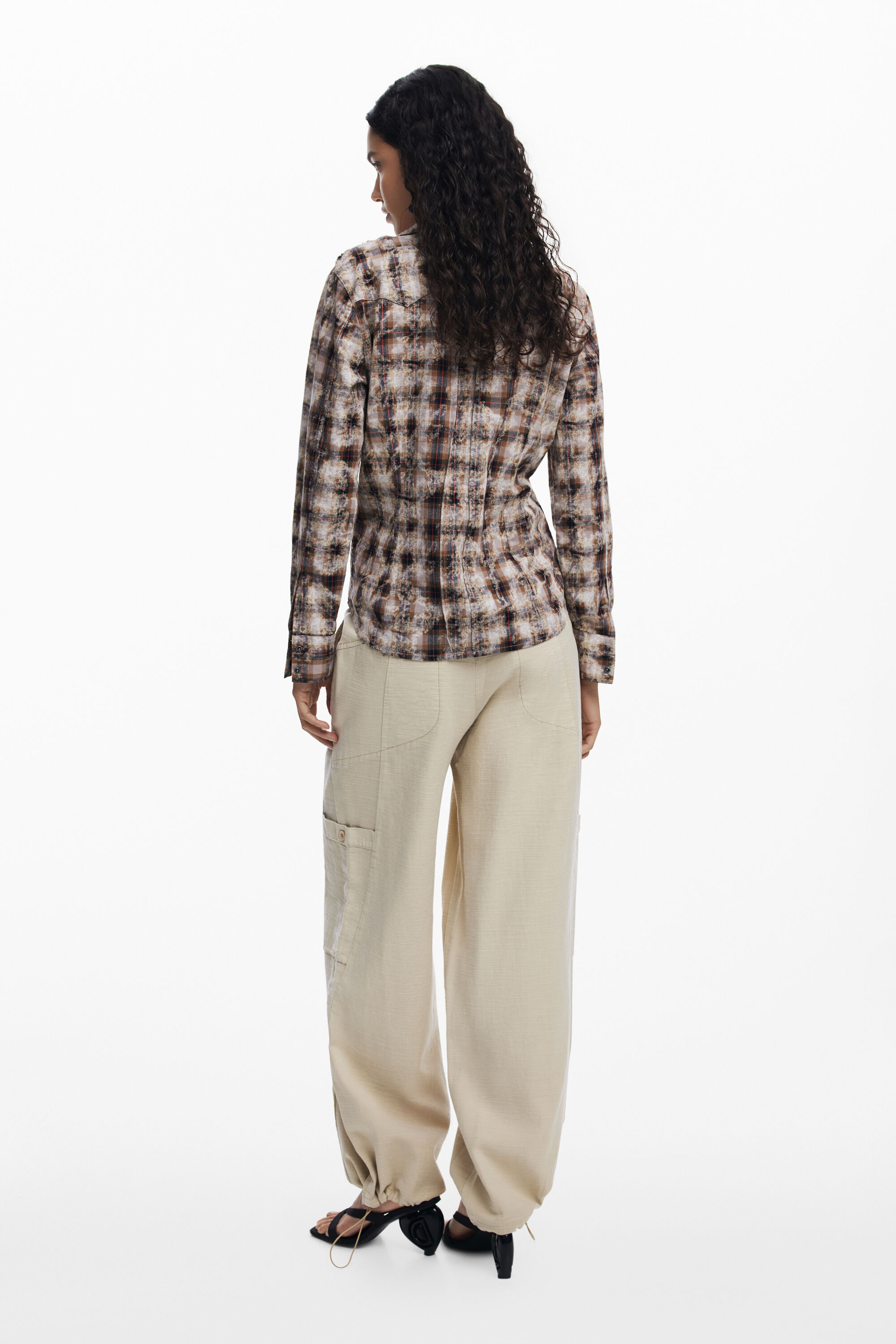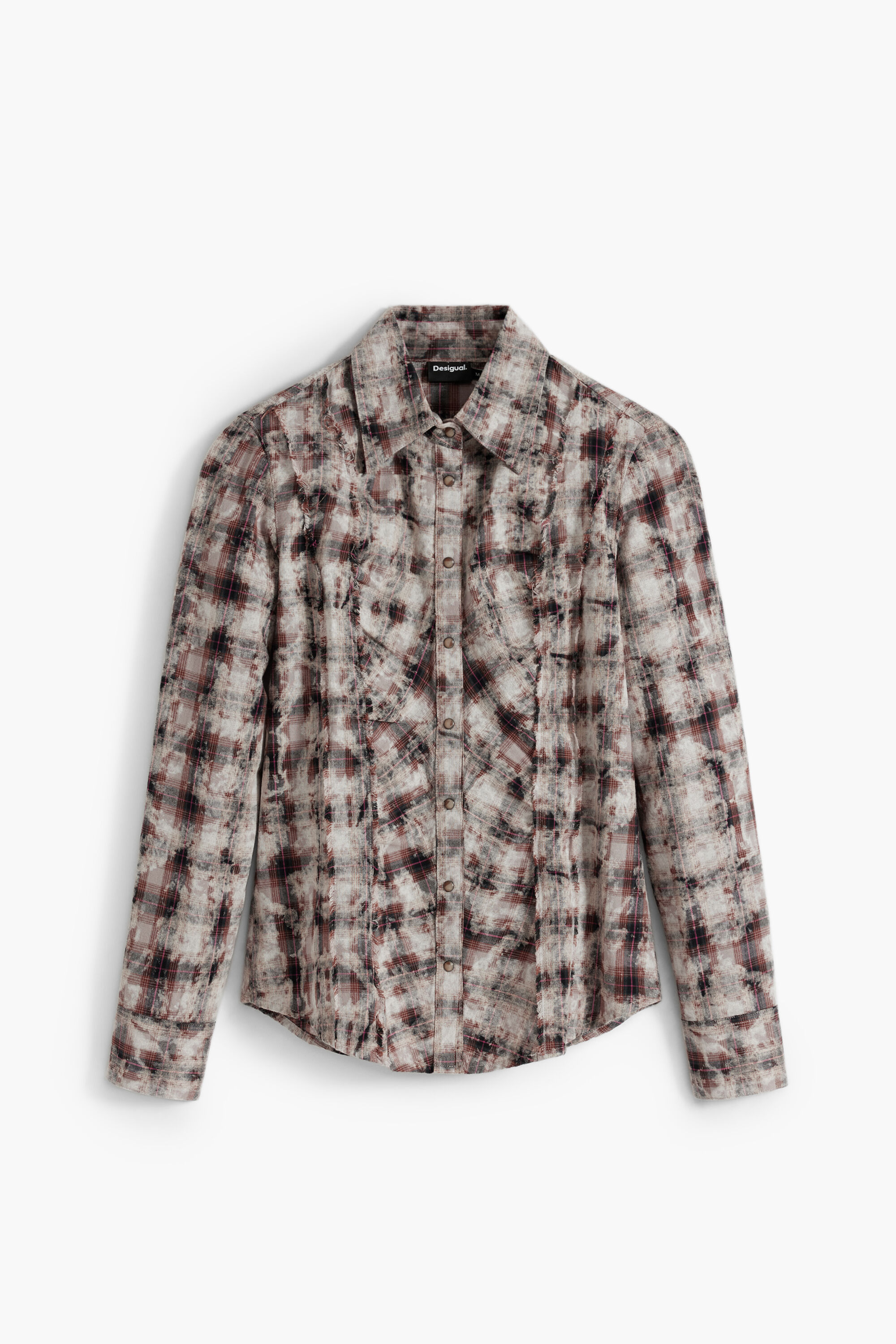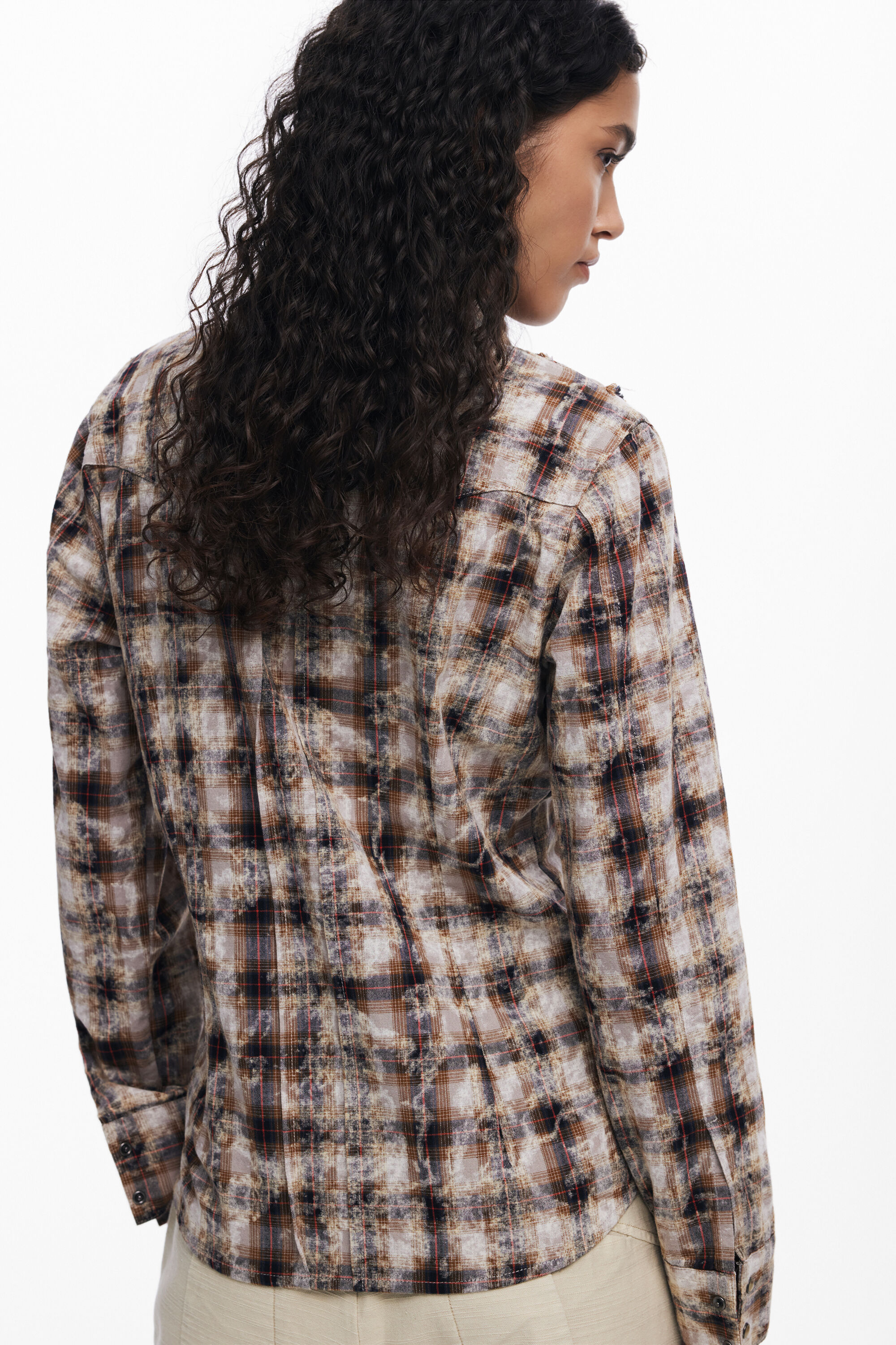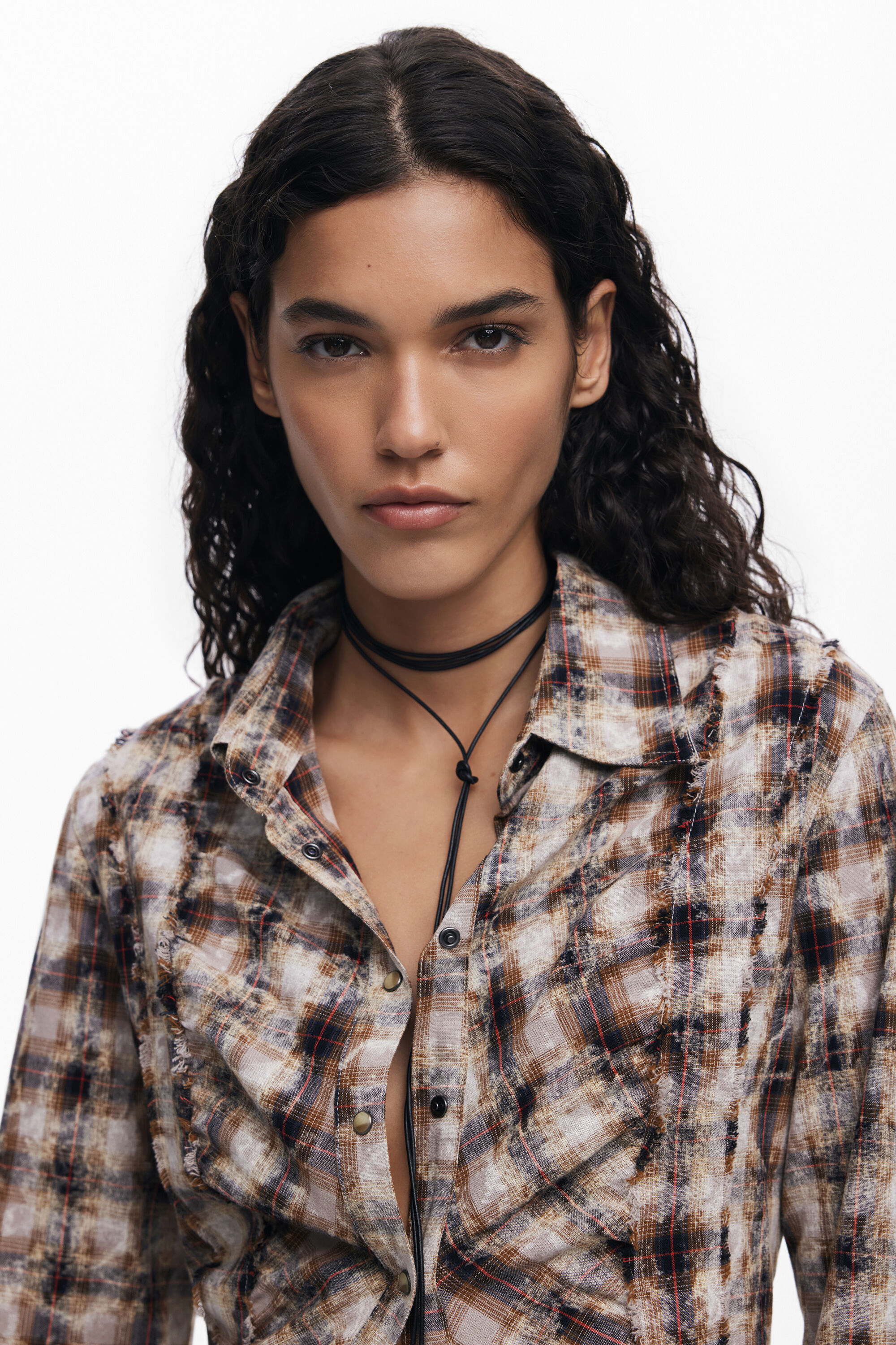 Camicia 100% cotone con texture stropicciata, manica lunga, applicazioni di volant e stampa a quadri.Stampa a quadriFit: RegularColletto: a camiciaManica: LungaChiusura frontaleTessuto con textureRealizzato con materiali sostenibiliCollezione AW25Progettato a BarcellonaAcquistando prodotti in cotone di Desigual, stai sostenendo il nostro investimento in Better Cotton.