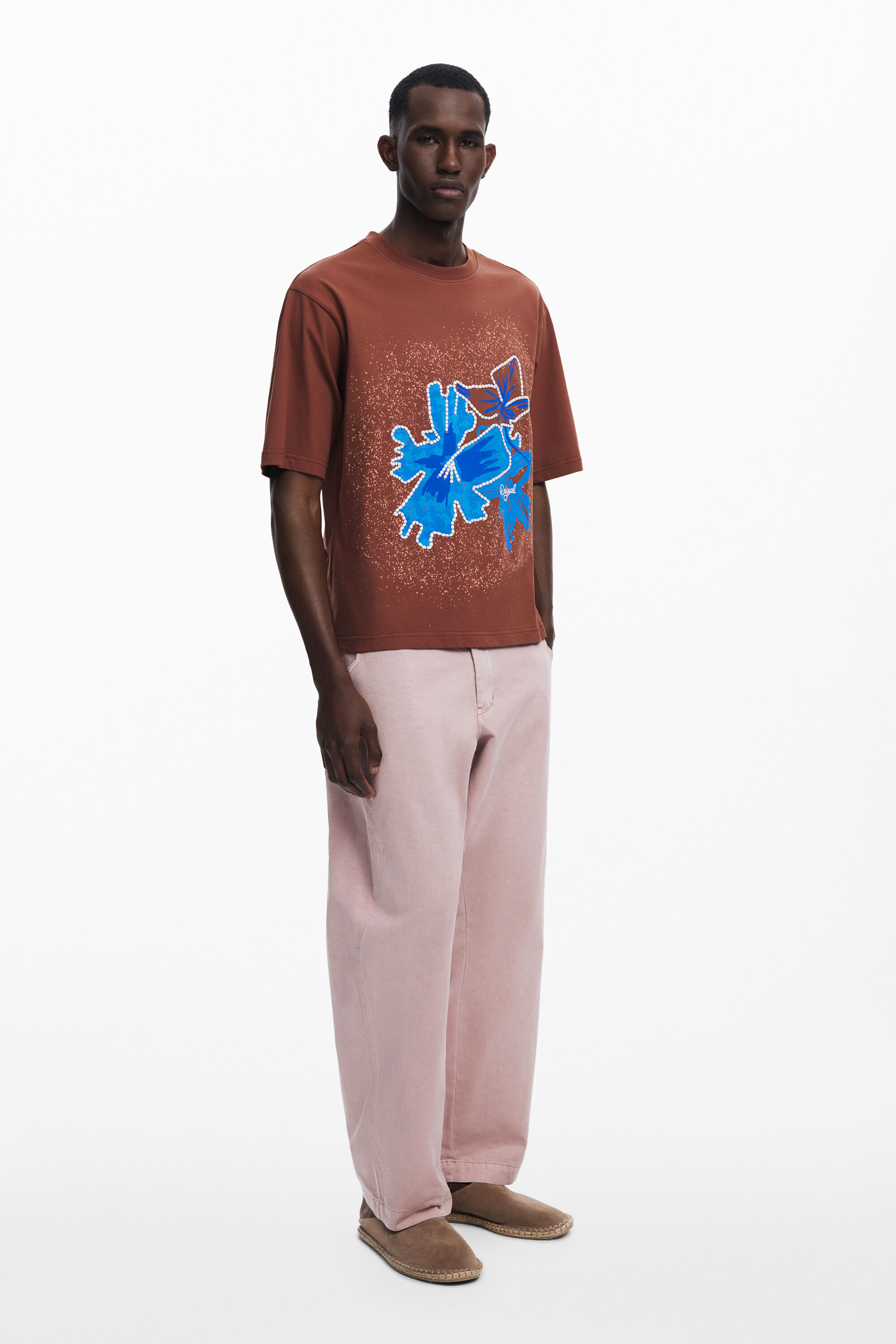 Maglietta a maniche corte con patchwork di grande fiore ricamato sulla parte frontale e logo inciso al centro.Colore: Tinta unitaFit: RegularCollo: rotondoManica: CortaEtichetta decorativa sul latoRealizzato con materiali sostenibiliCollezione AW25Progettato a BarcellonaAcquistando prodotti in cotone di Desigual, stai sostenendo il nostro investimento in Better Cotton.