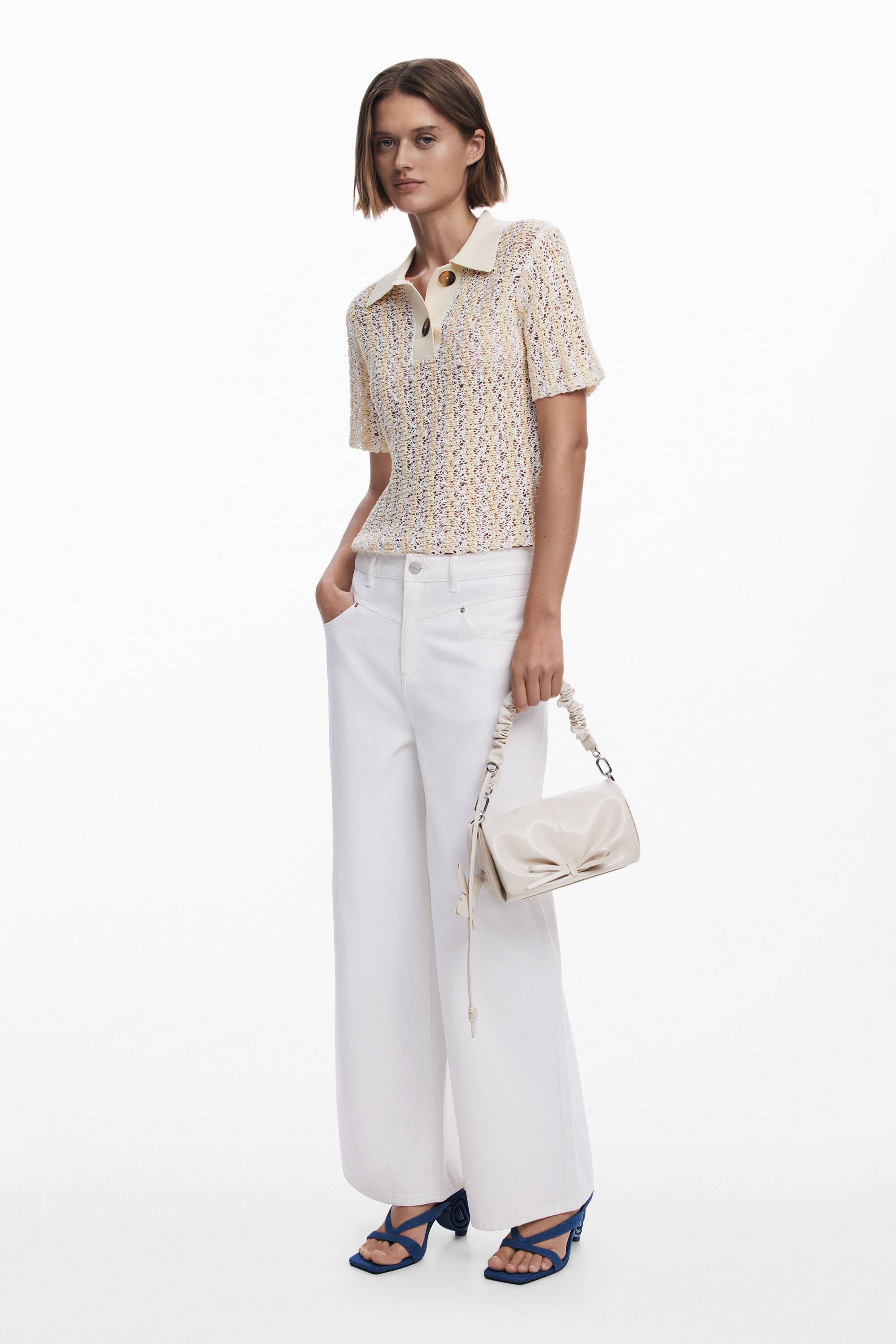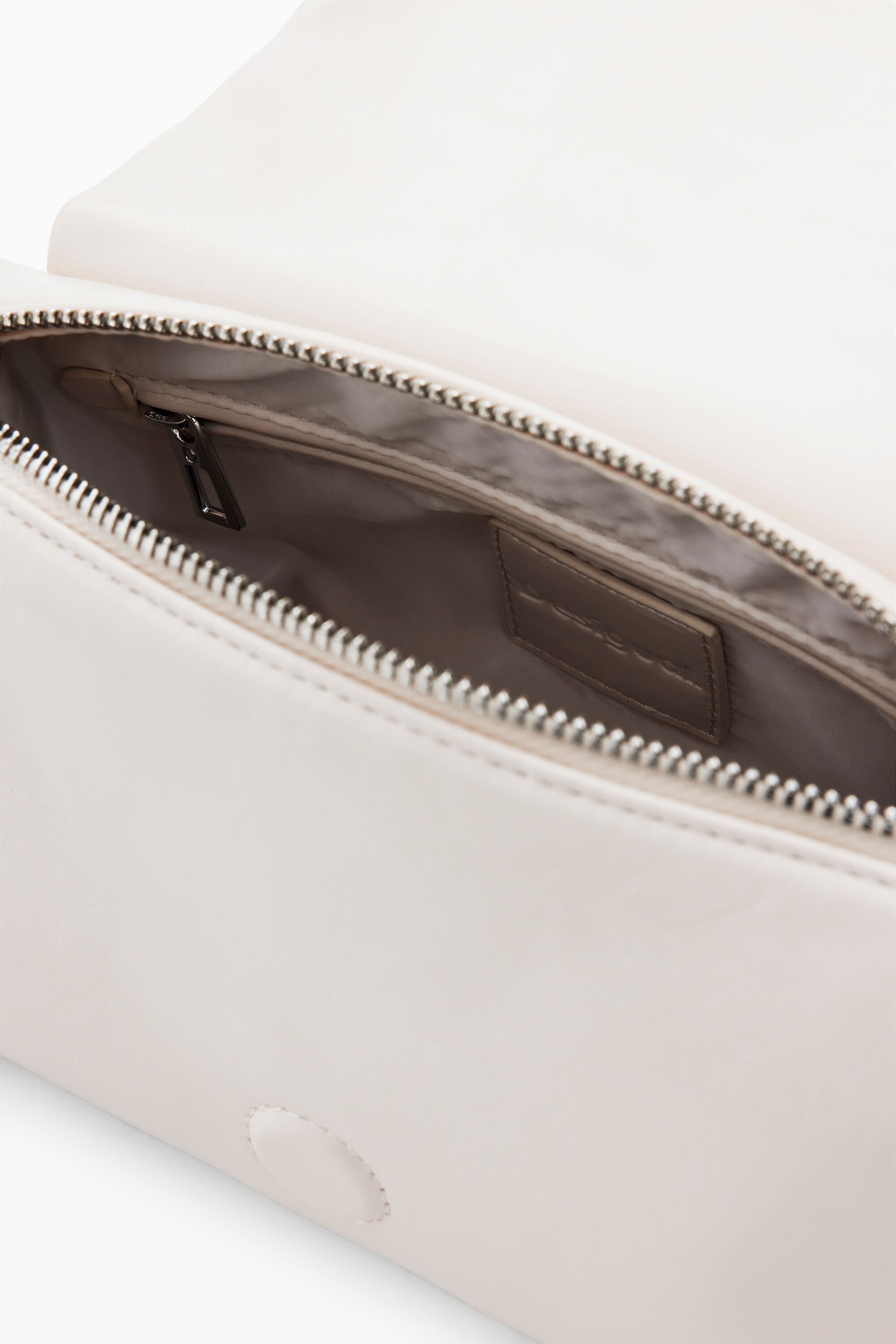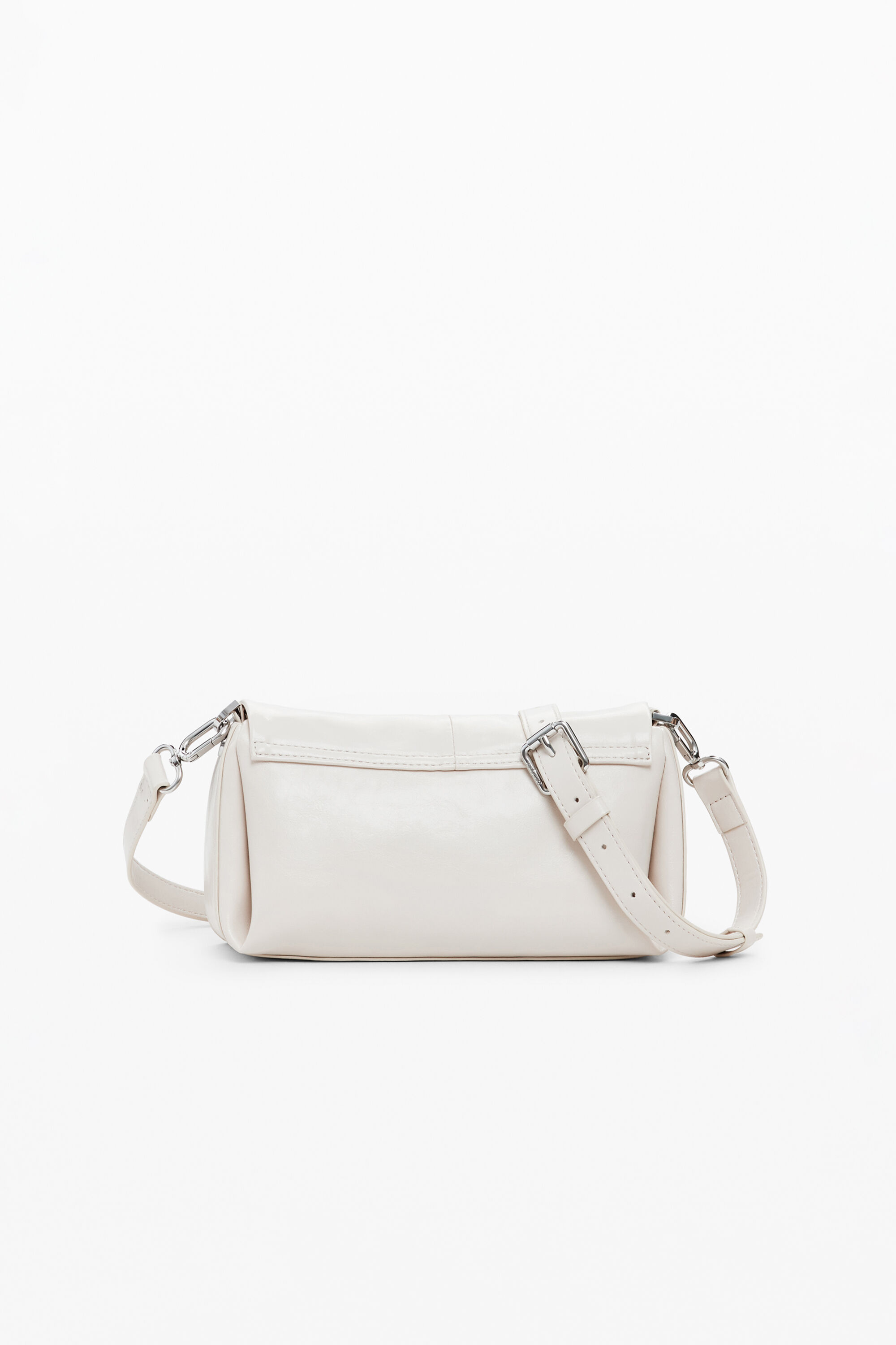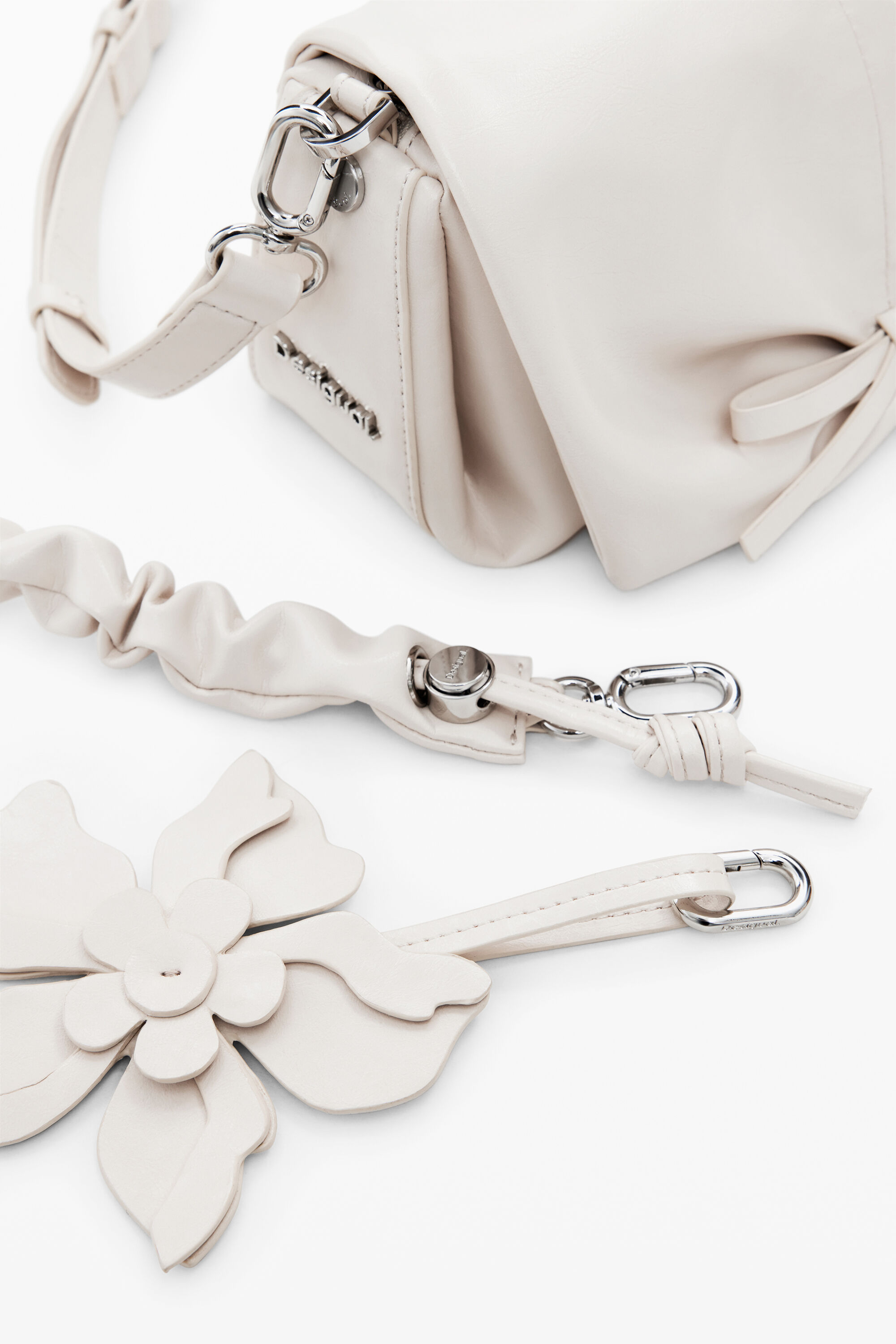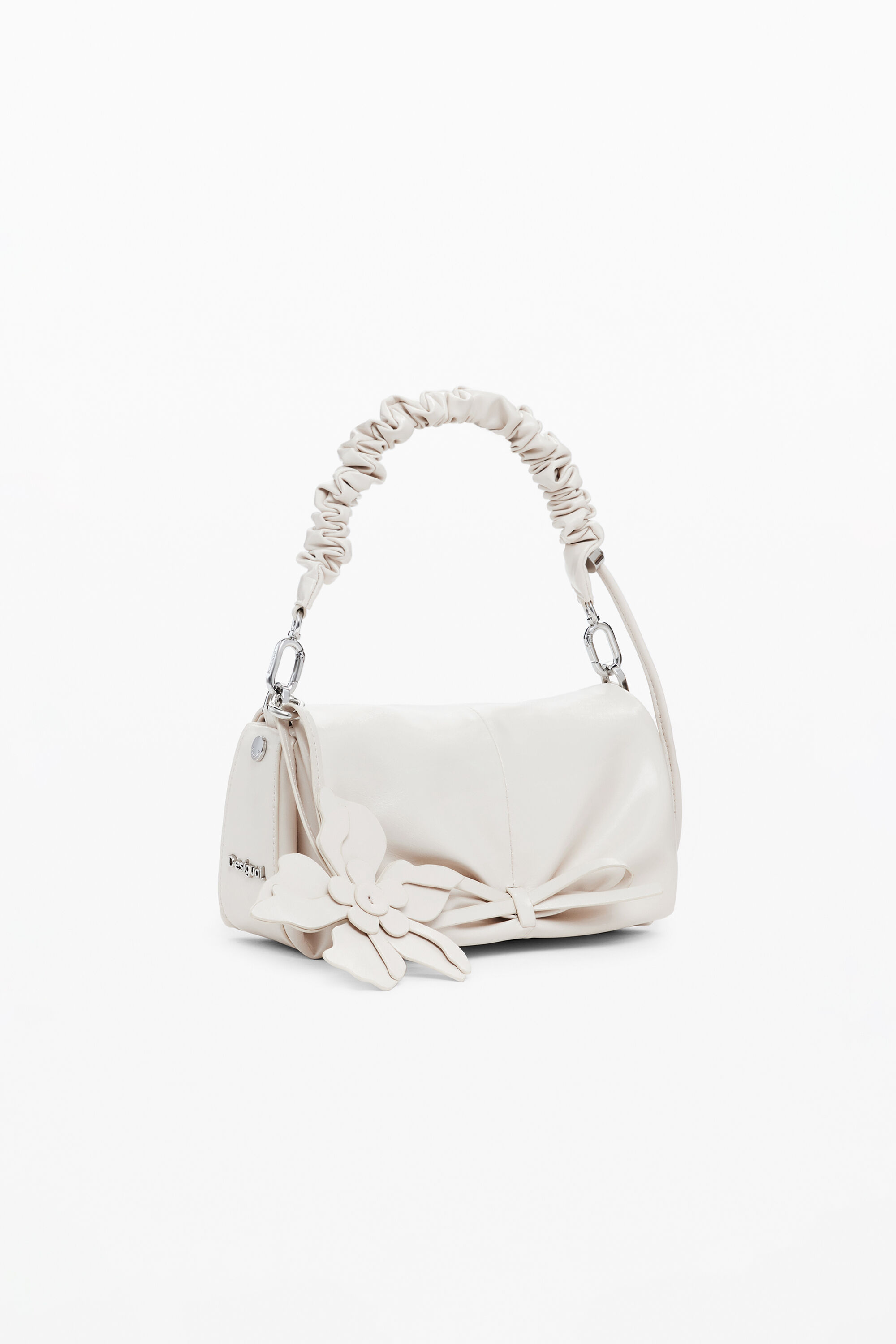 Small crossbody-style bag in faux leather effect, with a shiny finish, bow detail, interchangeable handles, and removable keychainLeather effectGlossy finishInterior pocketClosure: flap and zipperShort handle with ruched finish (Length: 66 cm)Measurements: 23.50 x 10 x 10.70 cm