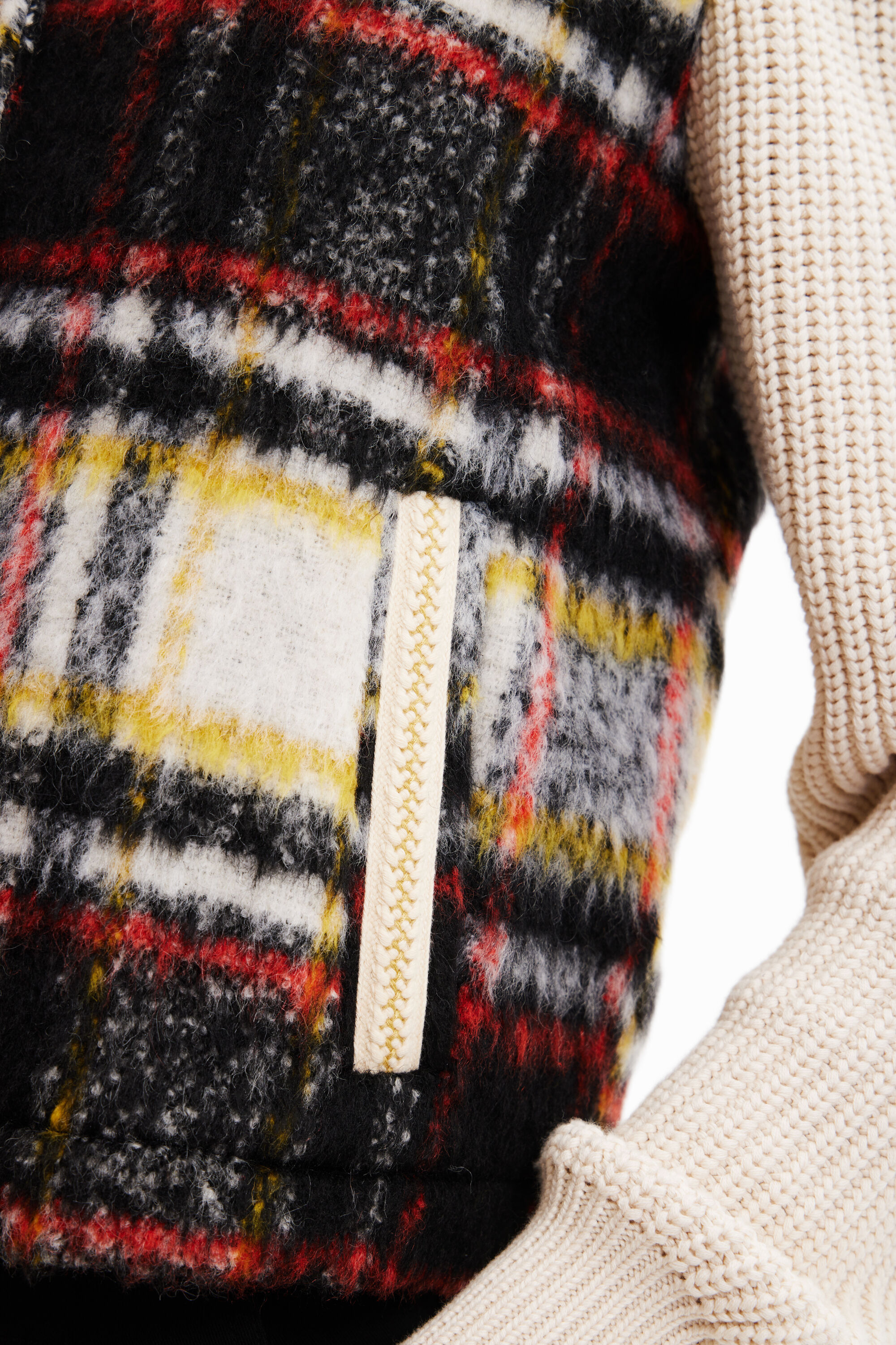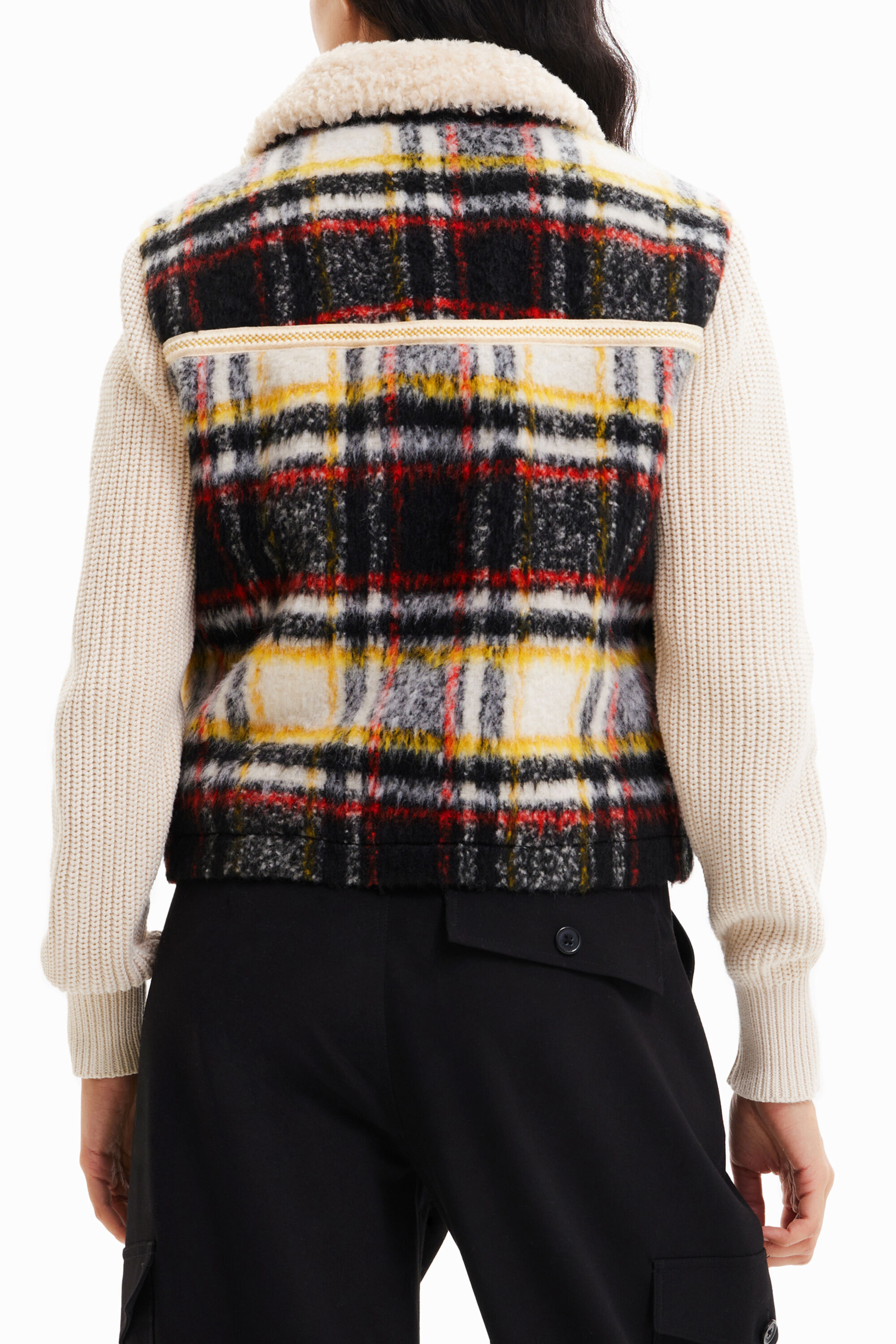 This jacket truly plays with textures thanks to its body made from plaid print wool, the tricot sleeves, fleece collar and decorative zip details.Shirt collar with fleeceButton and zip closureTwo pocketsPlaid printZip decorations on the pockets and front panelFleece liningRegular fitLong sleeves