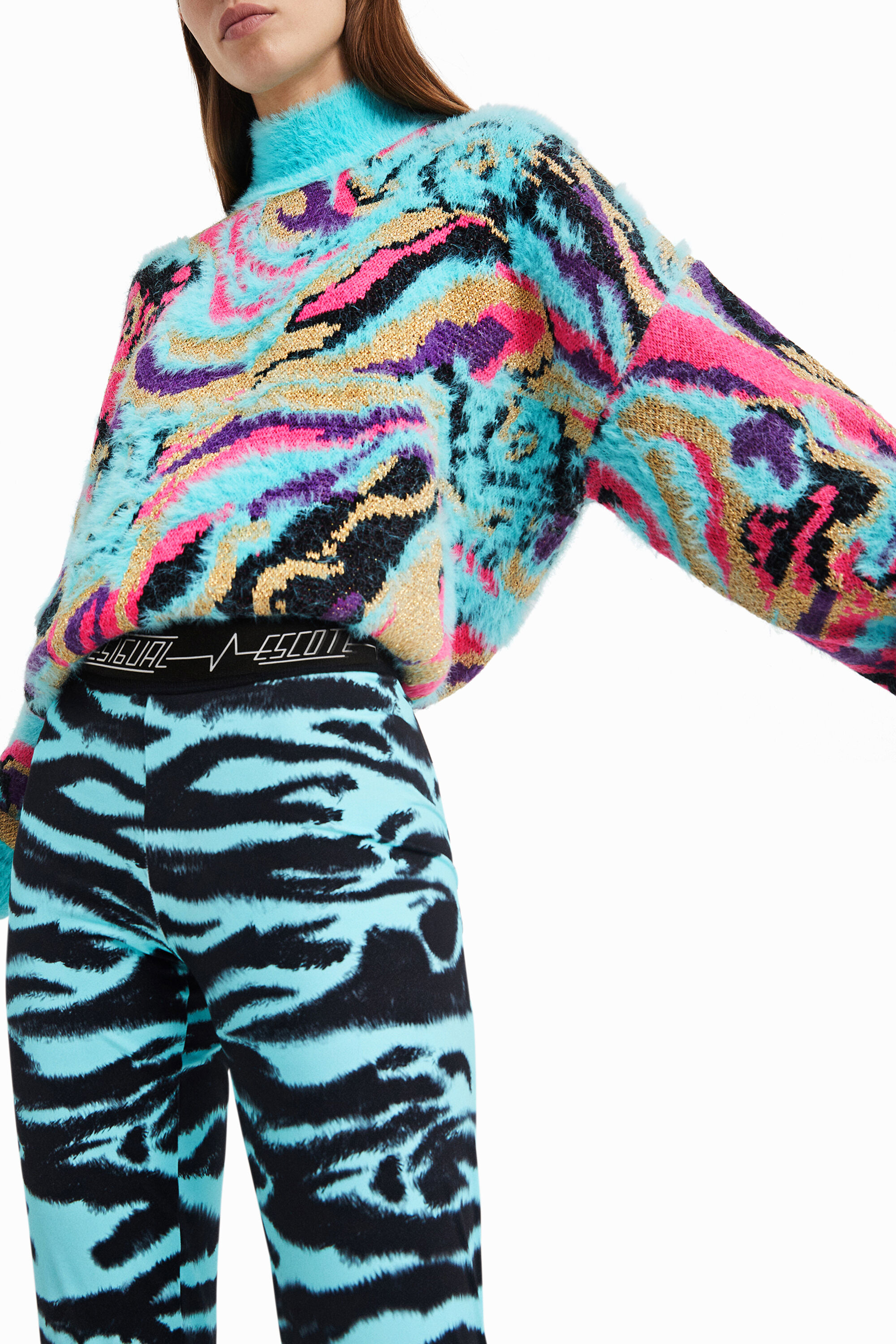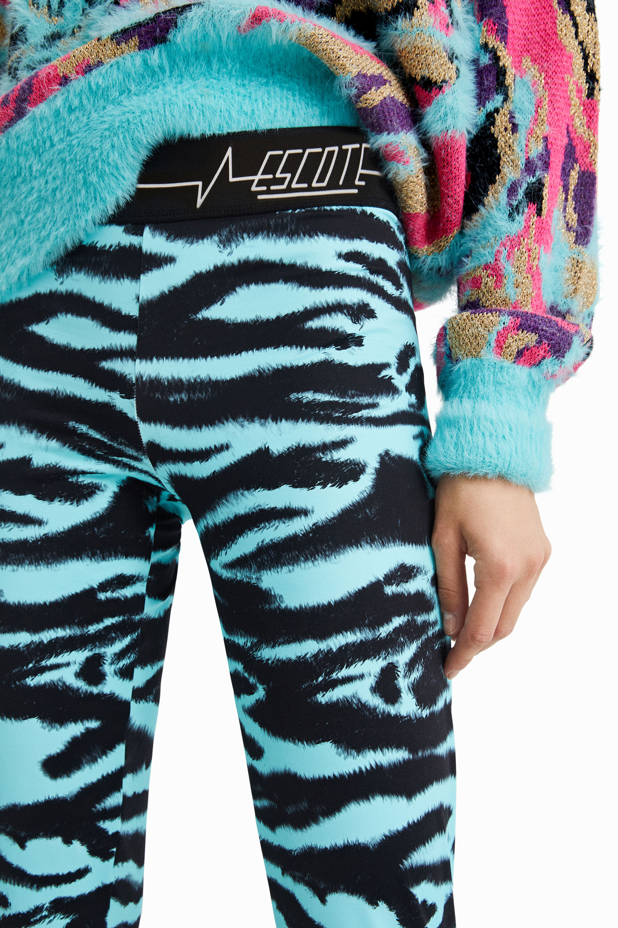 María Escoté has designed the perfect slim leggings to show off her animal print, even in open shoes, as they don't stop at the ankle but (surprise!) cover the entire foot.Mid-riseAnimal printElasticated waistband with Desigual and María Escoté logoCovered footDesigned by María EscotéSlim fitLong leggings