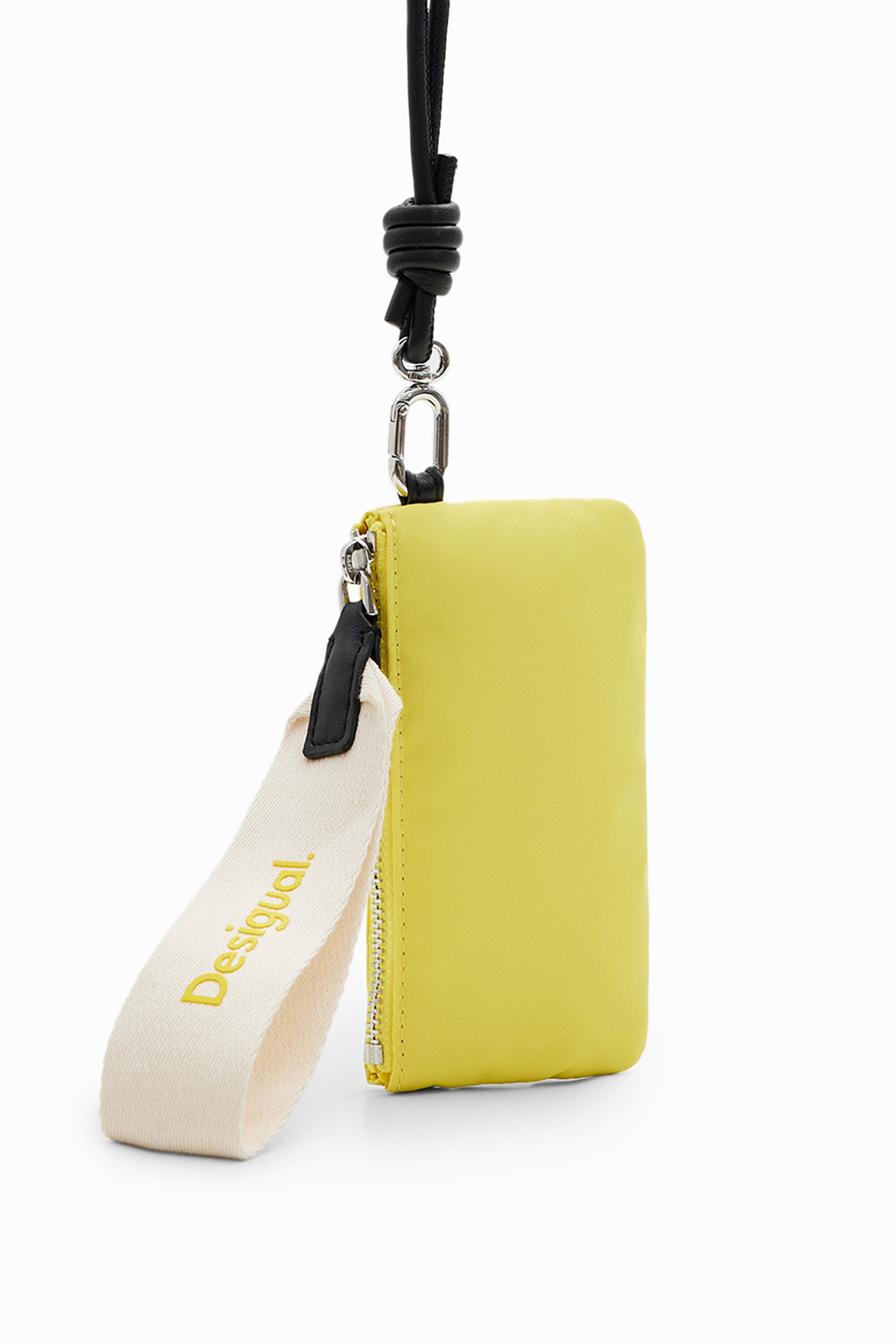 Small solid-coloured nylon wallet with a zip featuring a decorative element with the Desigual logoPlainZip with a decorative element featuring the Desigual logoSingle compartmentRemovable lanyard for wearing it around your neckRemovable keyring