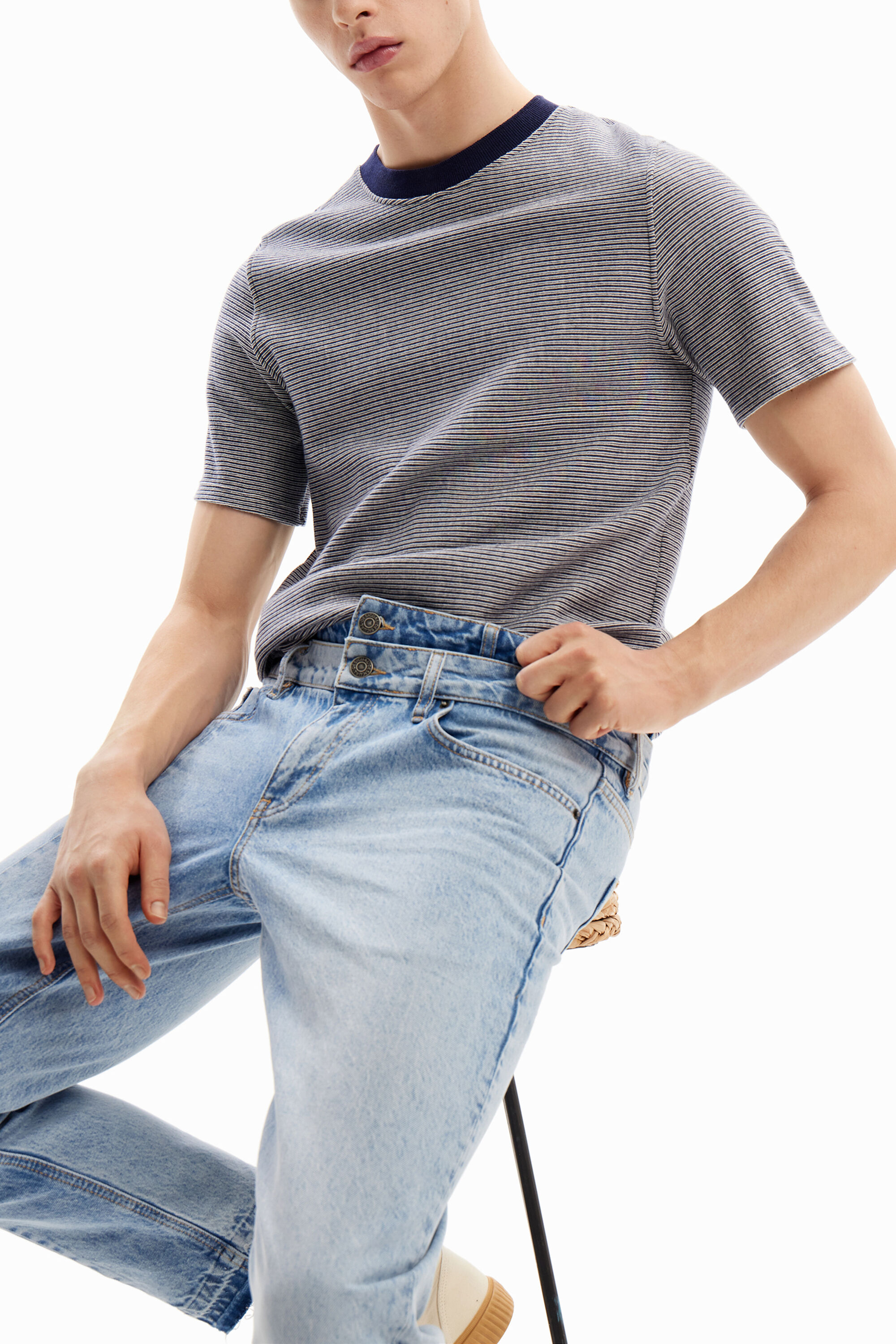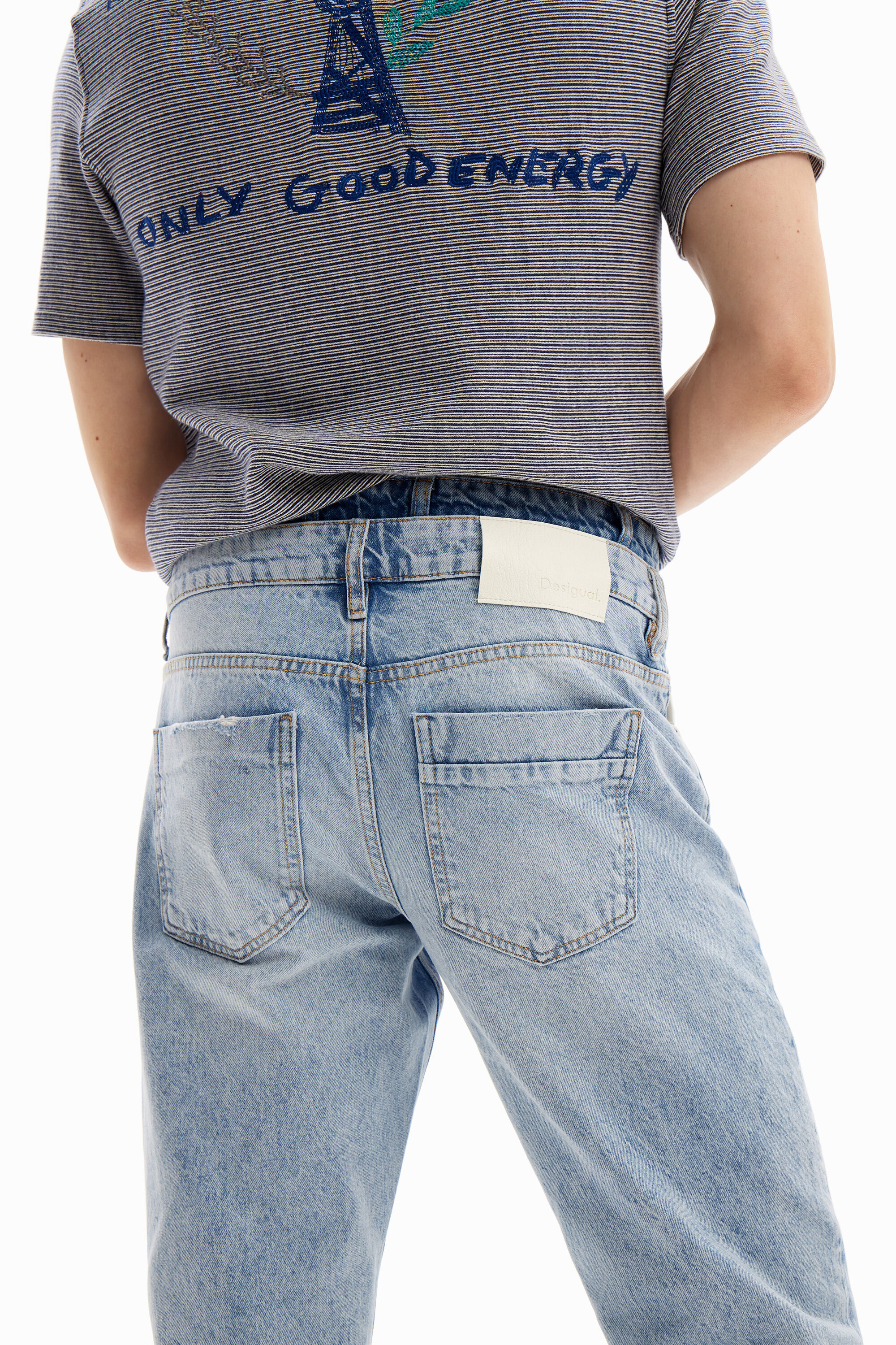 Carrot-fit jeans in a two-tone washed effect with a double waistband and a pronounced seam detail on one leg.Fit: CarrotTwo-tone washed effectWaist: RegularFive pocketsTwo-button and zip closureFrayed hemsBy buying Desigual cotton products, you are supporting our investment in Better Cotton.