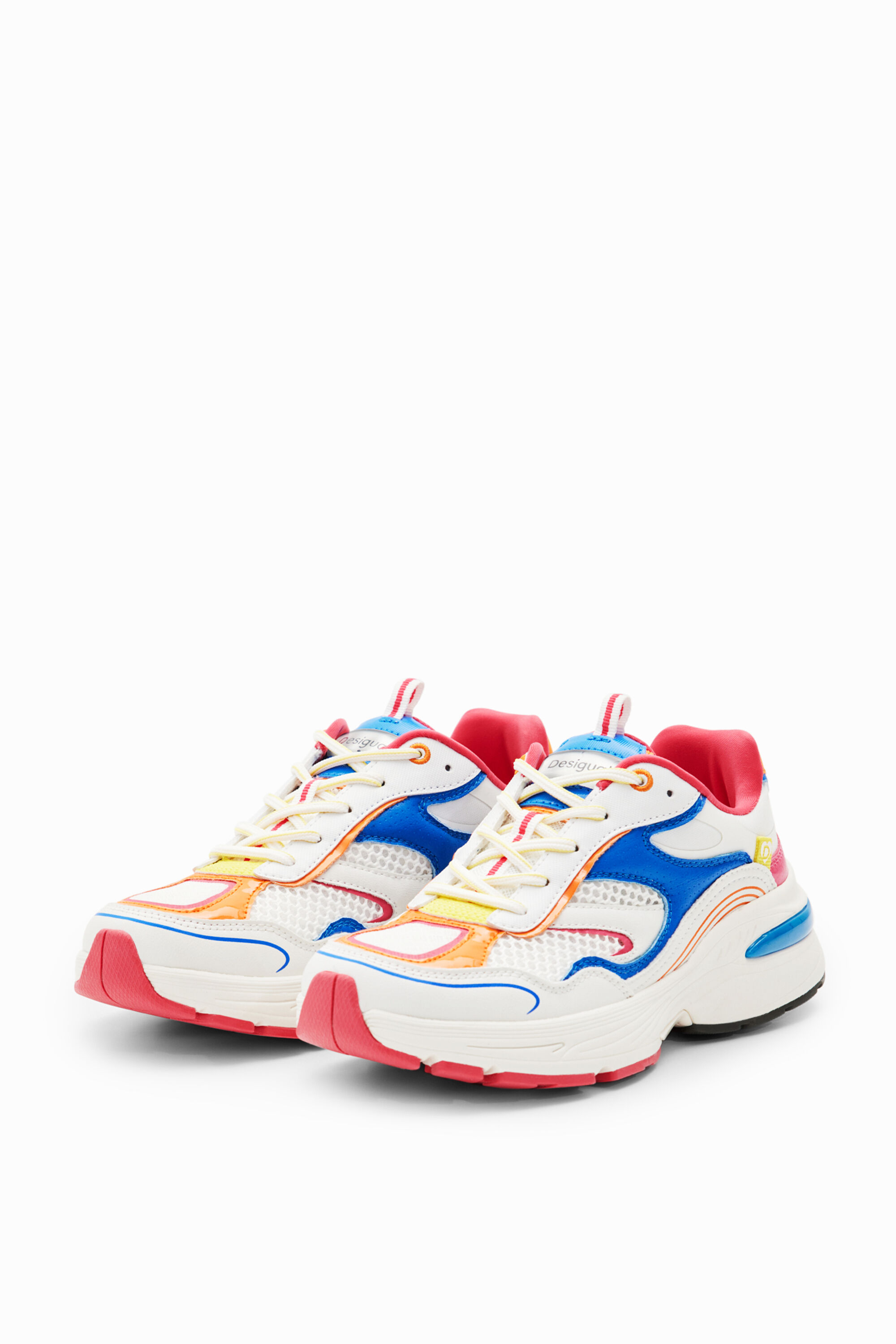 Lightweight running-style sneakers with an anatomical last and a patchwork of leather-effect and technical fabrics.Patchwork of fabrics: leather-effect, patent leather and mesh in different sizesLace fasteningContrasting cushioned interiorVery comfortable insoleRecycled rubber soleSole height: 65 mm