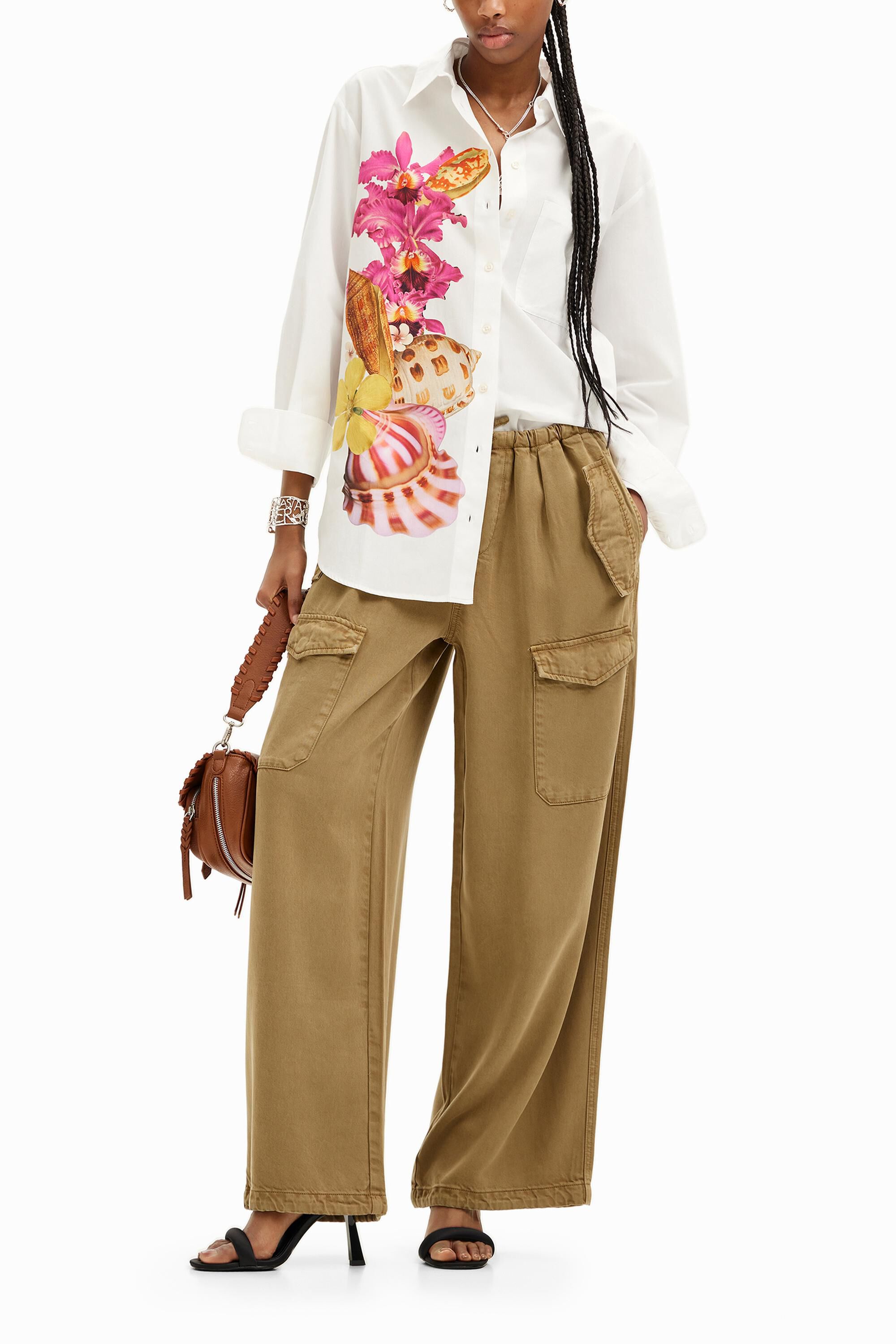 RegularPlain with flower and shell print Shirt collarLong sleevesFront pocketButton closureLenzing™ Ecovero™ viscose