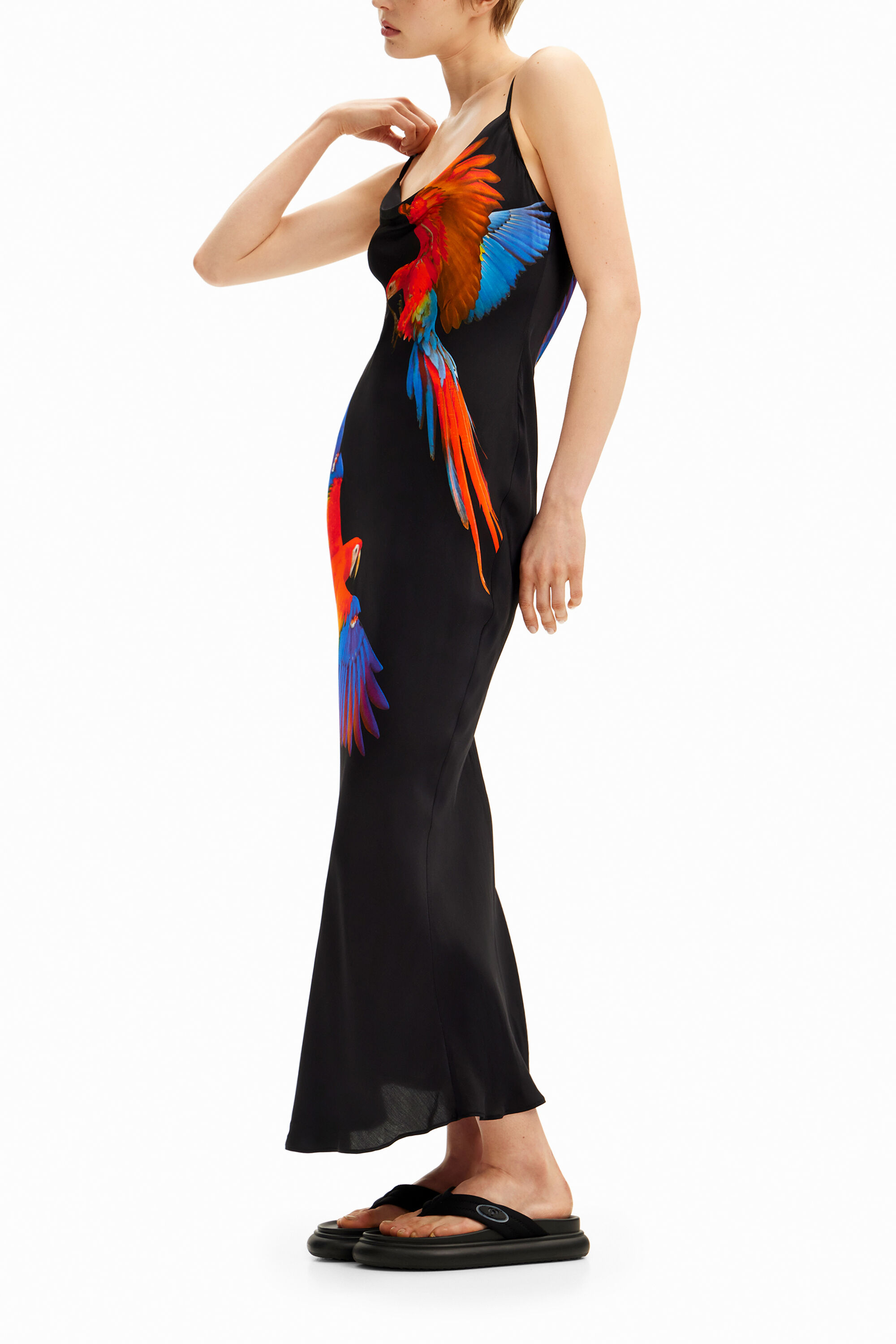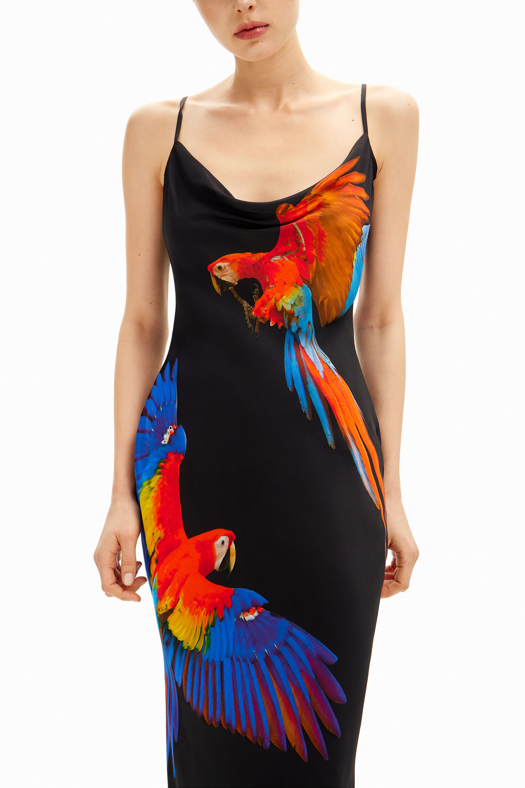 Desigual Tyler McGillivary Tropical parrot satin strappy dress | ricciano UNITED STATES