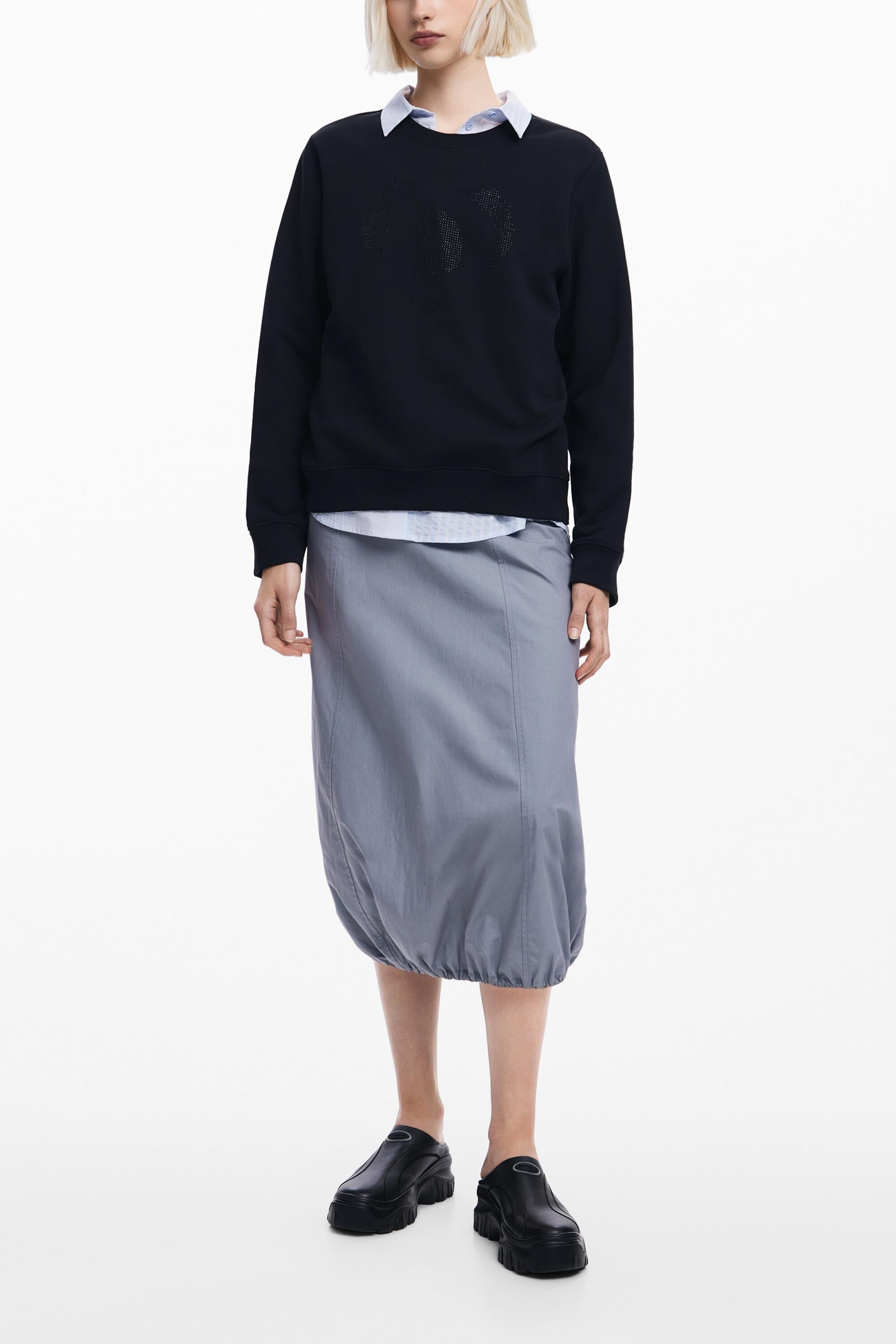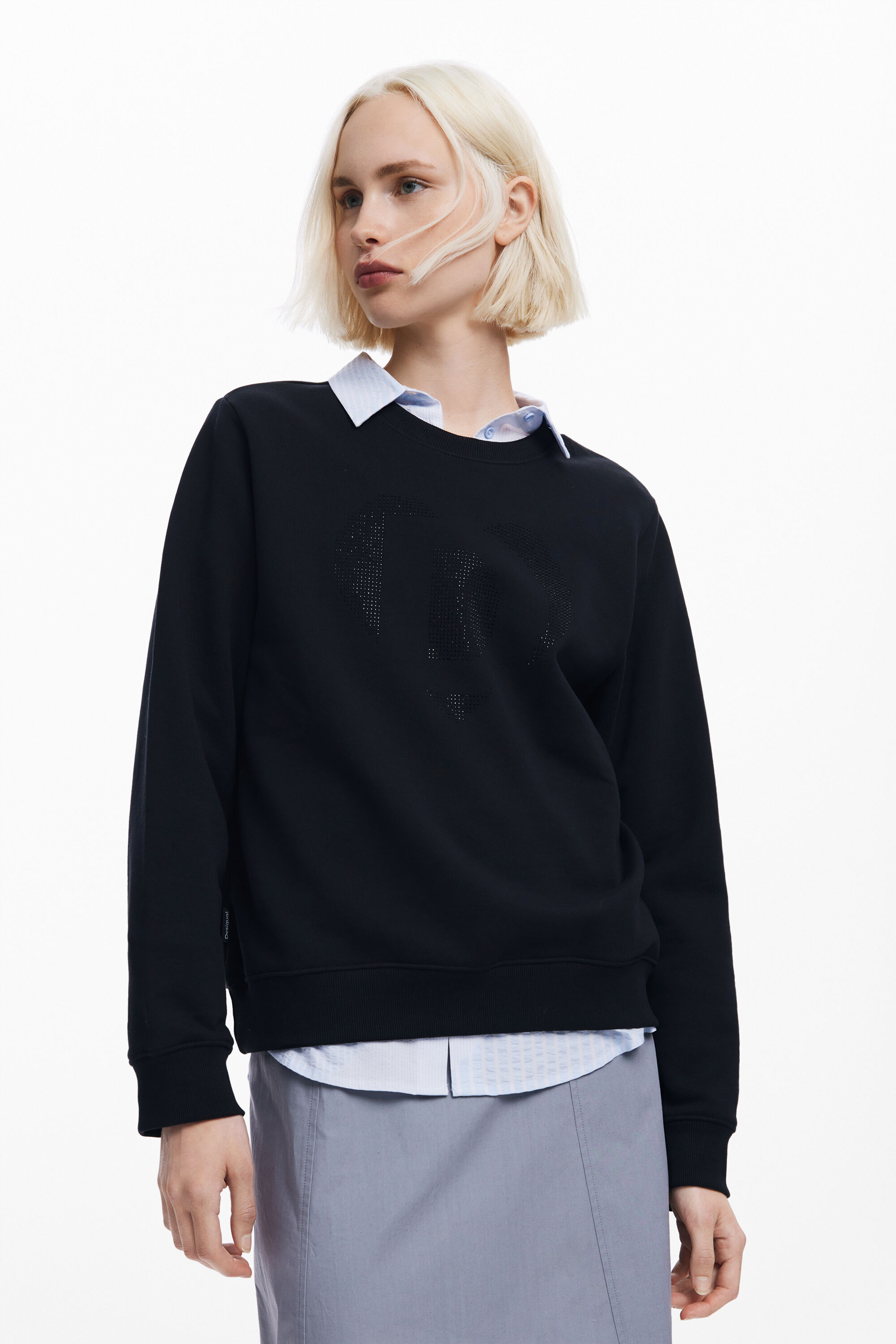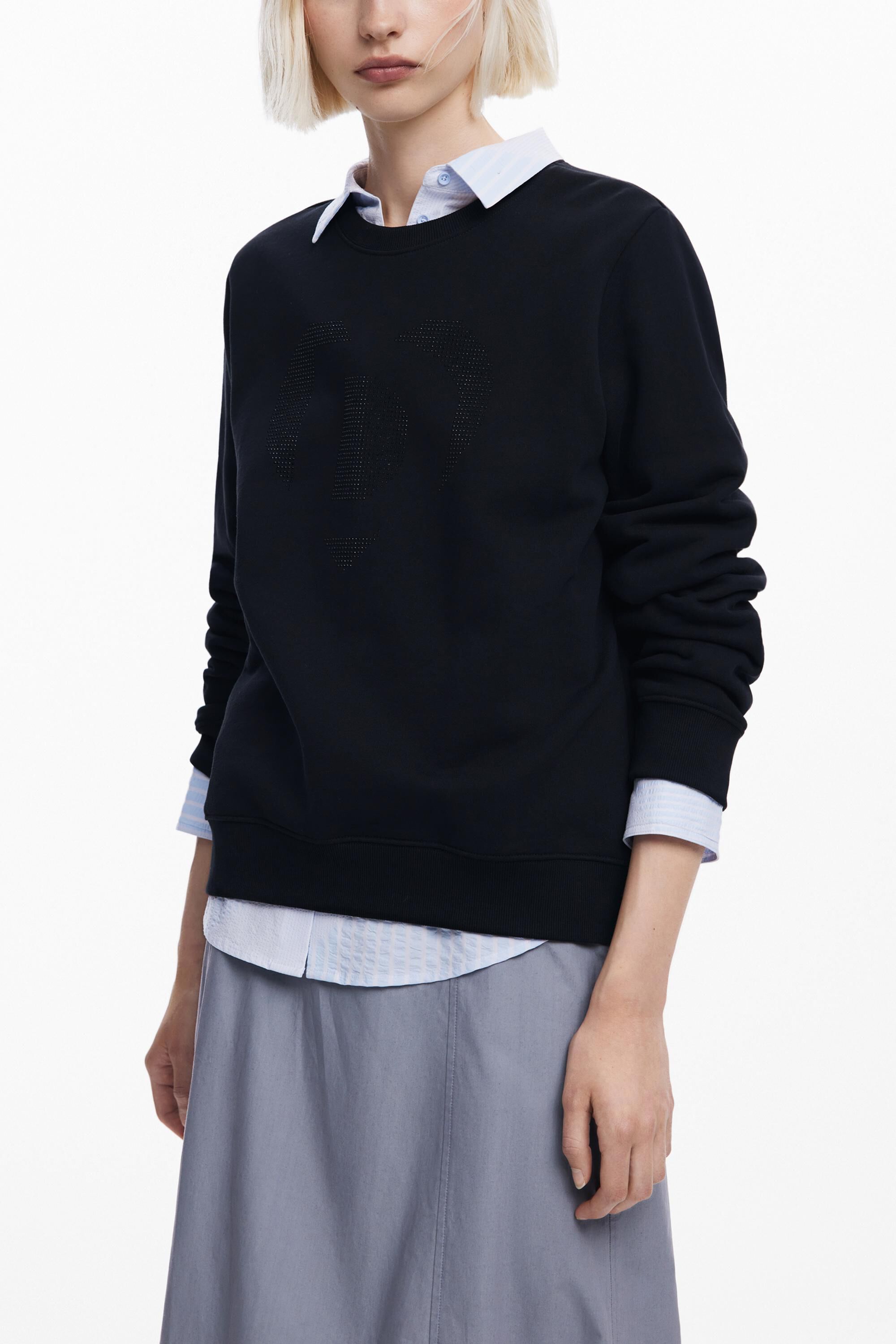 Knit sweatshirt, long sleeves, ribbed hem, and logo print in rhinestonesFit: RegularLogo printRound neckLong sleeveWhen you buy cotton products from Desigual, you are supporting our investment in Better Cotton.