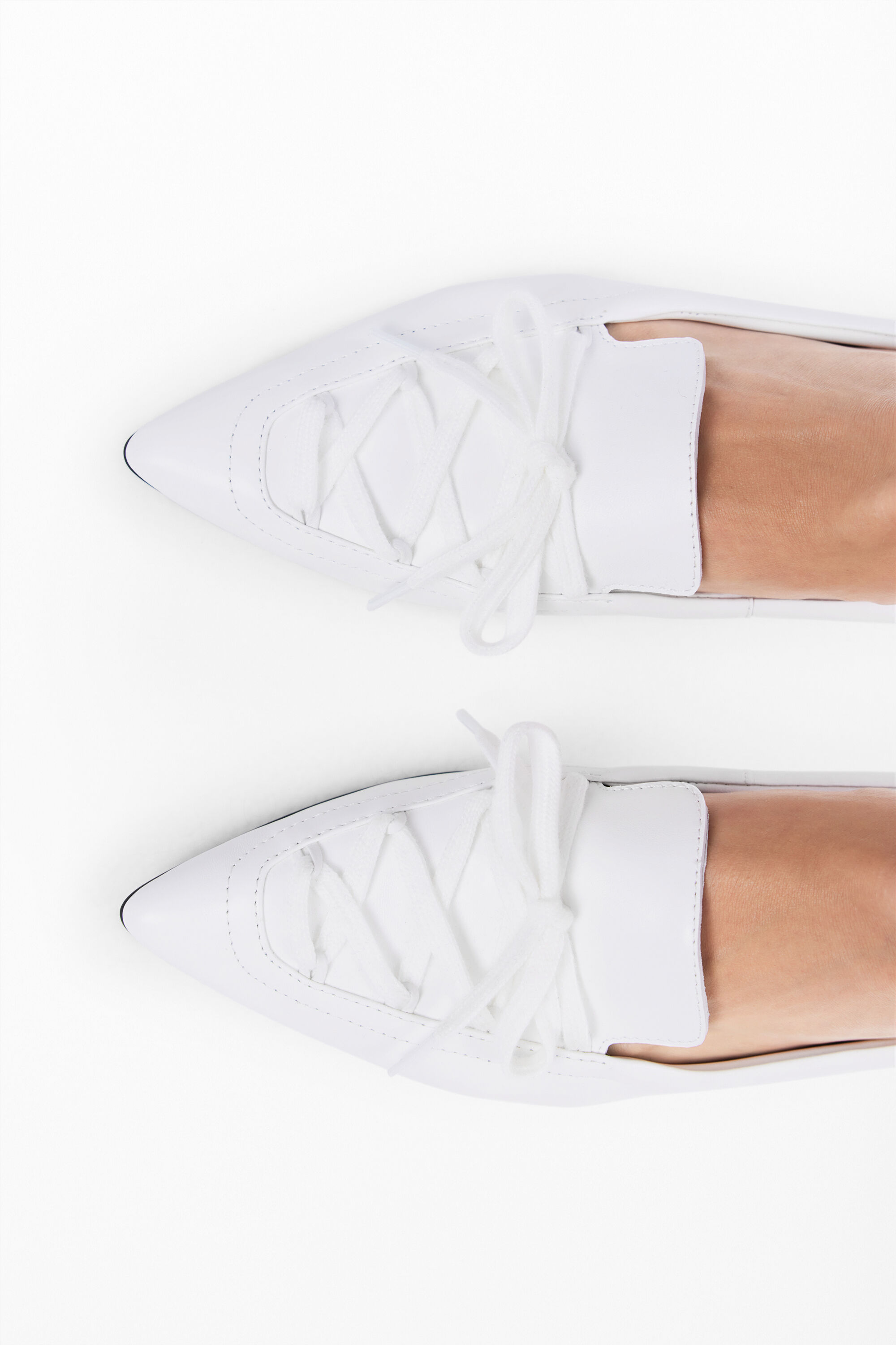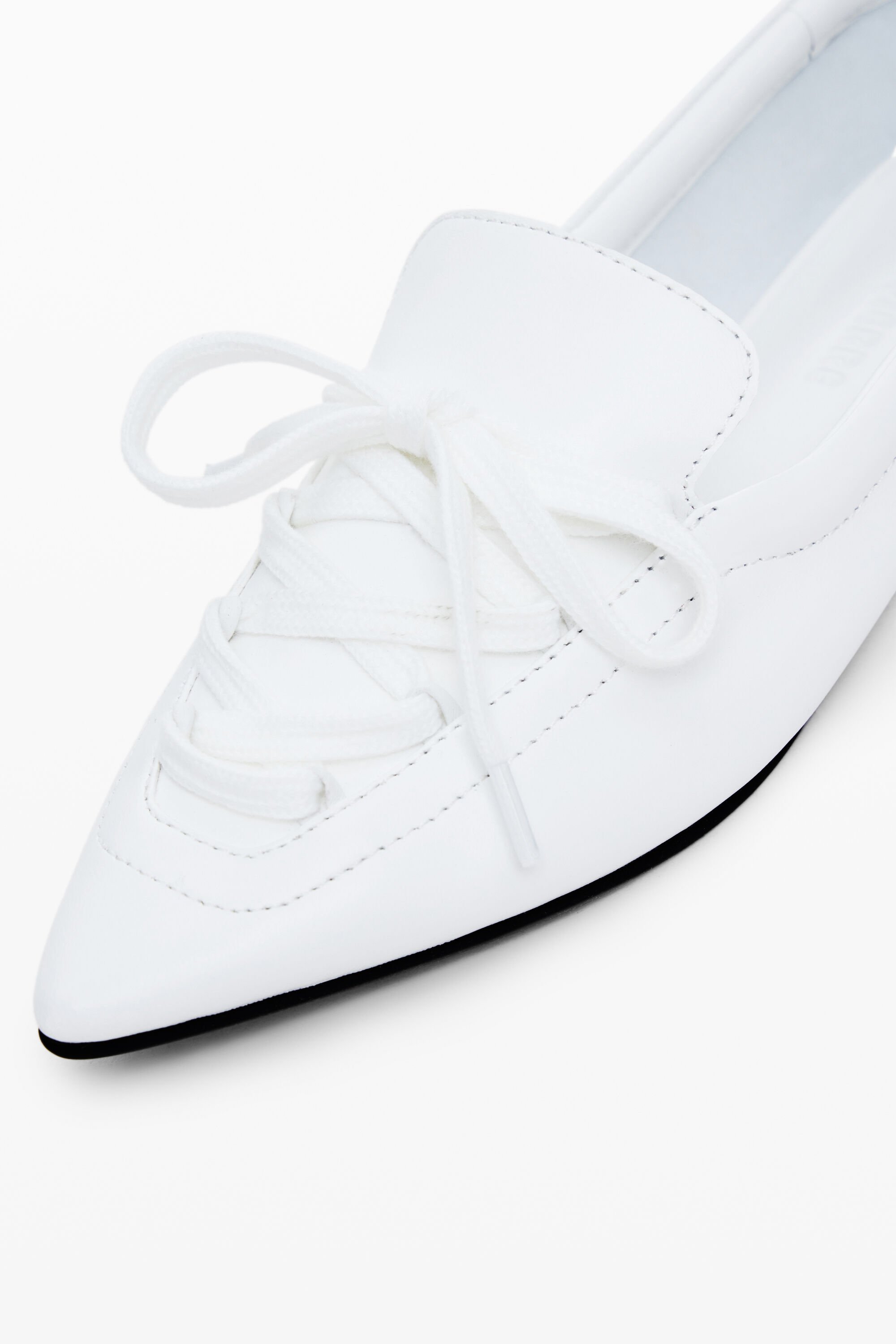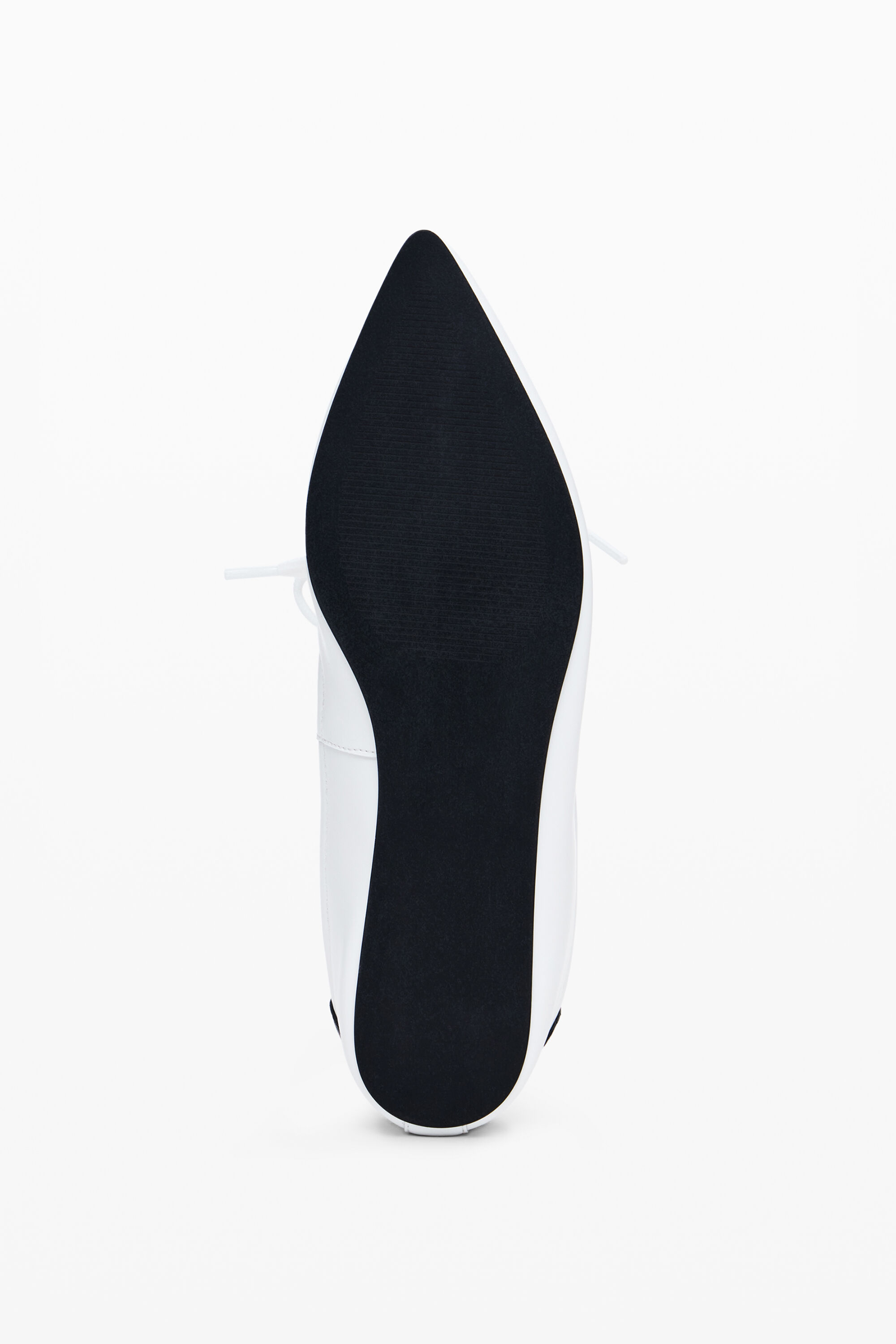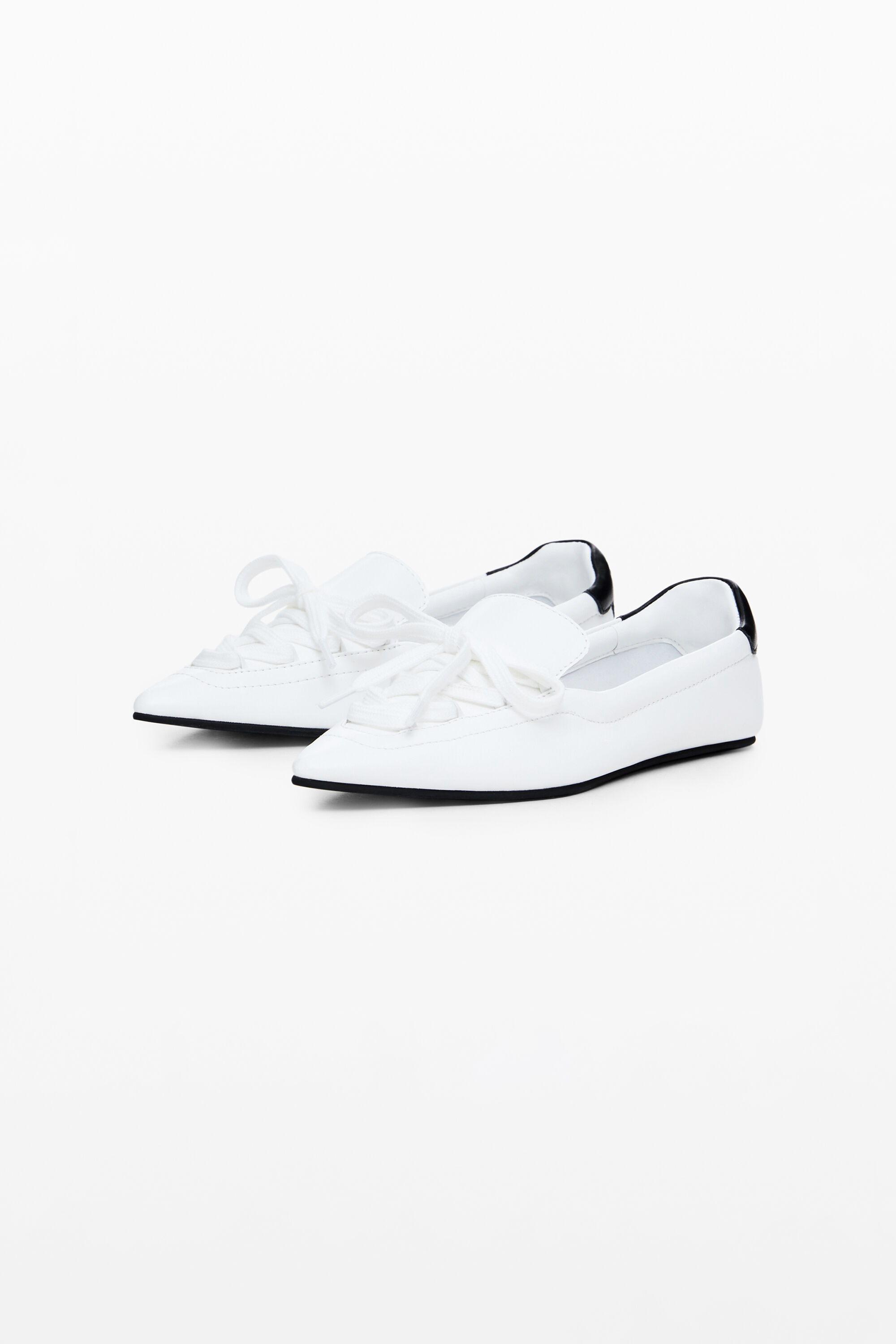 Flat leather sport-style ballet shoe with laces designed by Alphonse MaitrepierreFit: