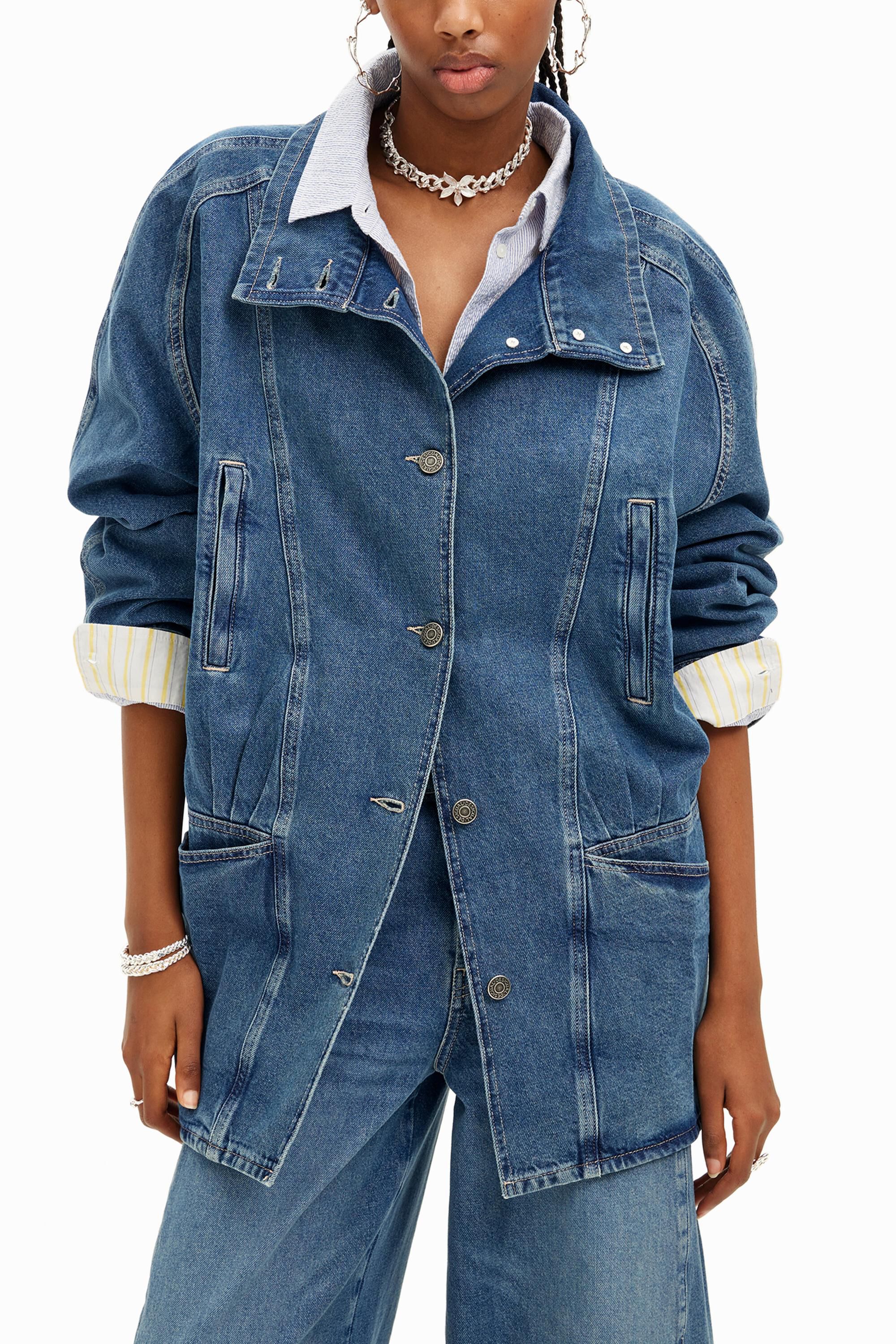 Denim jacket with striped effect, V-neck, multiple pockets, and button closure.Fit: OversizePlain denim with a striped effect.V-neckLong sleeveFront and side pockets.Button closureStriped effectWhen you buy Desigual cotton products, you are supporting our investment in Better Cotton.