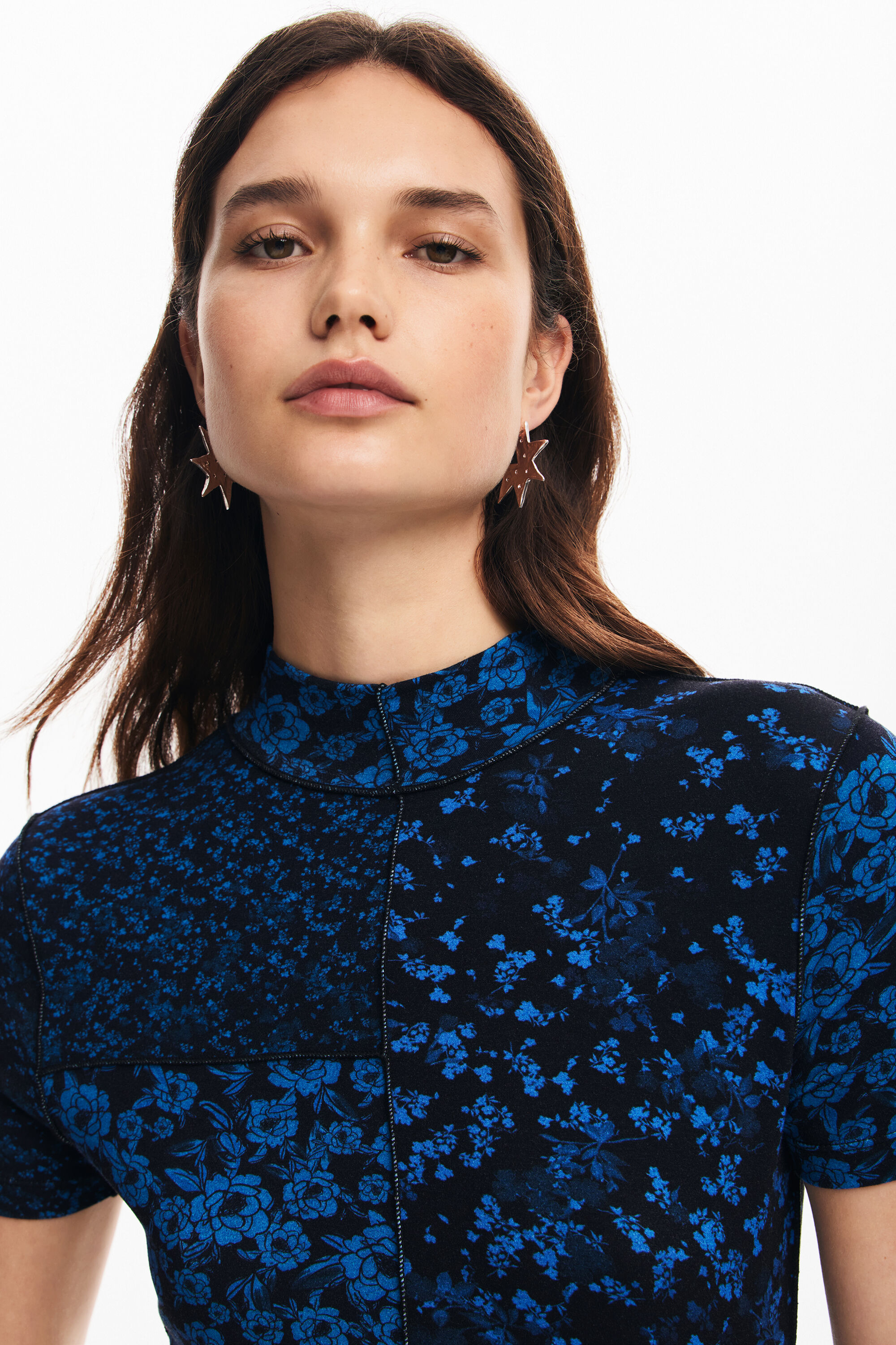 MidiSmall floral printMock neckShort sleeveLenzing™ EcoVero™ Viscose