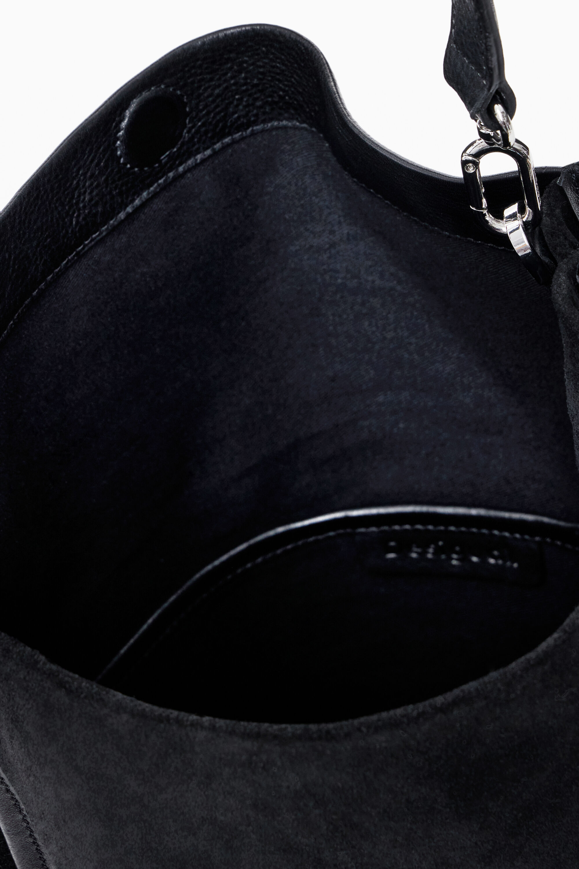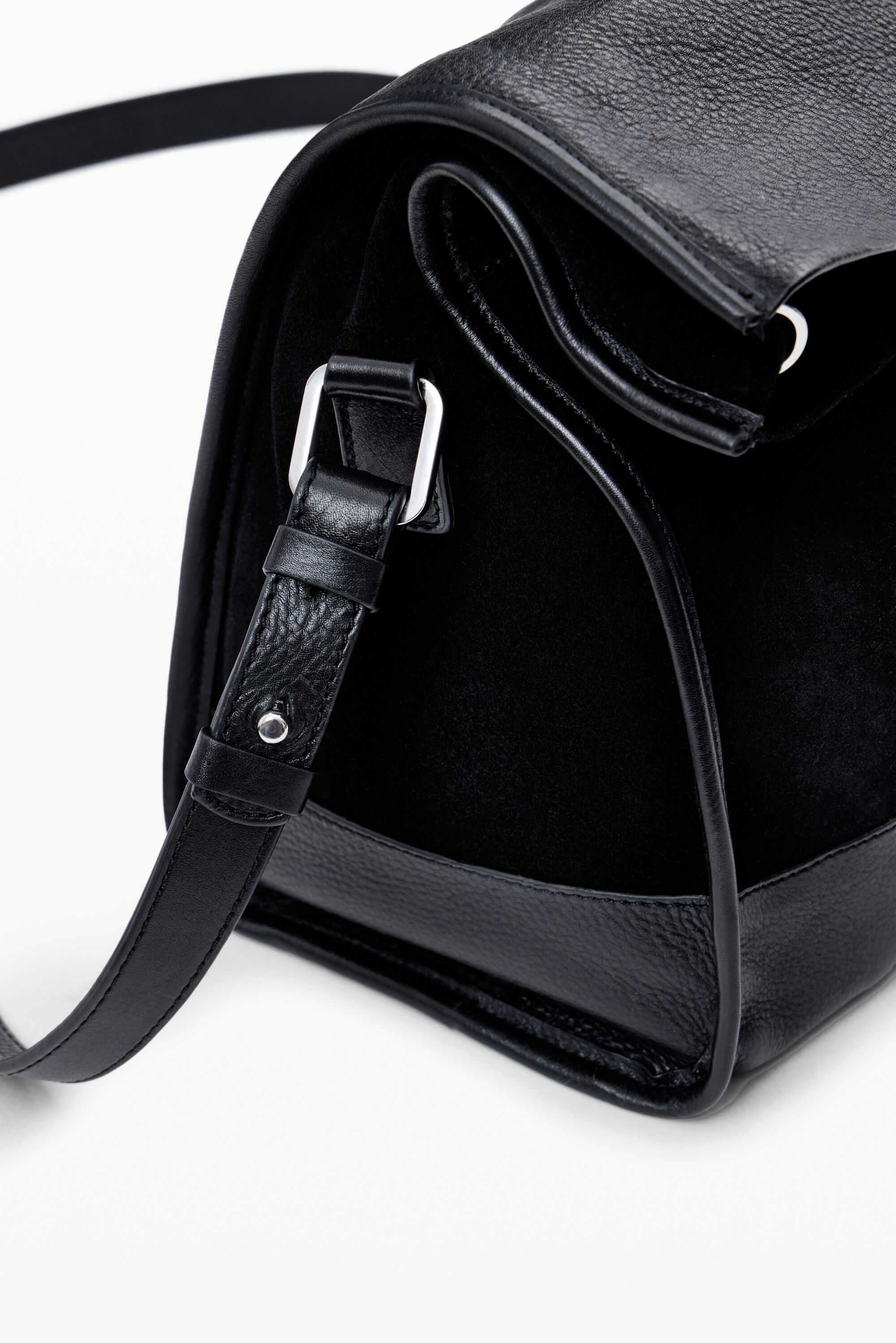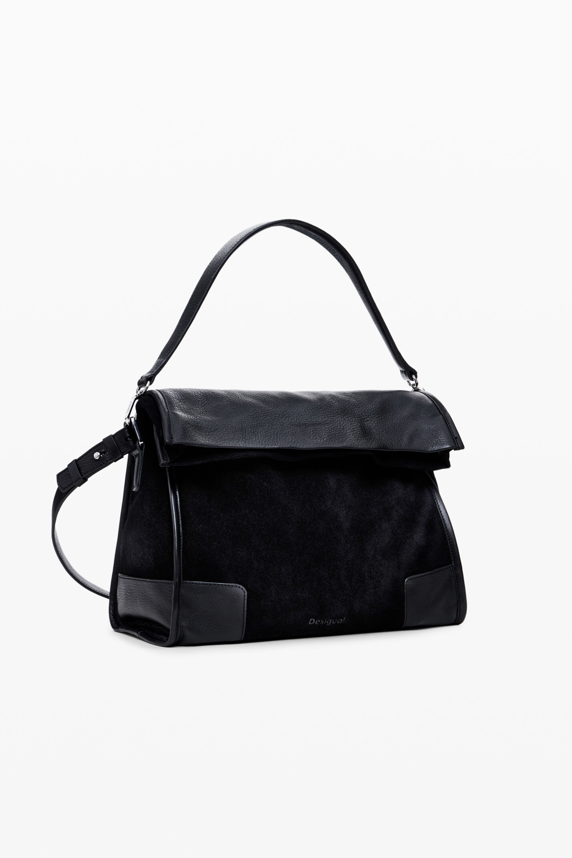 Medium crossbody bag in two textures, multiple handles, with pockets and magnetic closureSolid colorBack pocketMagnetic closureA compartmentTwo fixed handles: