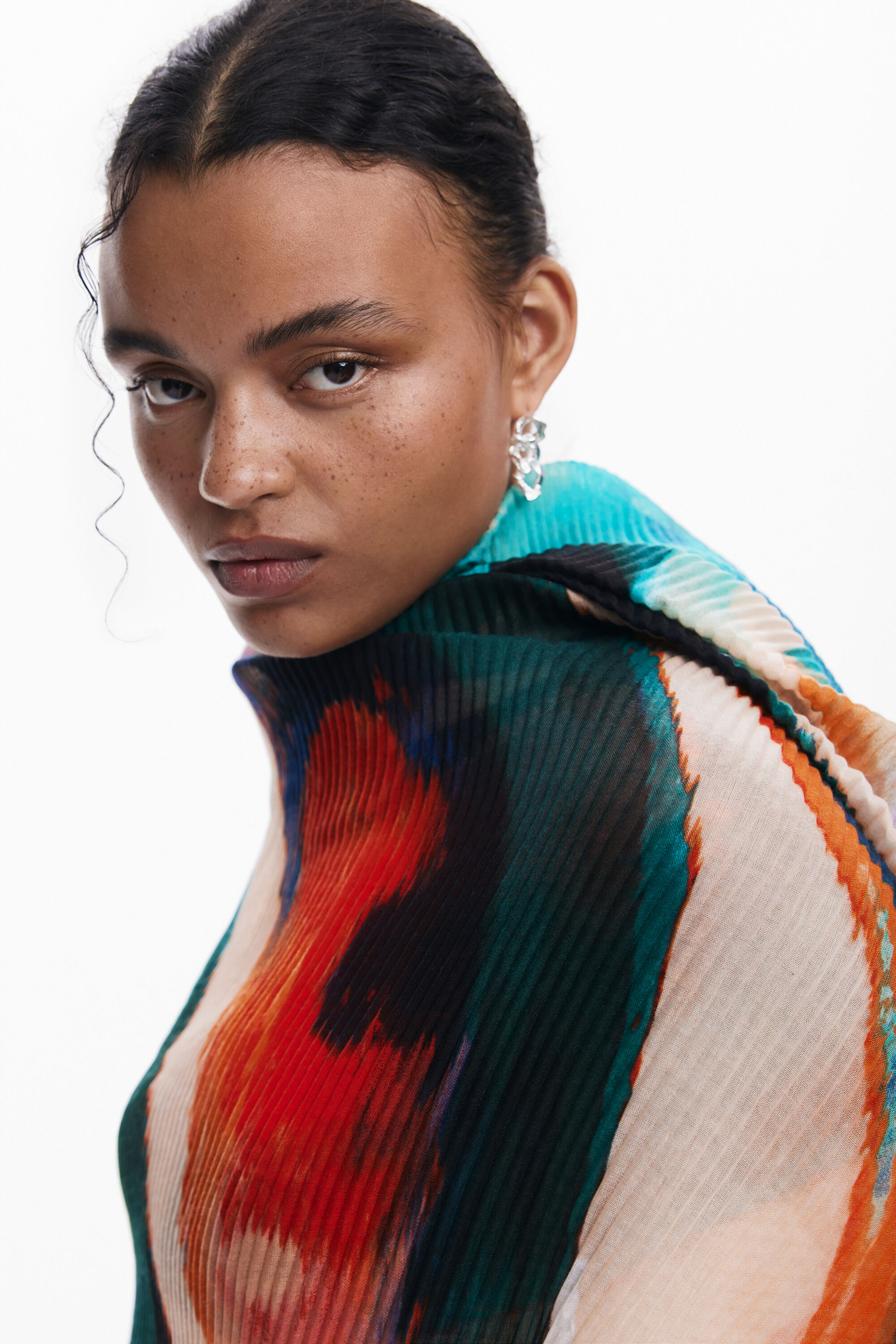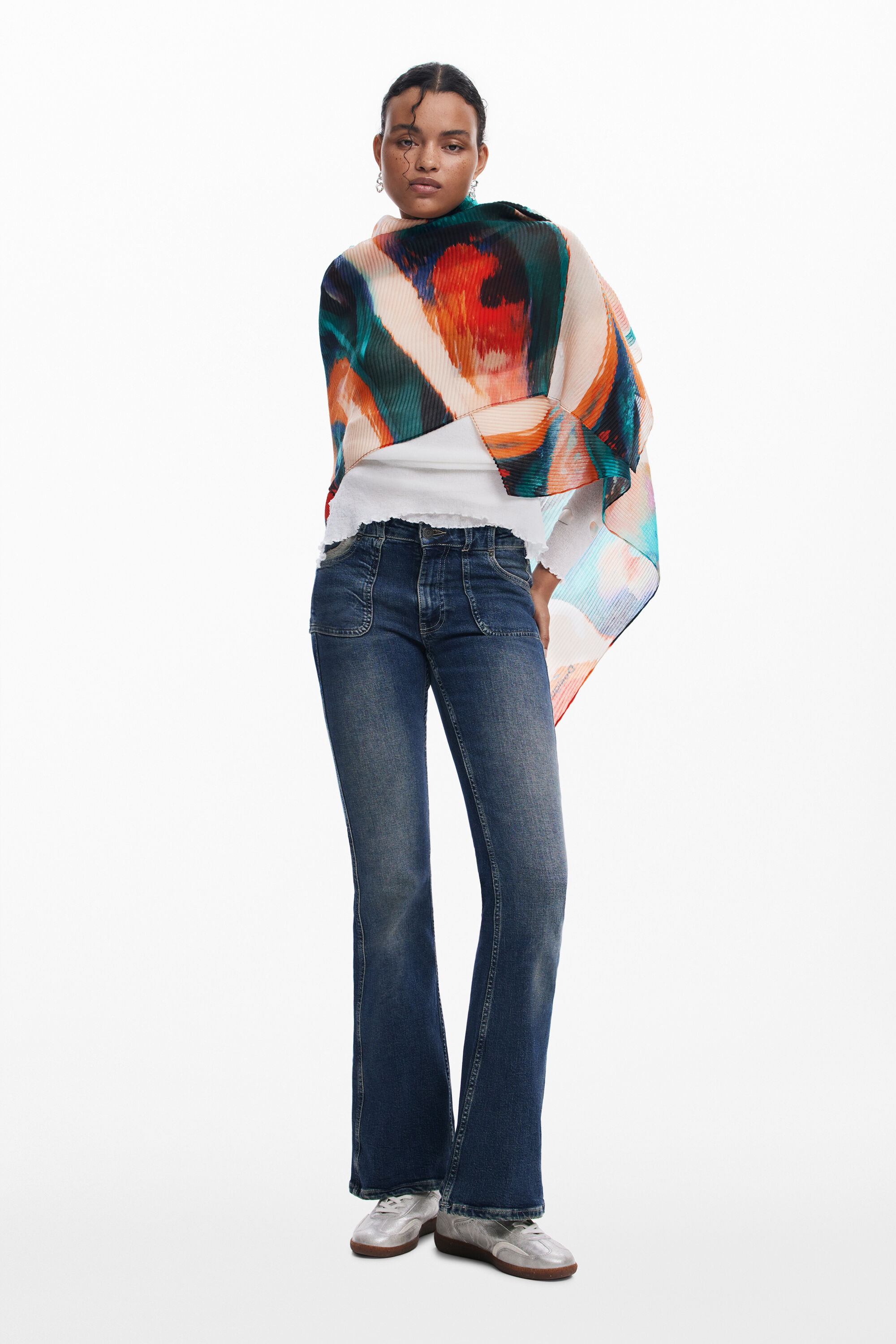 Rectangular scarf in soft and lightweight fabric with colorful printFit: