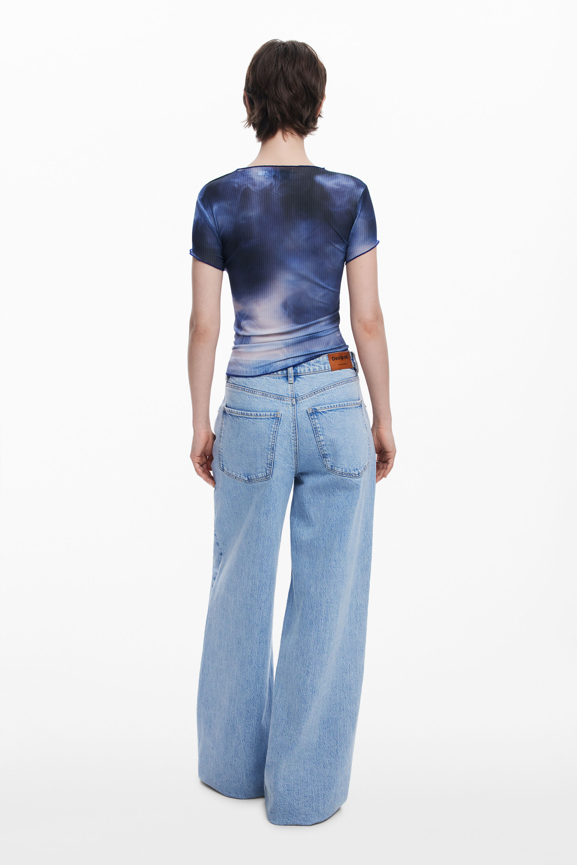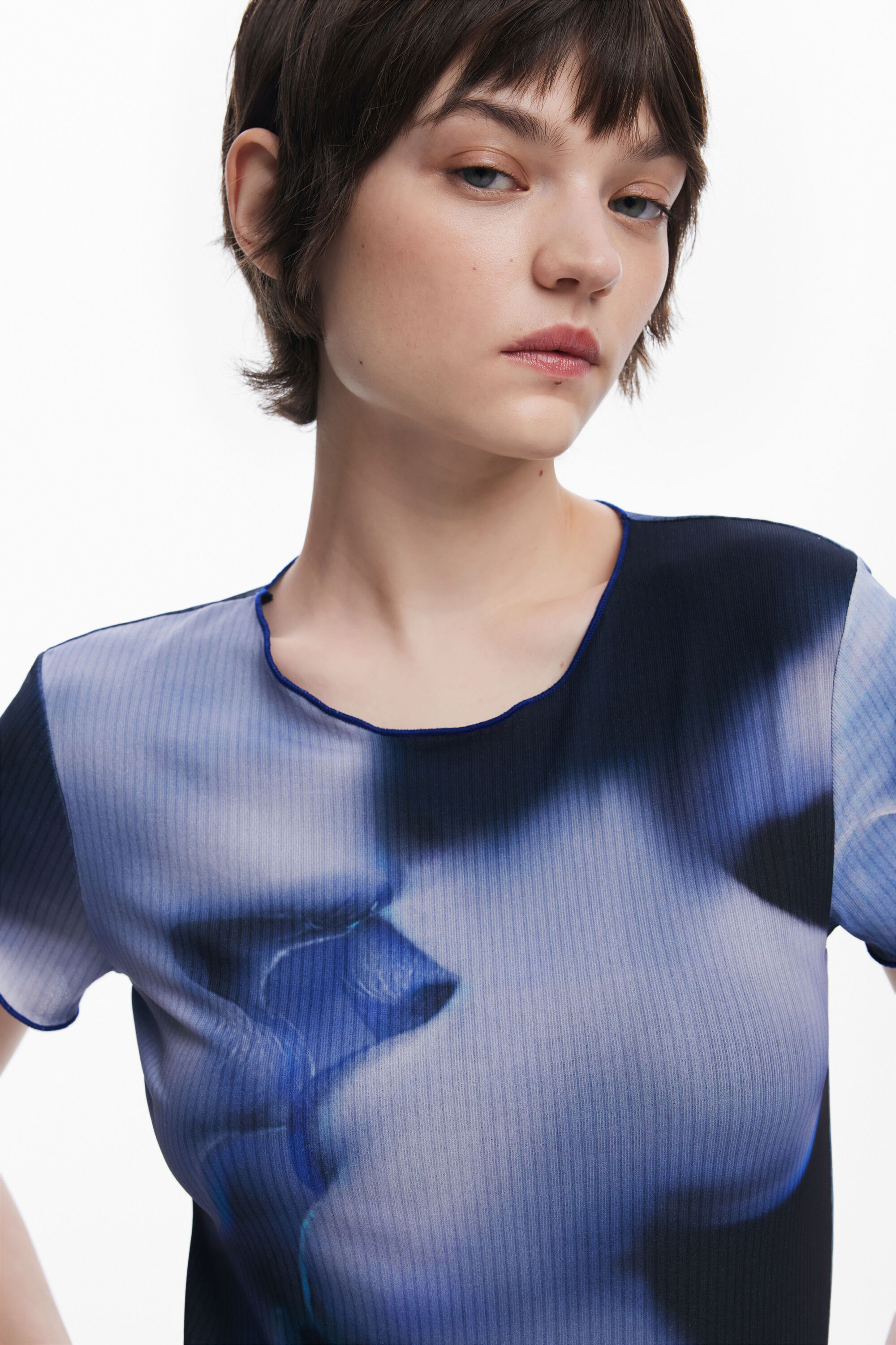 Round neck T-shirt with short sleeves, featuring contrasting trim finish and Arty print.