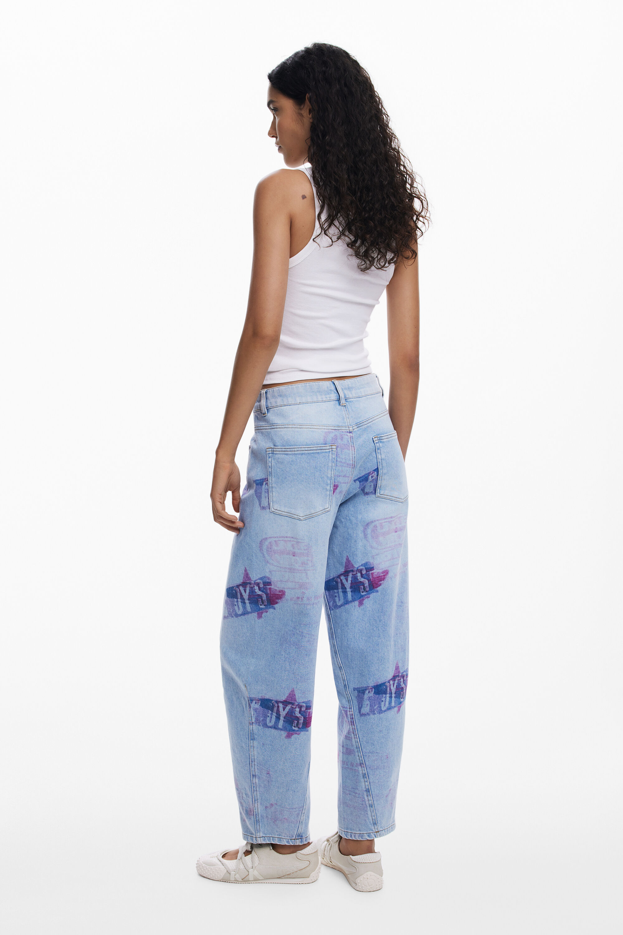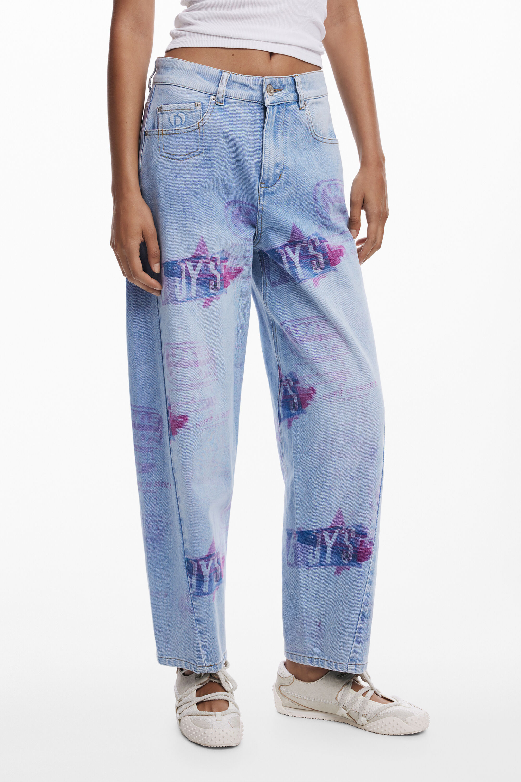 Balloon-cut denim trousers with collage-style print and worn effect.Color: