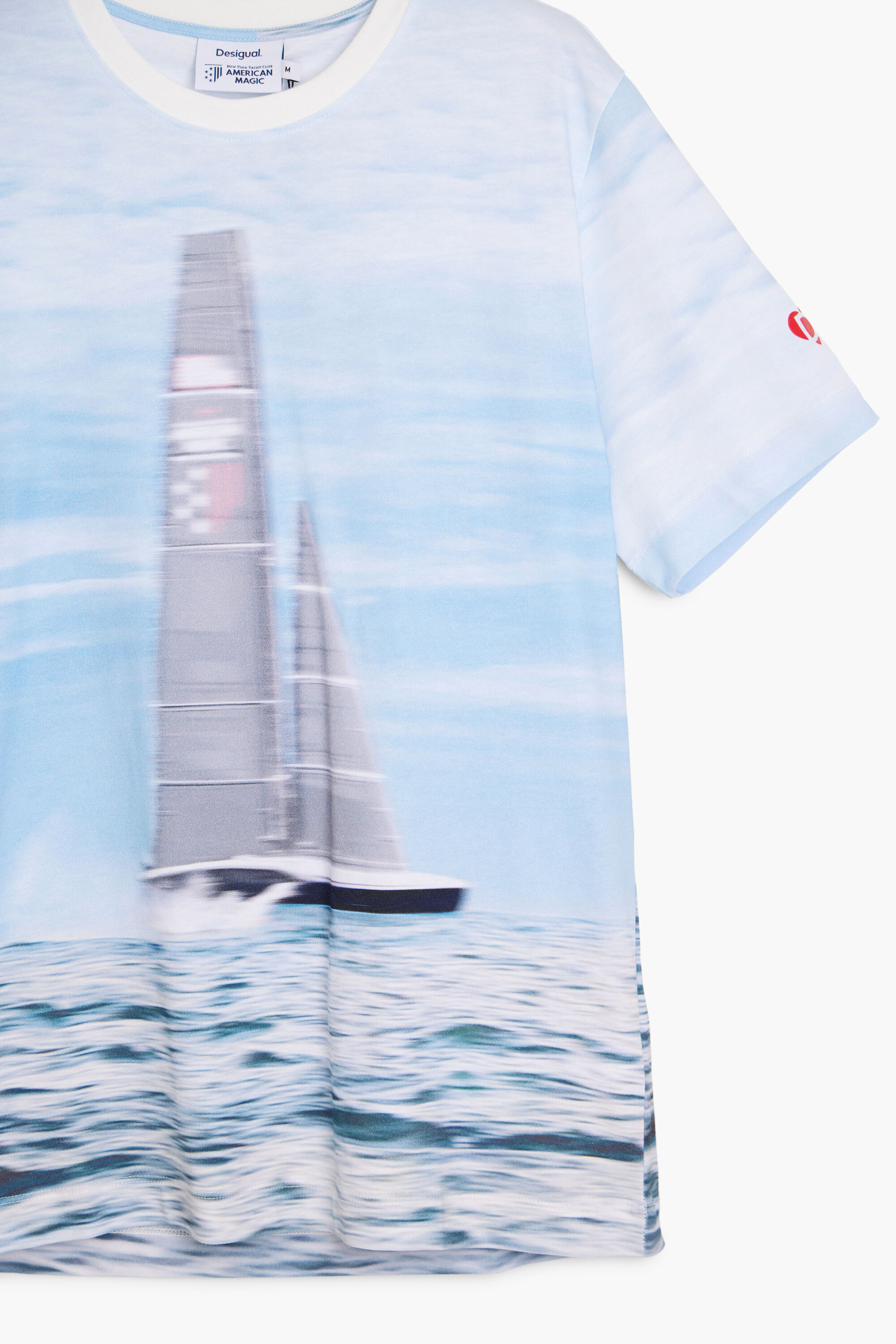 Short-sleeved T-shirt with a round neck and a print of a sailboat, inspired by the celebration of the 37th edition of the America's Cup in BarcelonaFit: RegularCentral print of a sailboatCrew neckShort sleeveWithout closureWhen you buy cotton products from Desigual, you are supporting our investment in Better Cotton.