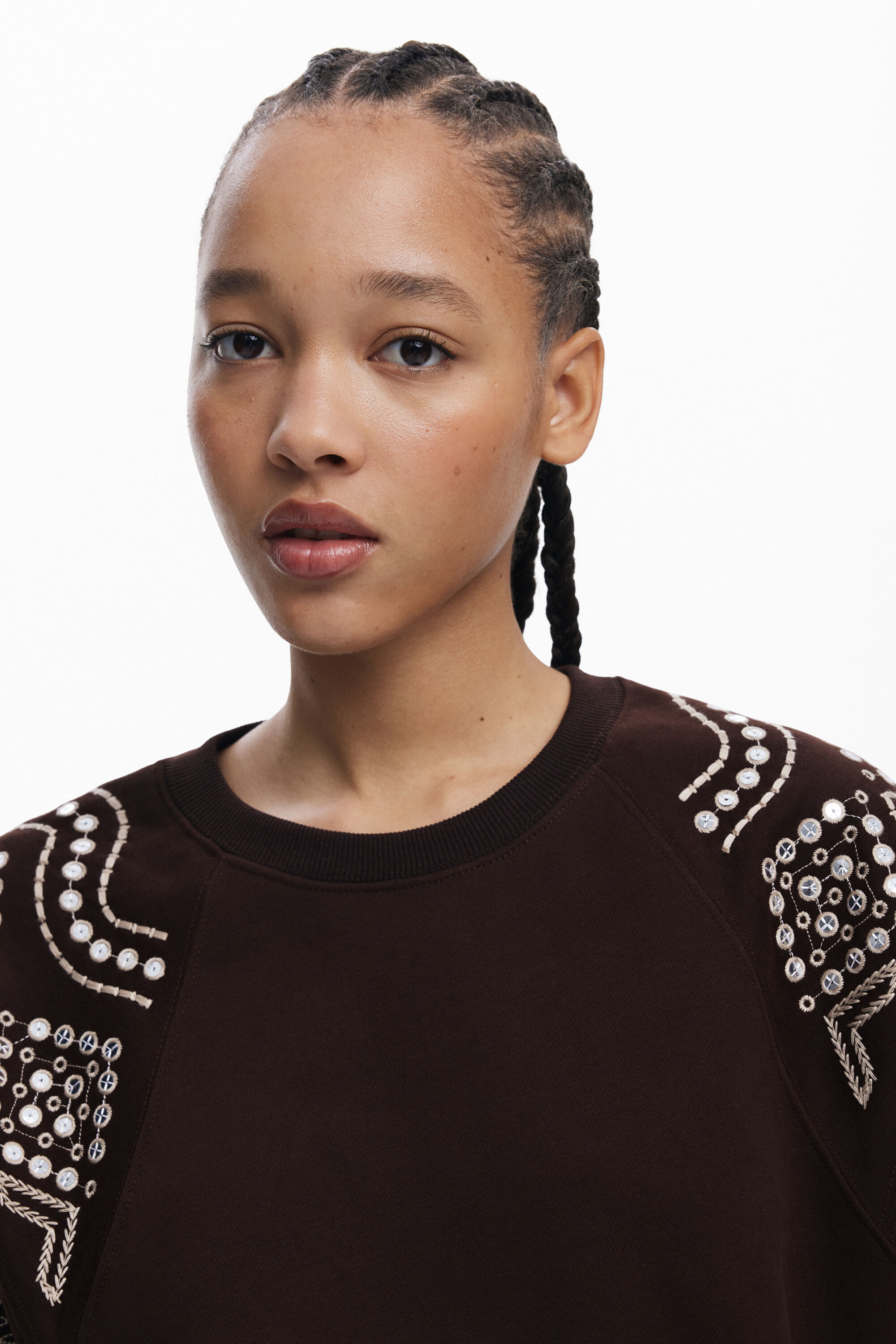 Long-sleeve sweatshirt with a round neck and stud details on the sleeves.Neckline: