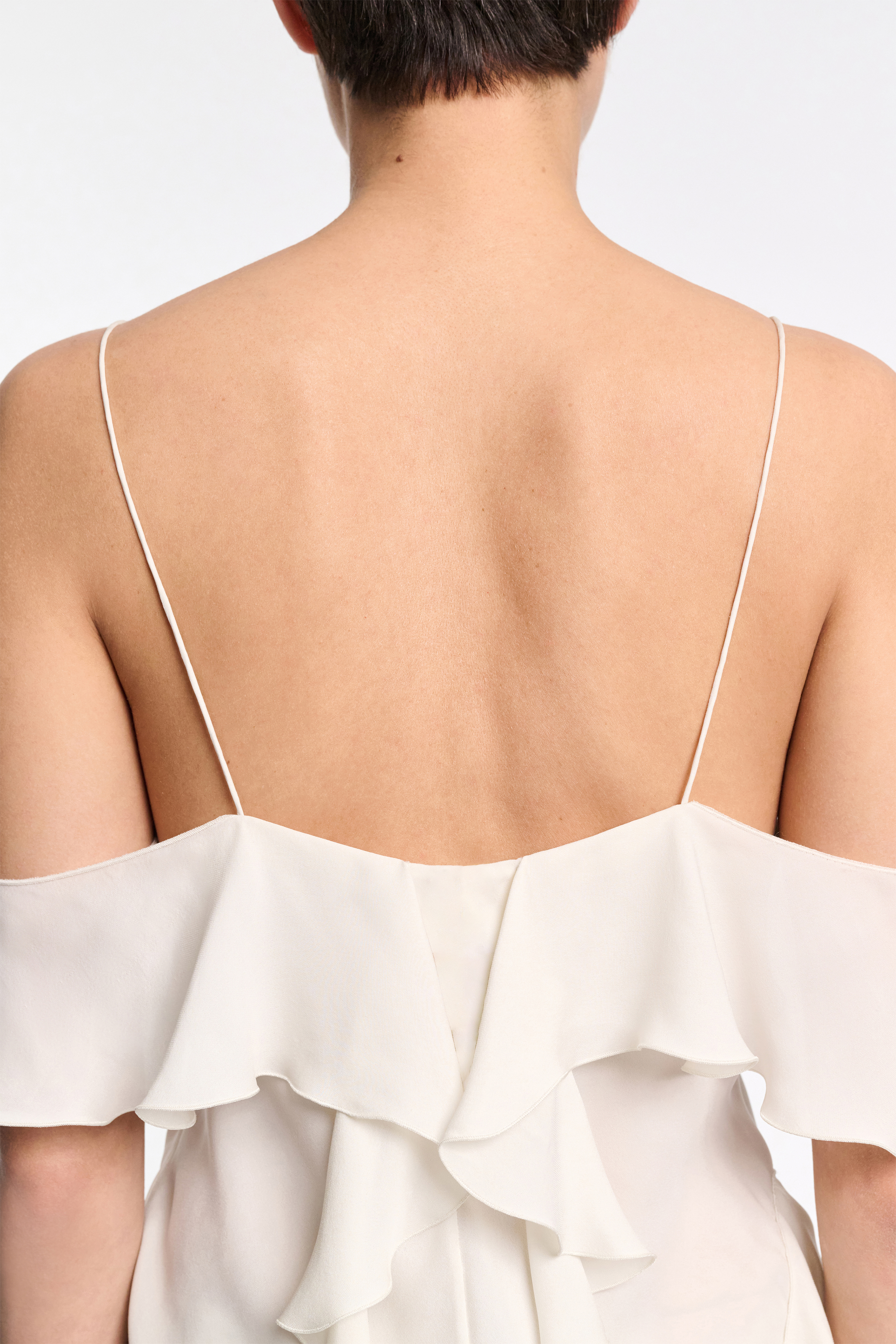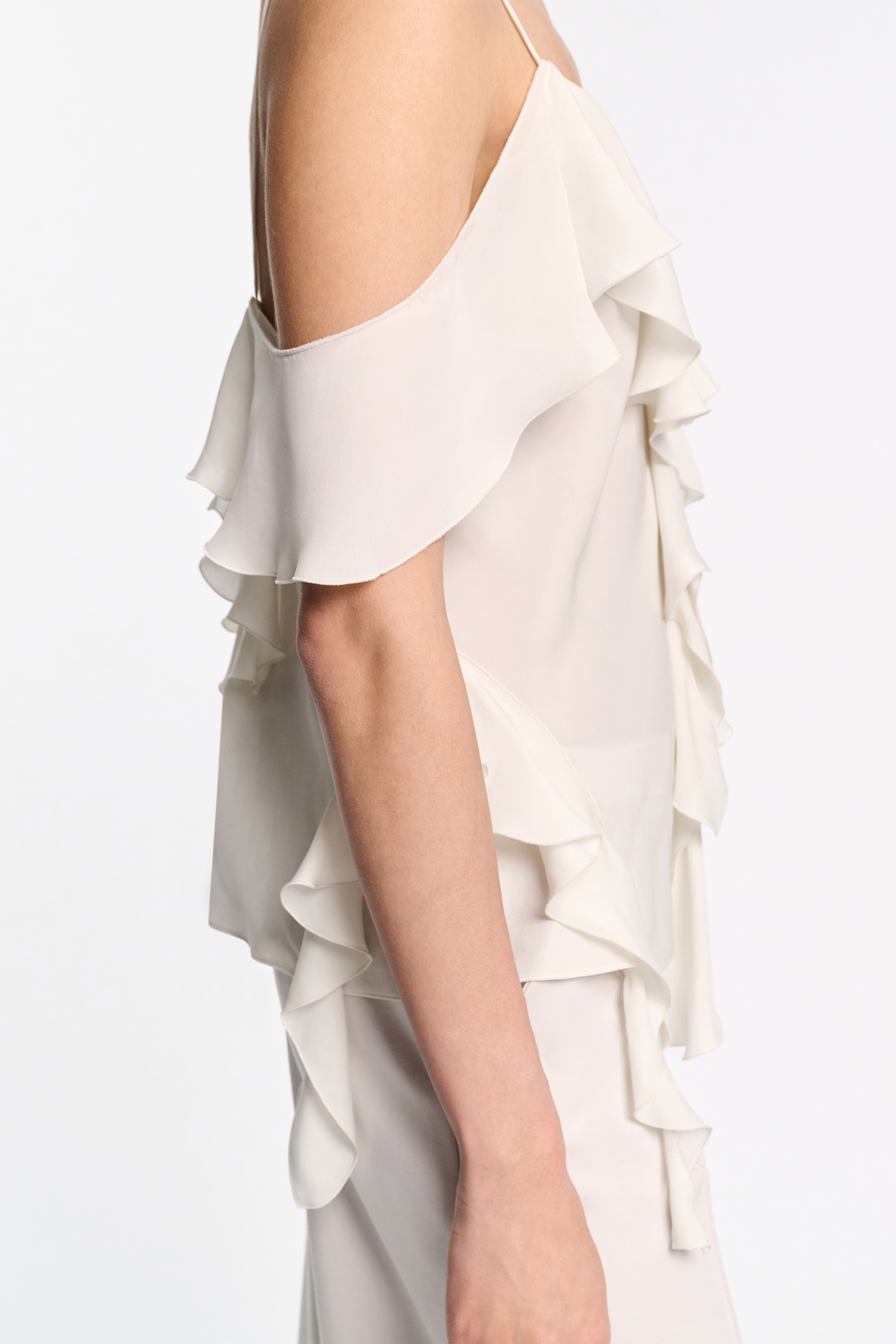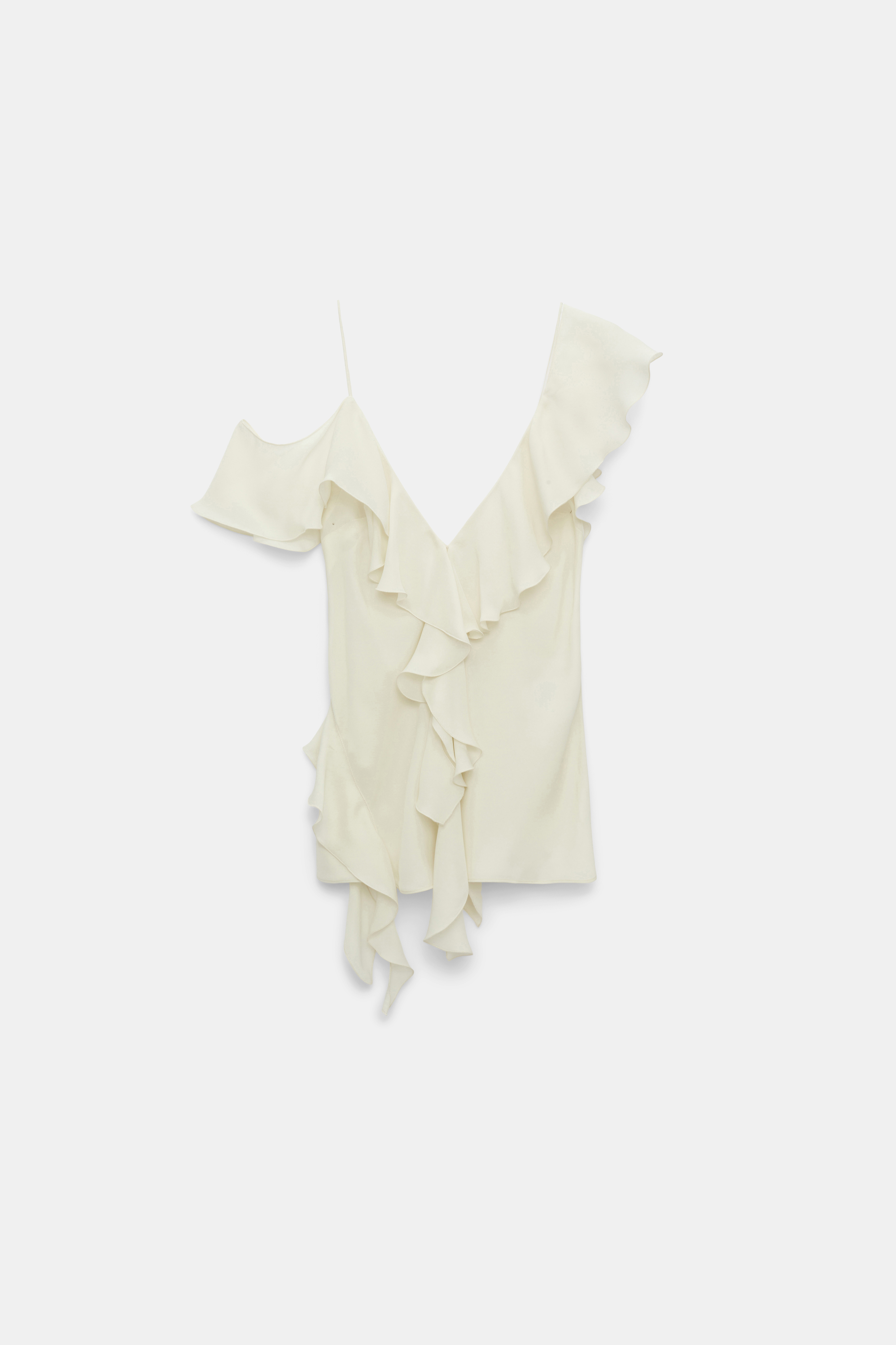 The ruffle top is made from double silk georgette and has spaghetti- and ruffle straps.