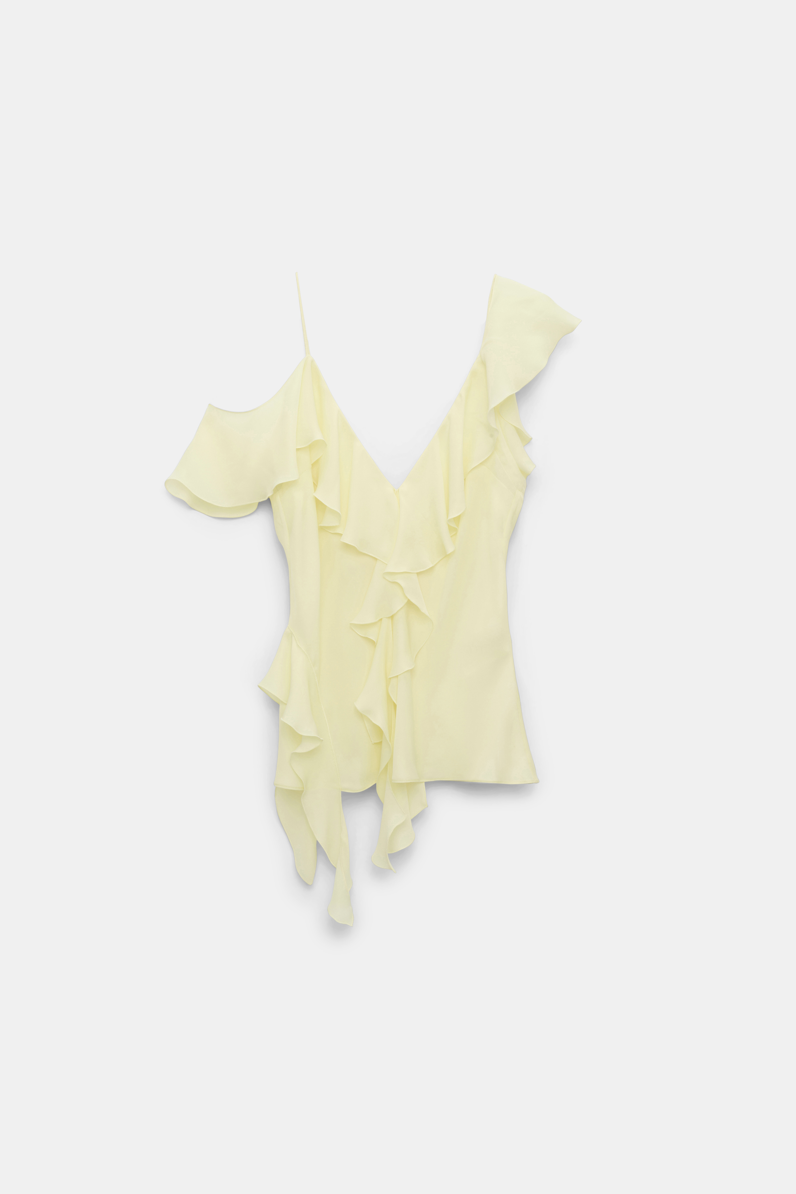 The ruffle top is made from double silk georgette and has spaghetti- and ruffle straps.