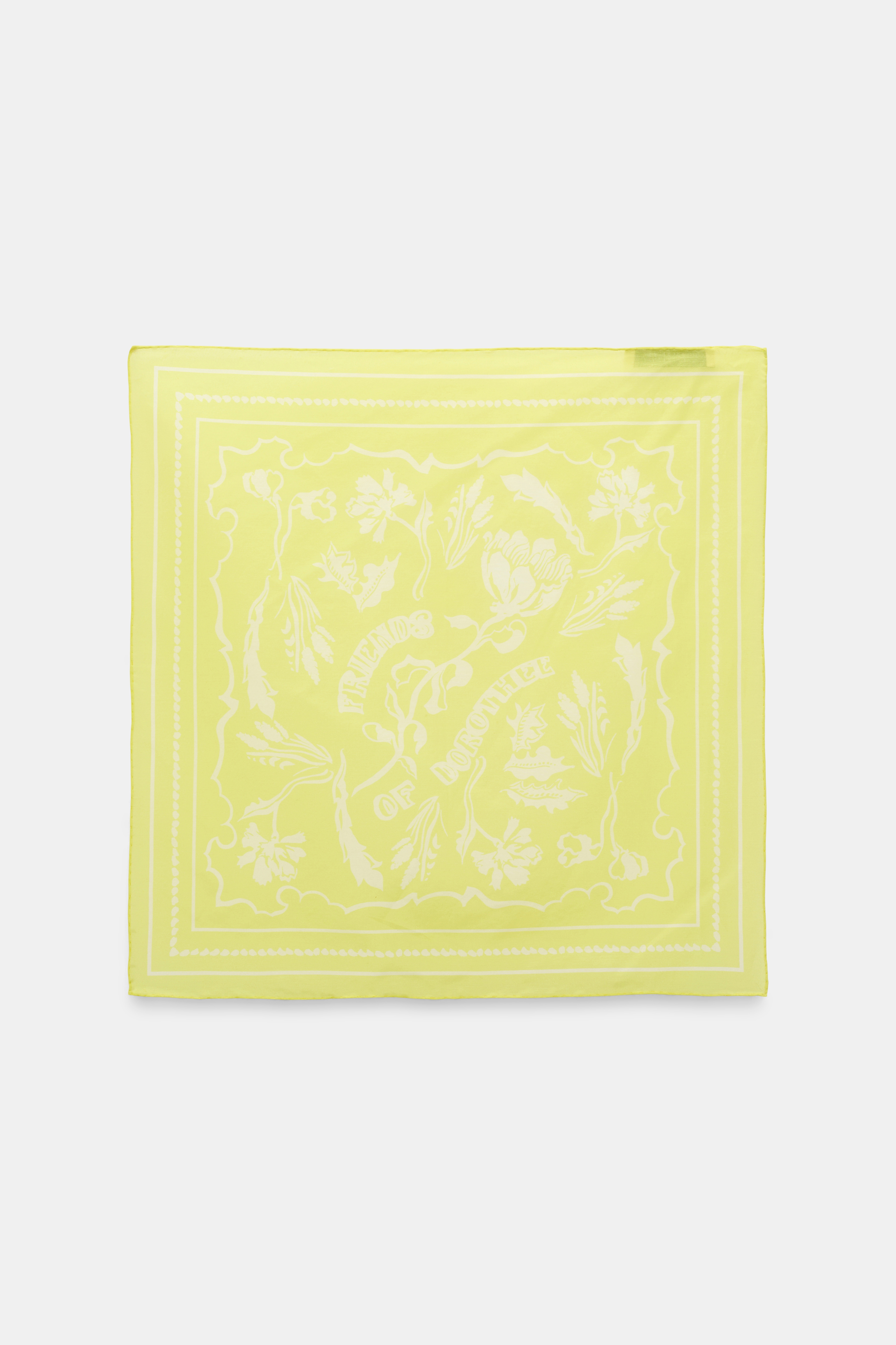 The square bandana is made from a cotton-silk mix and is covered with our signature "Friends of Dorothee" print.