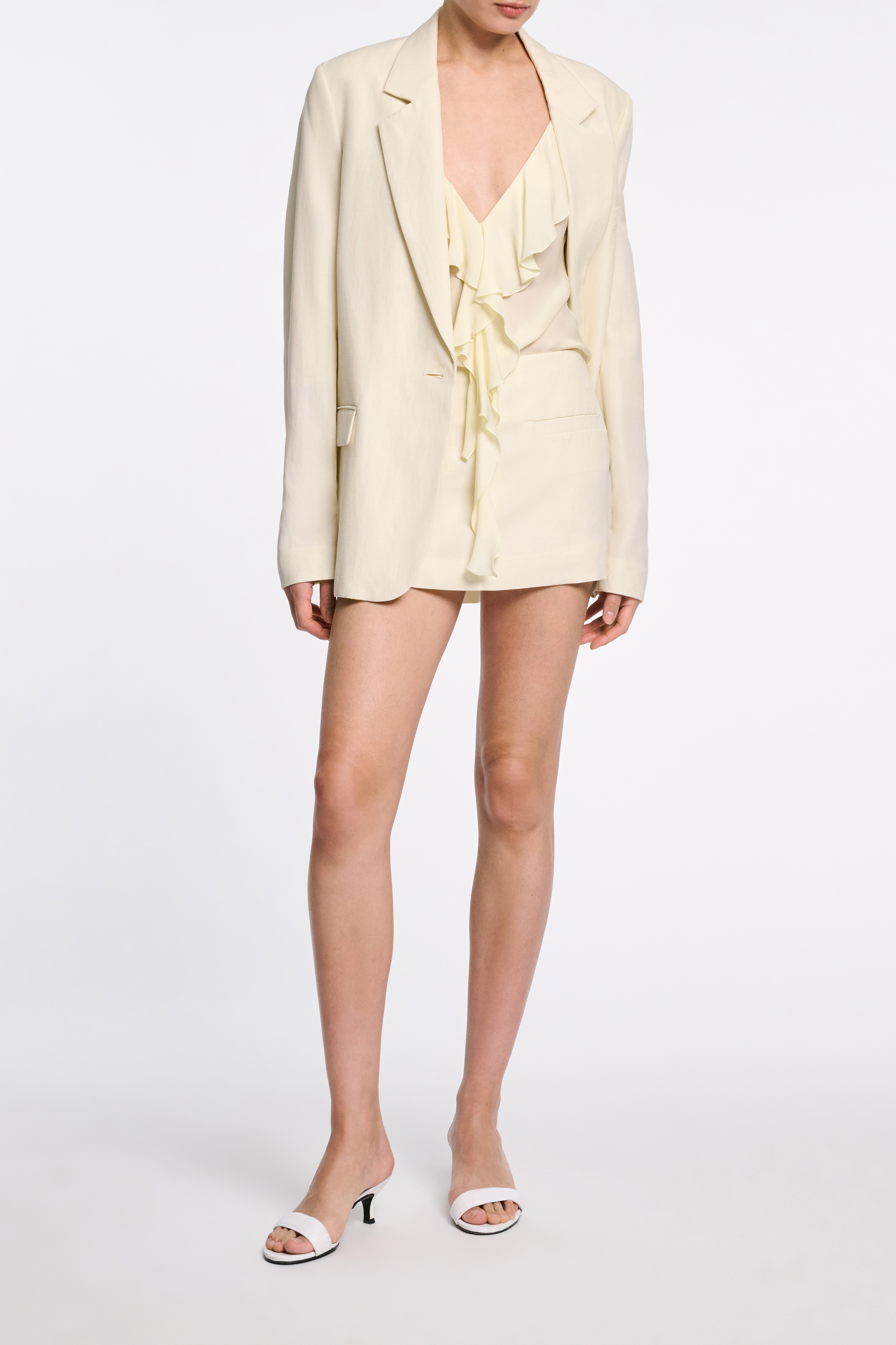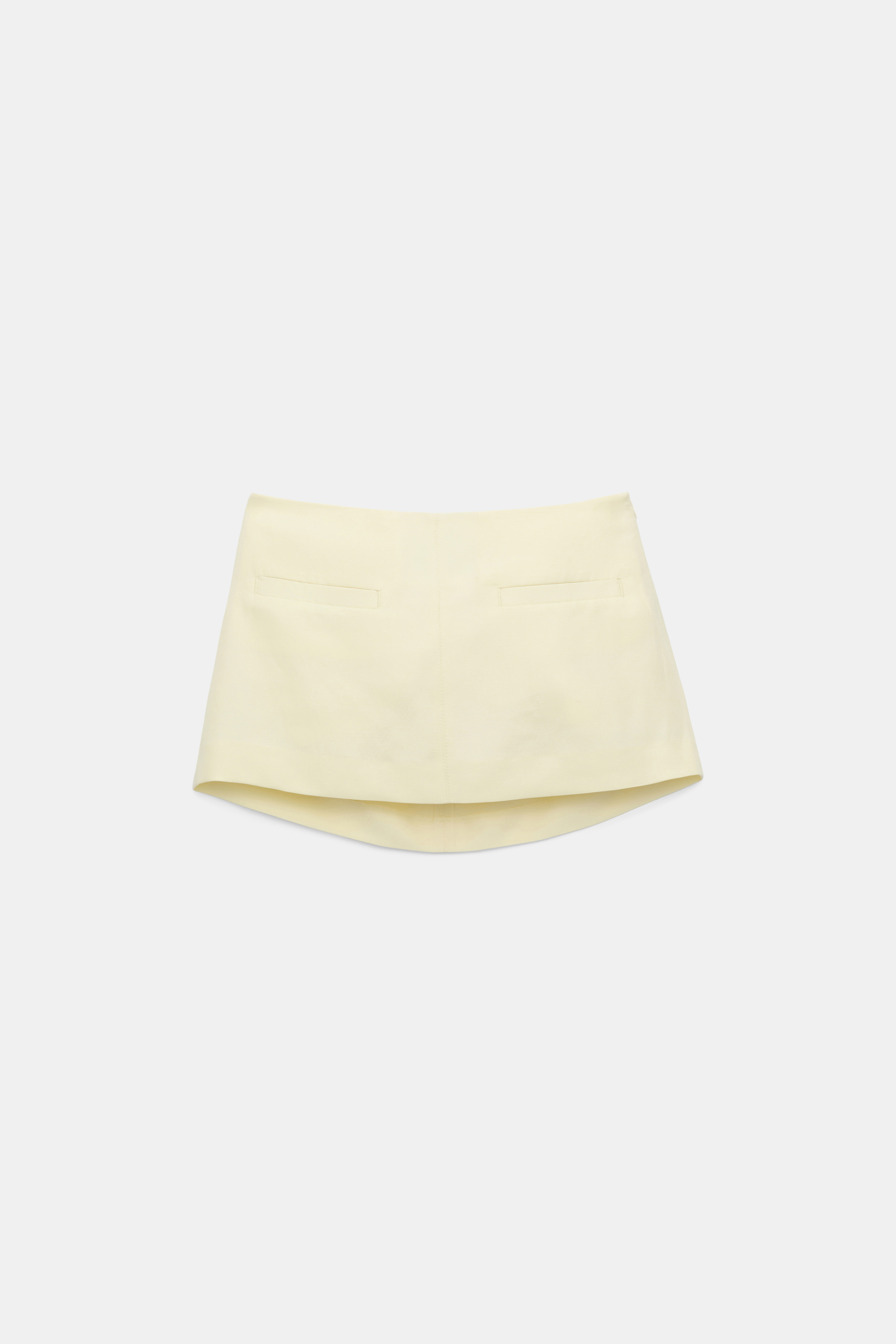 The micro mini skirt is made from technical linen and has integrated shorts.