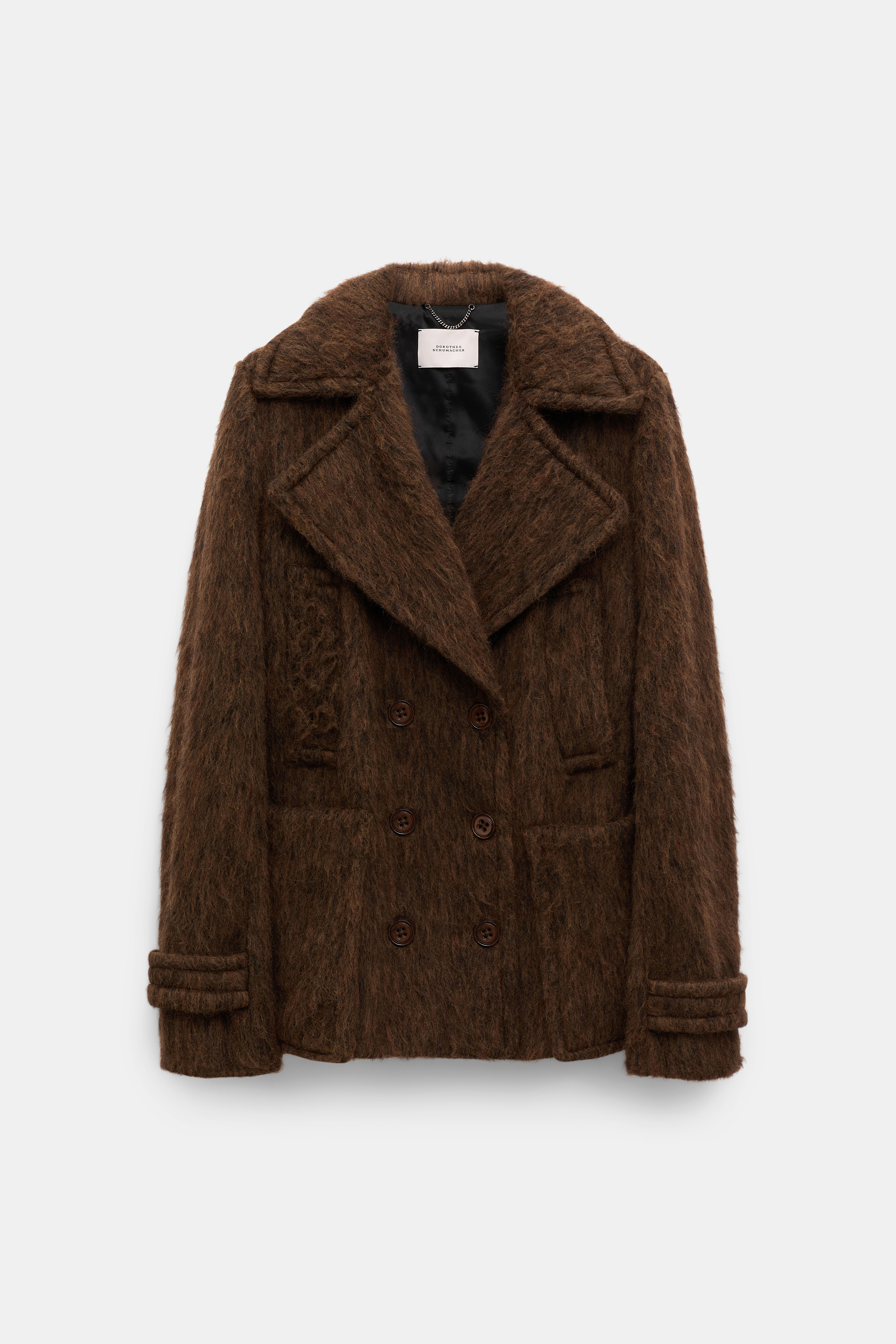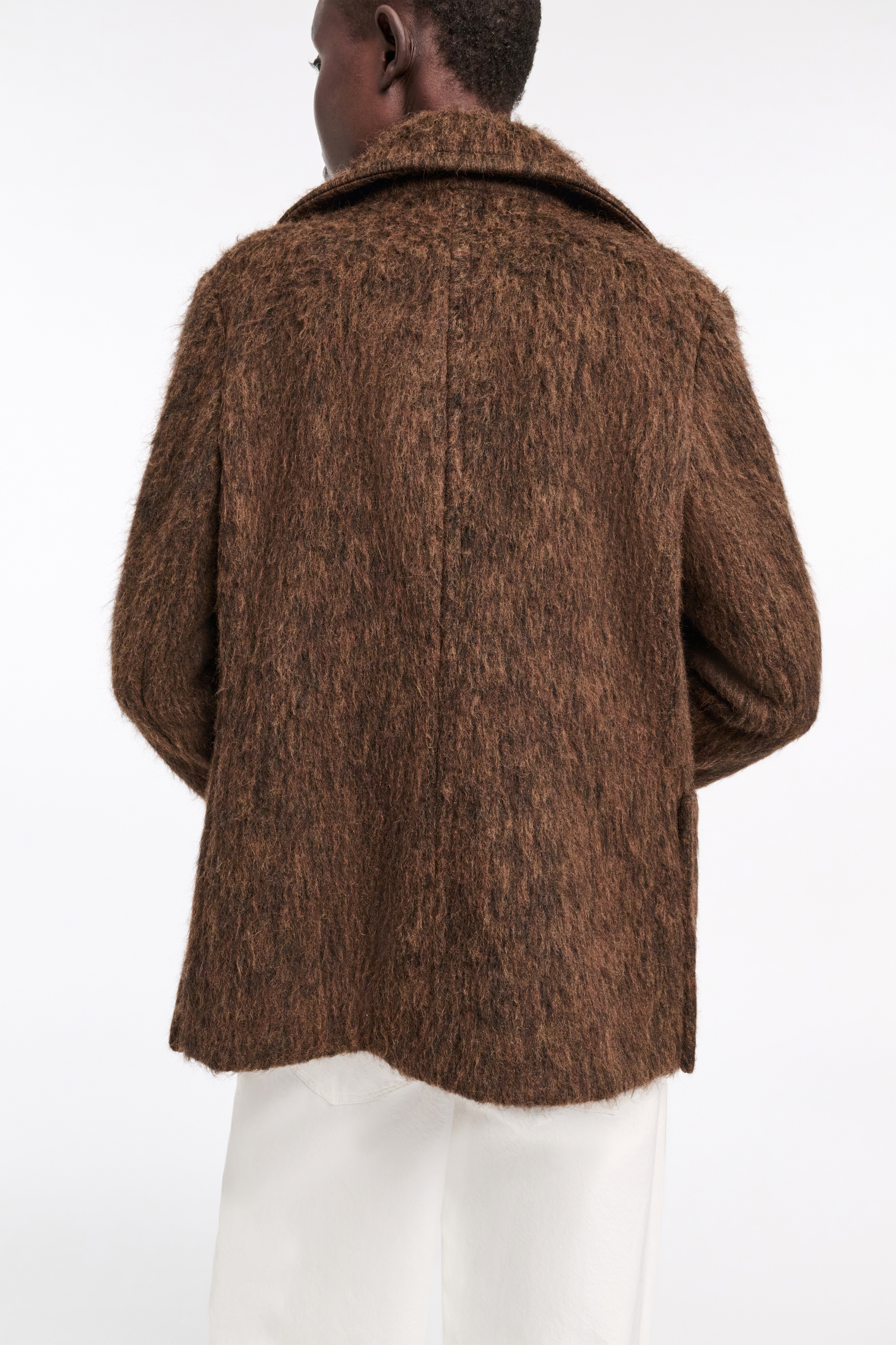 The caban jacket is made from a tactile, alpaca-infused wool mix.