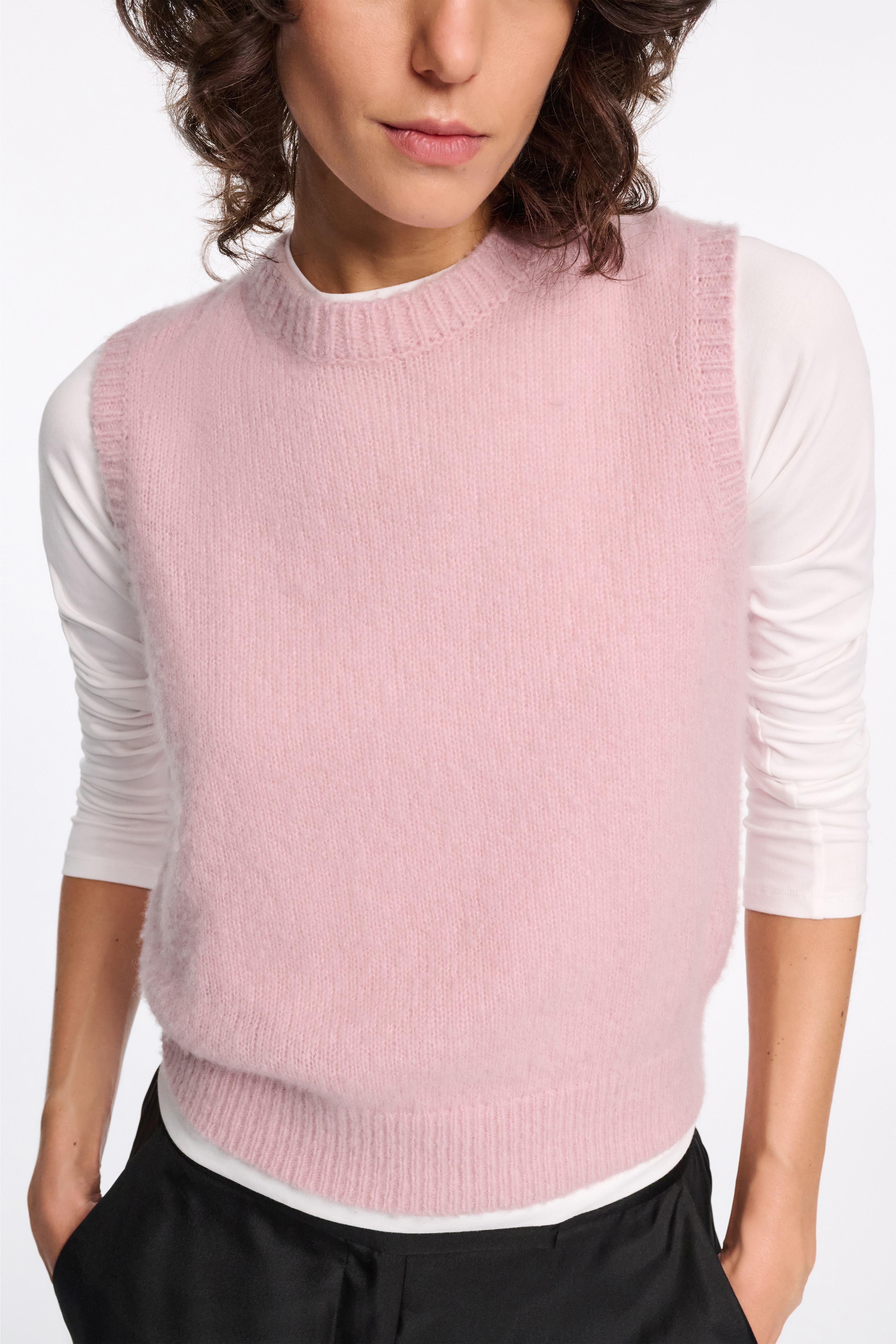 Knit from luxuriously soft new cashmere, the round neck shell is cropped and loosely fitted.
