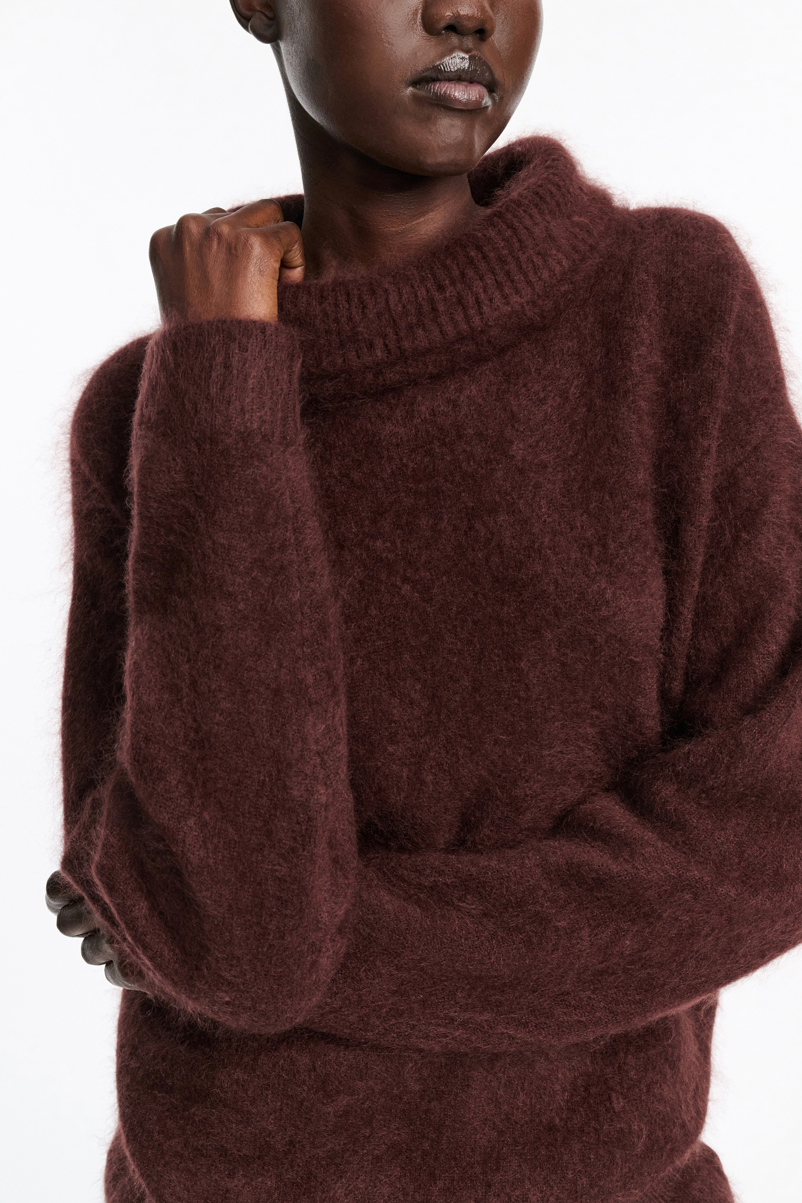 The virgin Merino-cashmere turtleneck pullover has a fluffy knit wash for an extra soft finish and can also be worn as a vest.