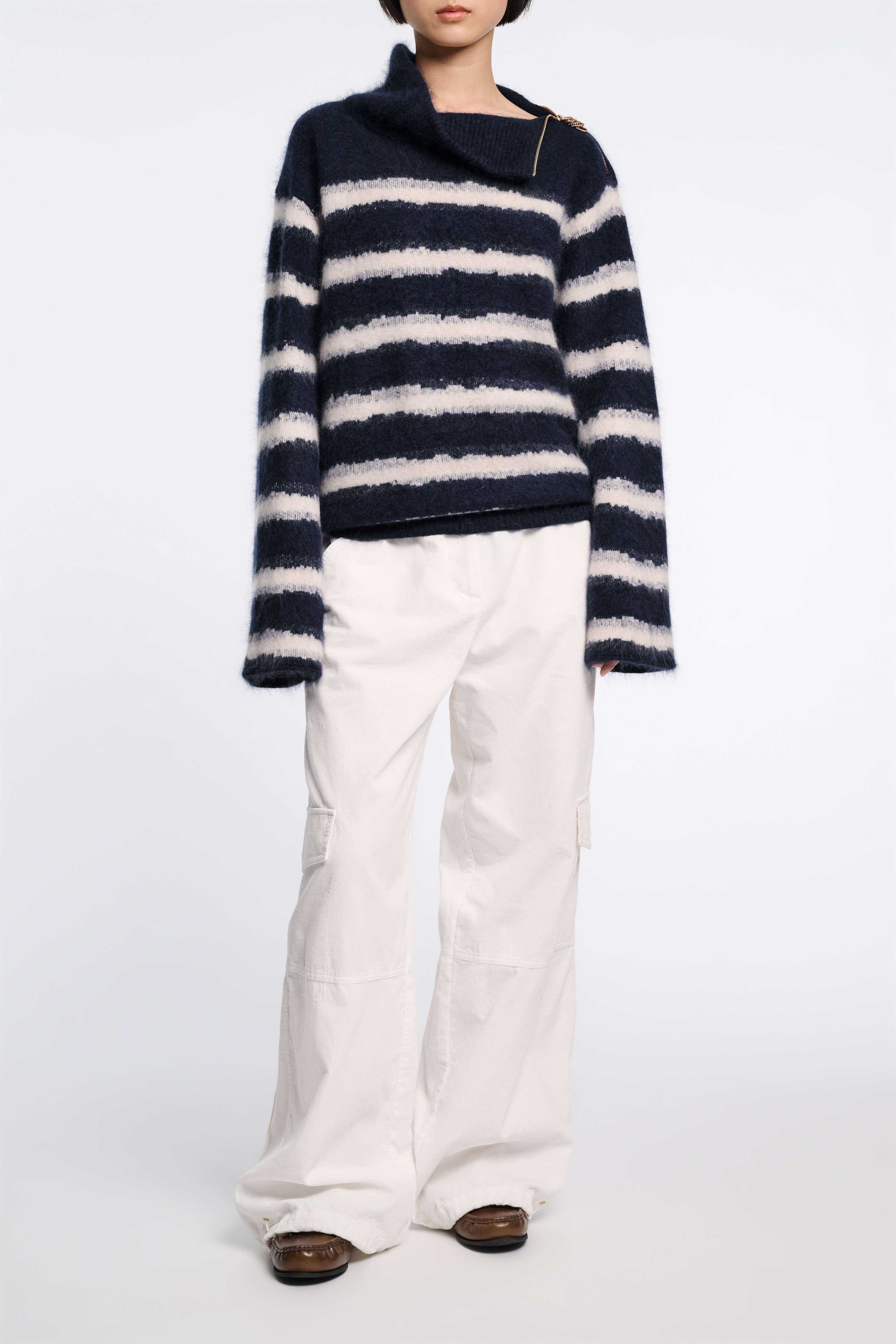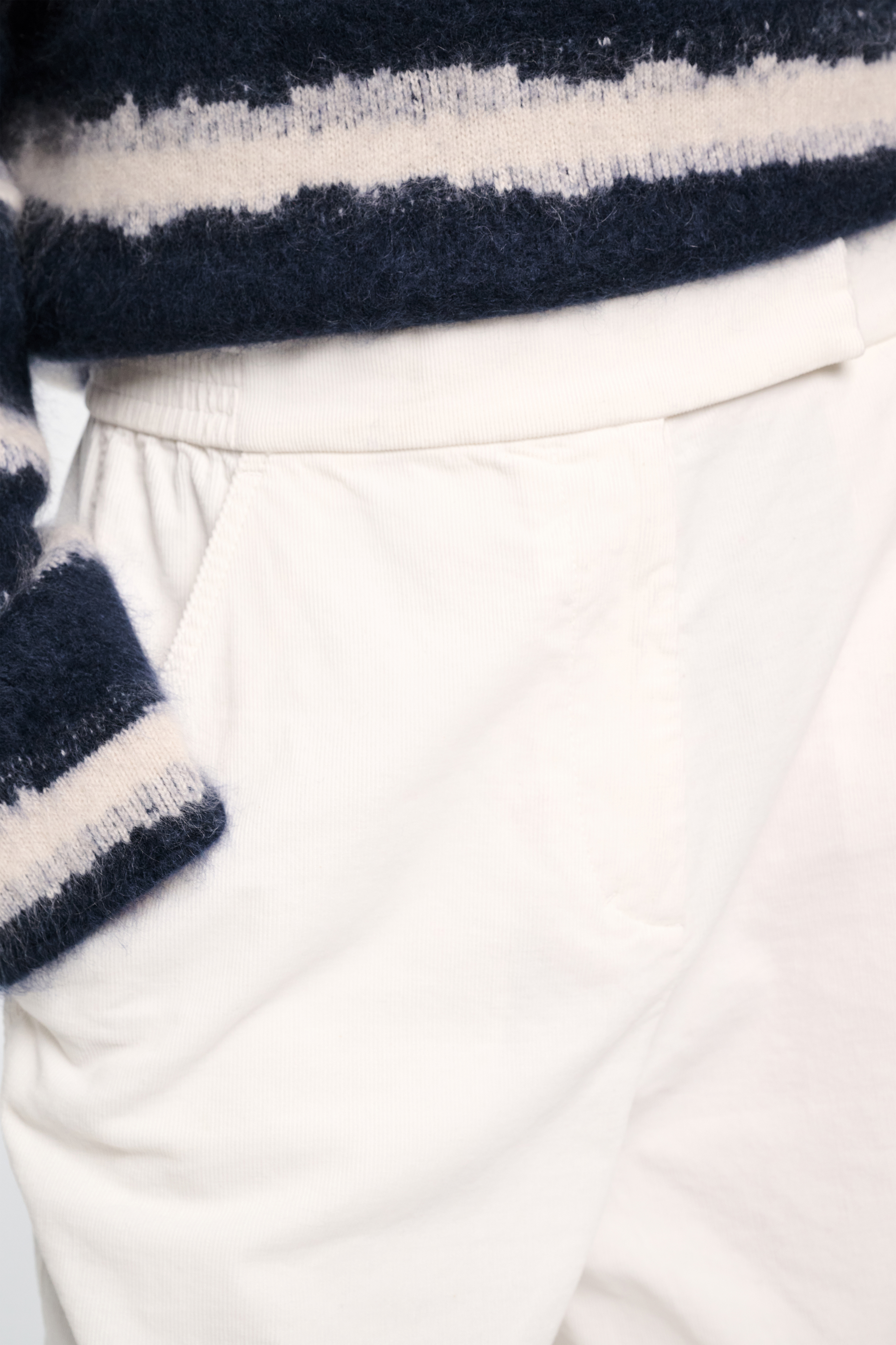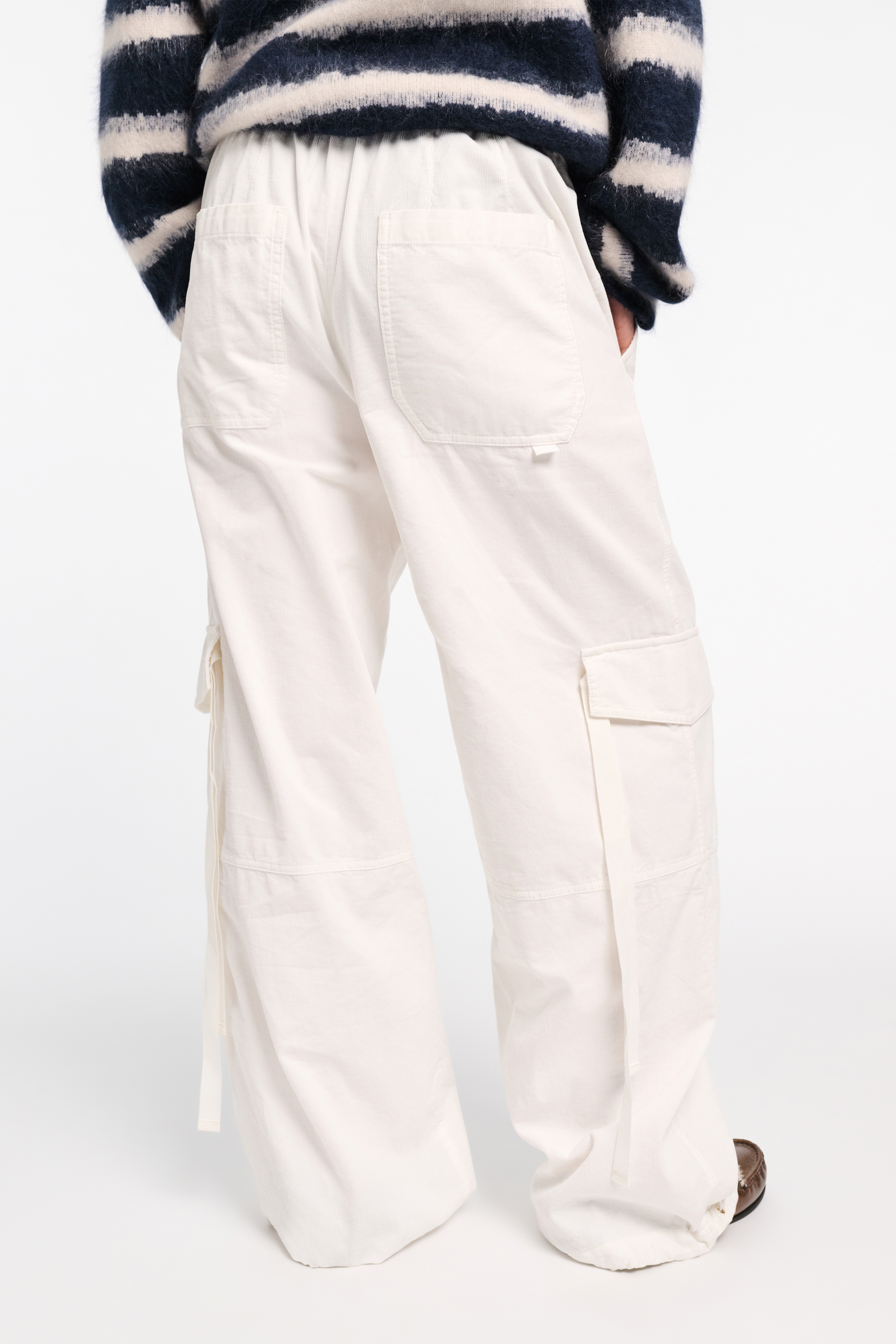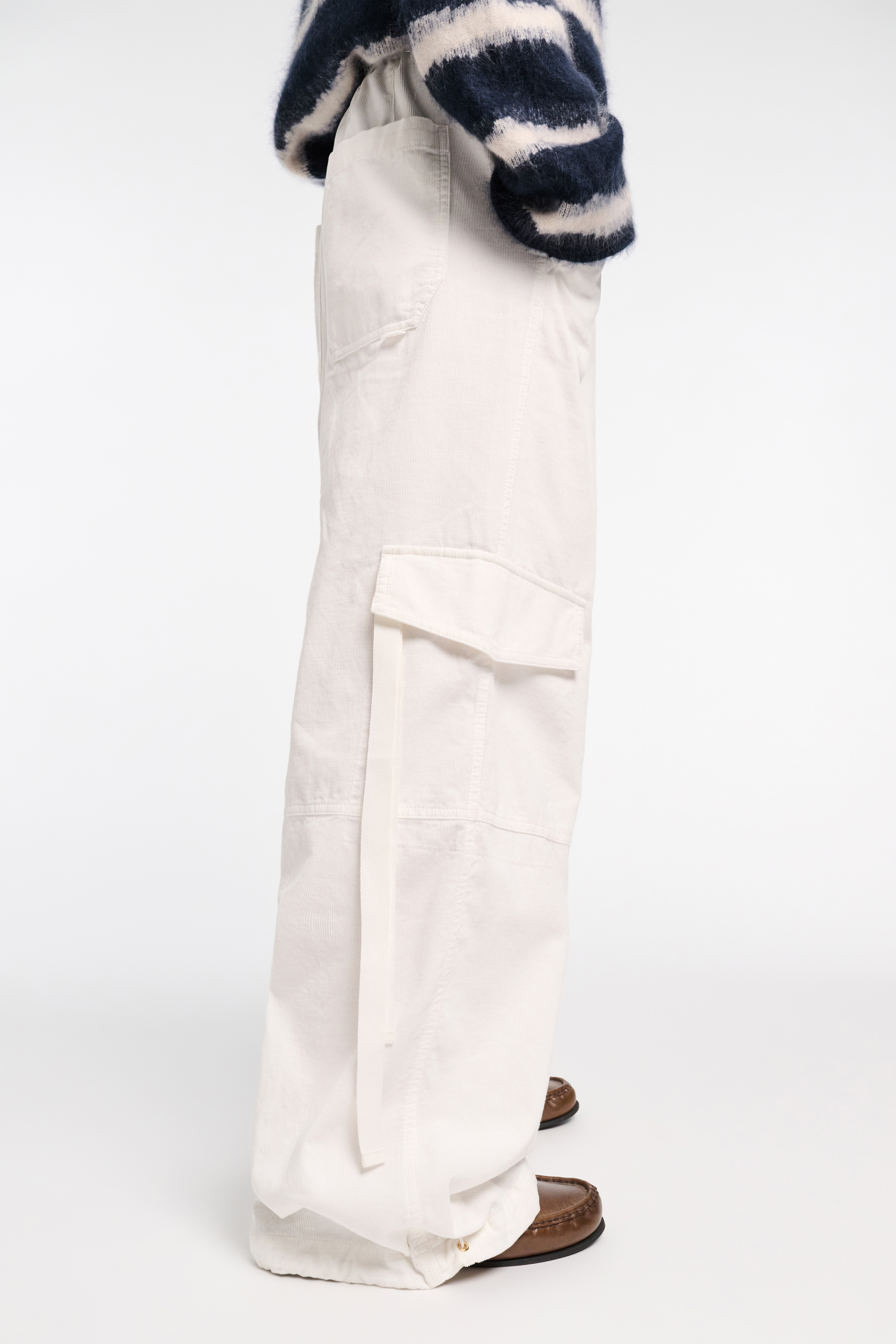 The cargo pants are crafted in soft cotton corduroy and have a wide leg.