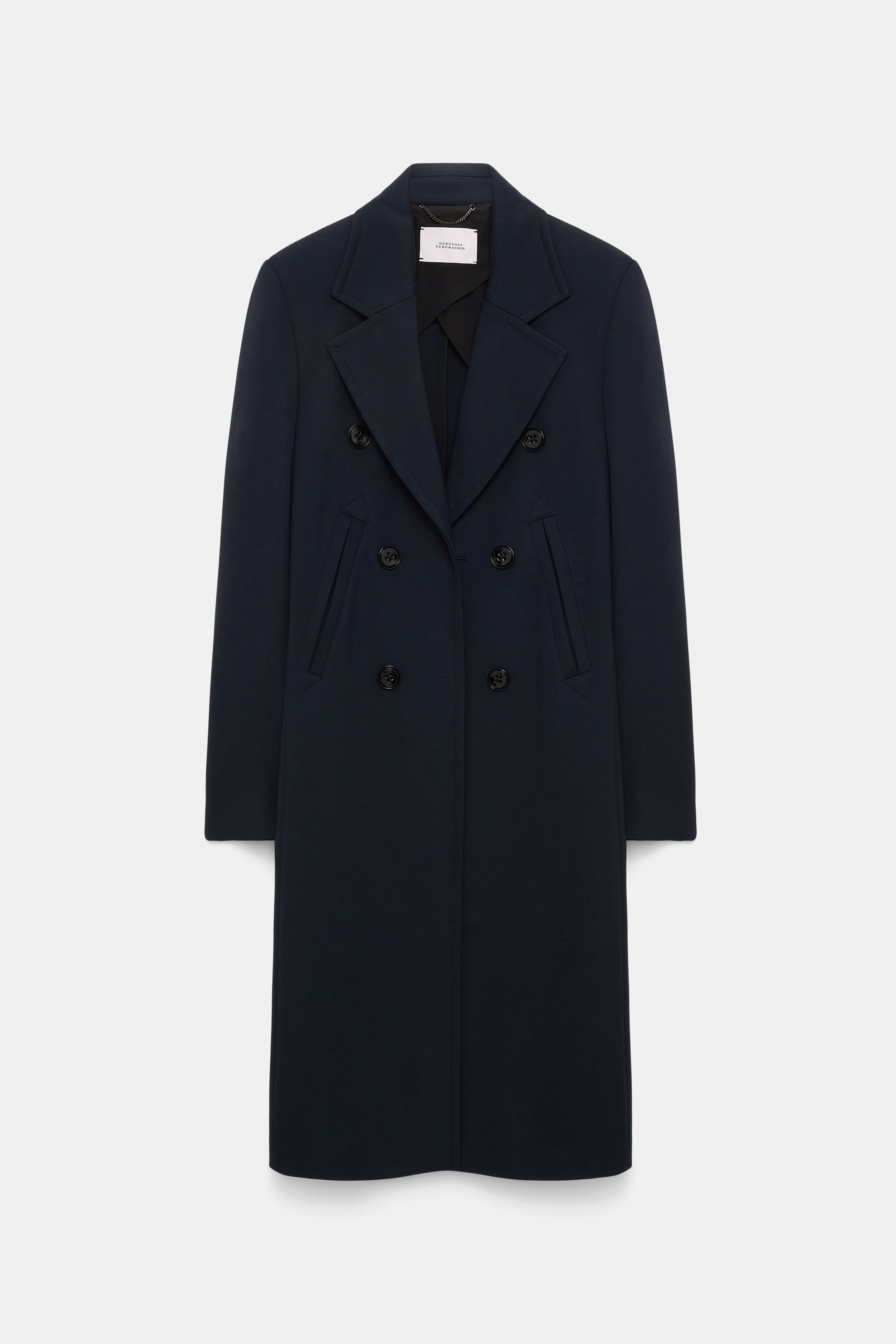Crafted in our forever-favorite Punto Milano, the longer-length blazer-style coat has a double-breasted button front and notched collar.