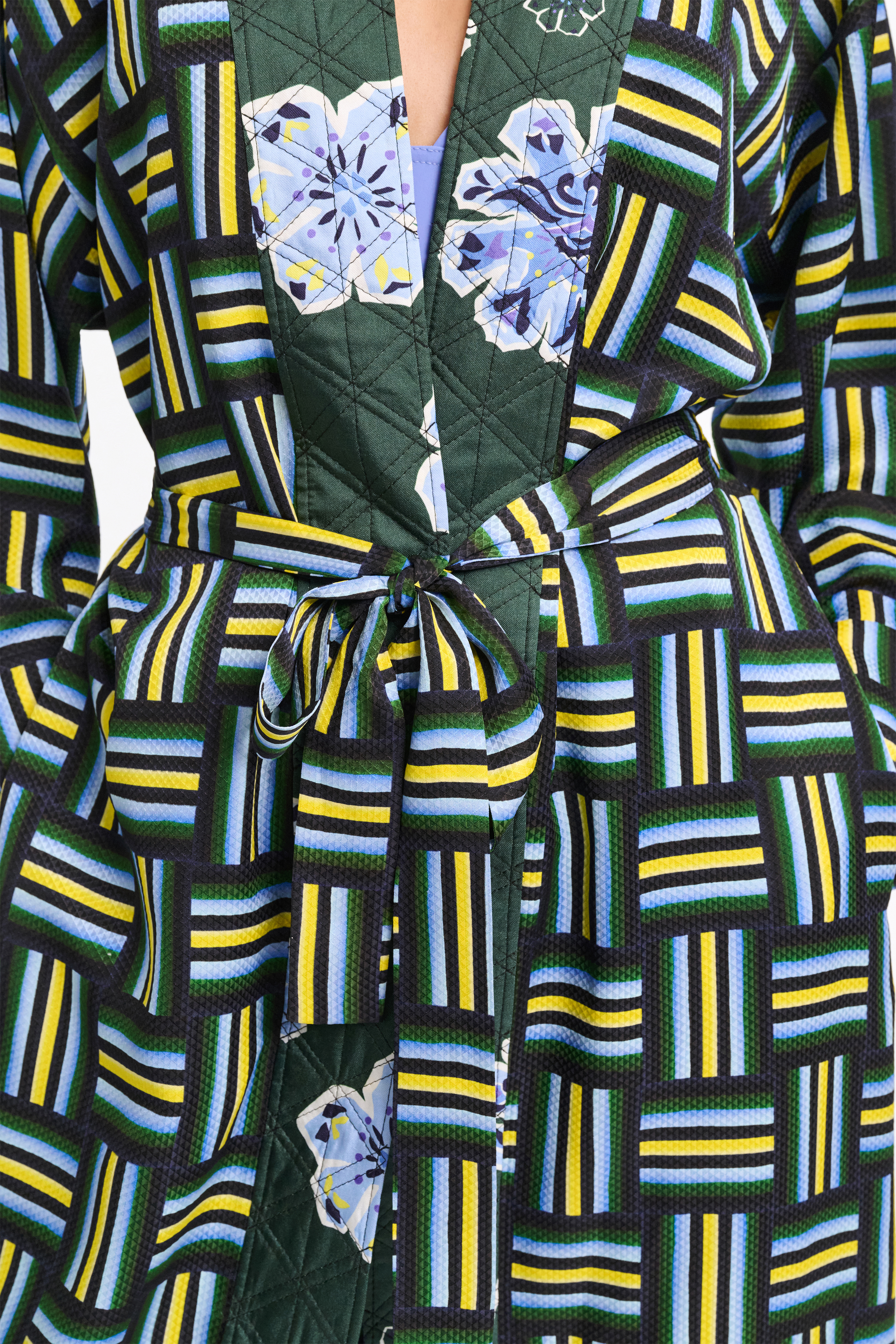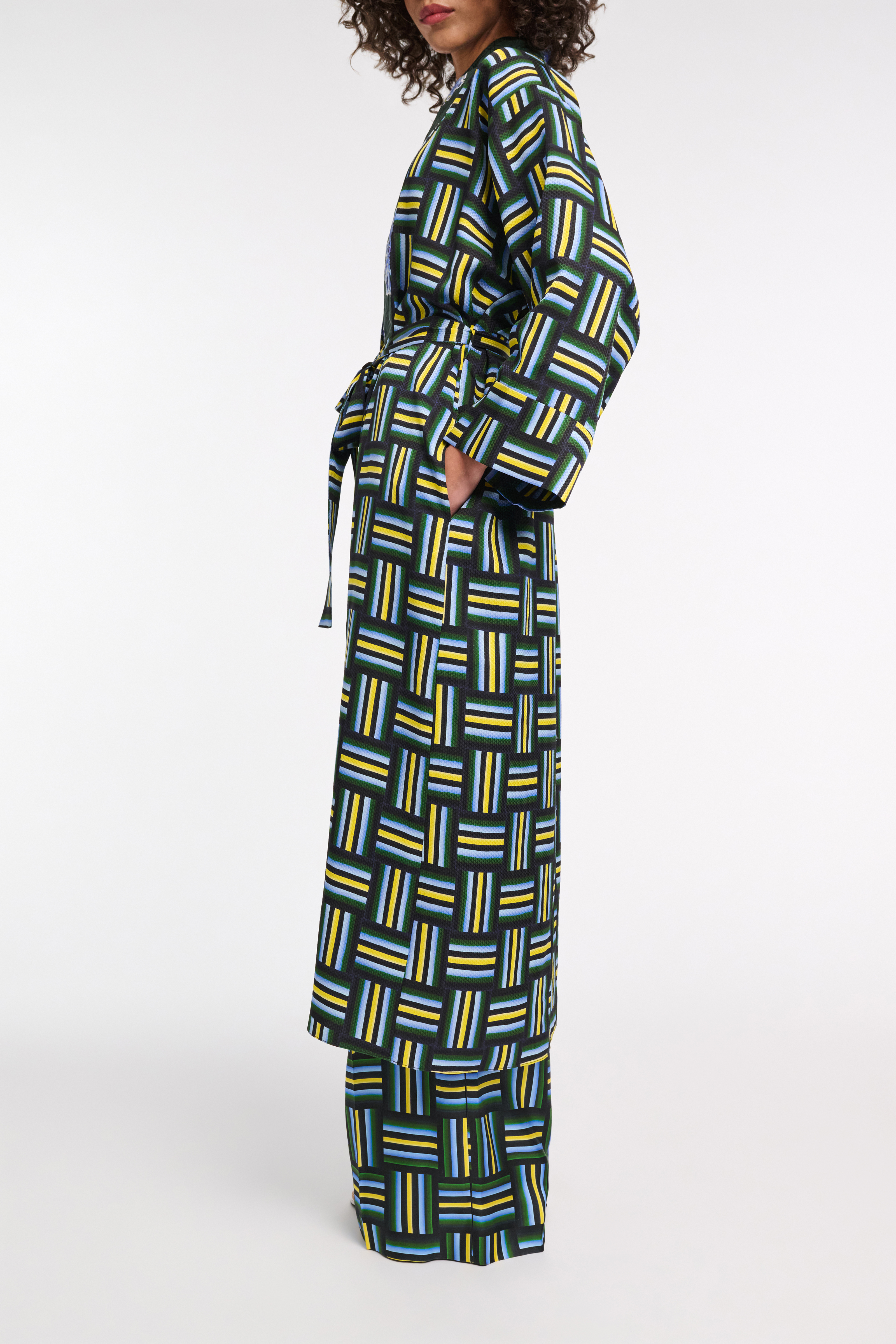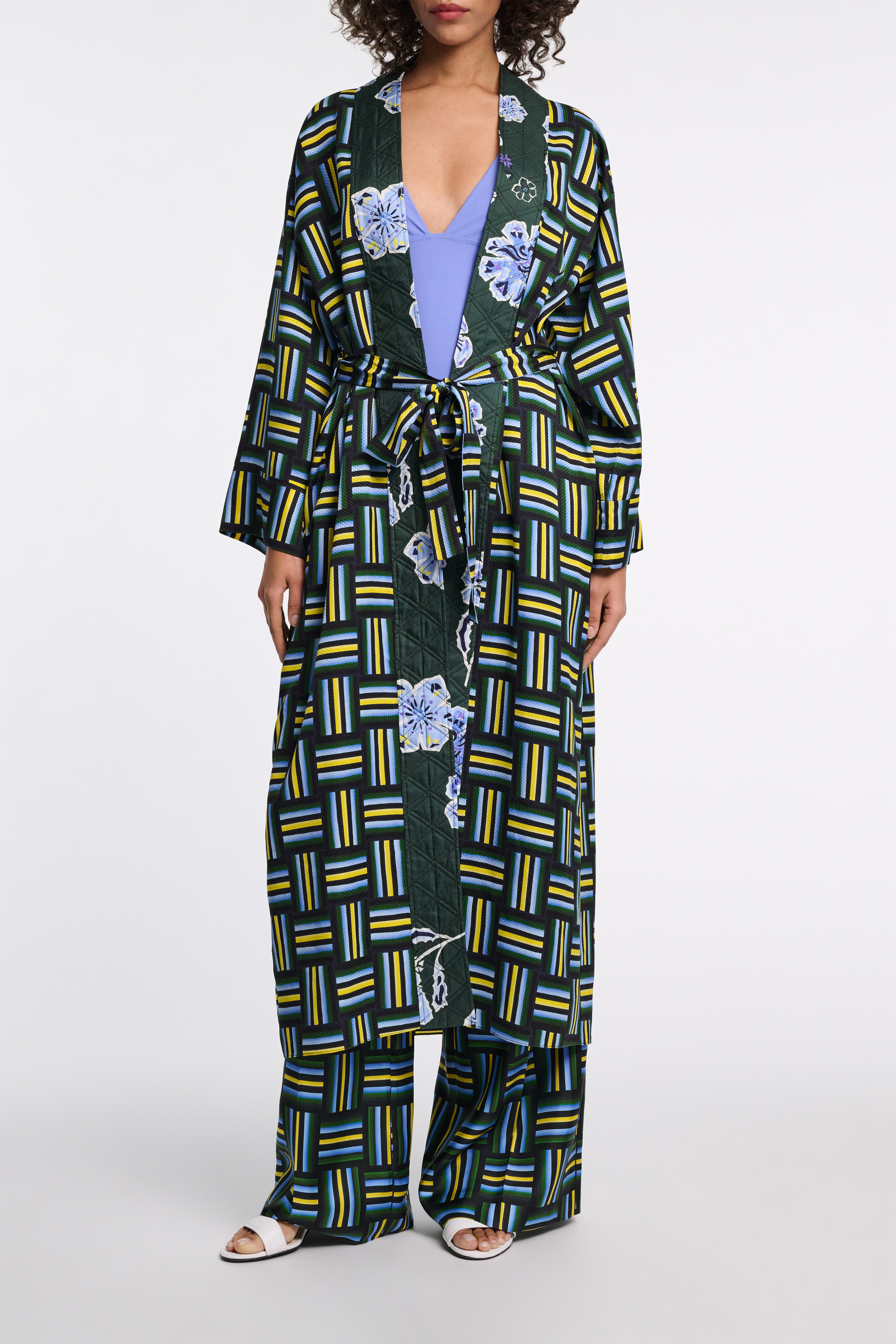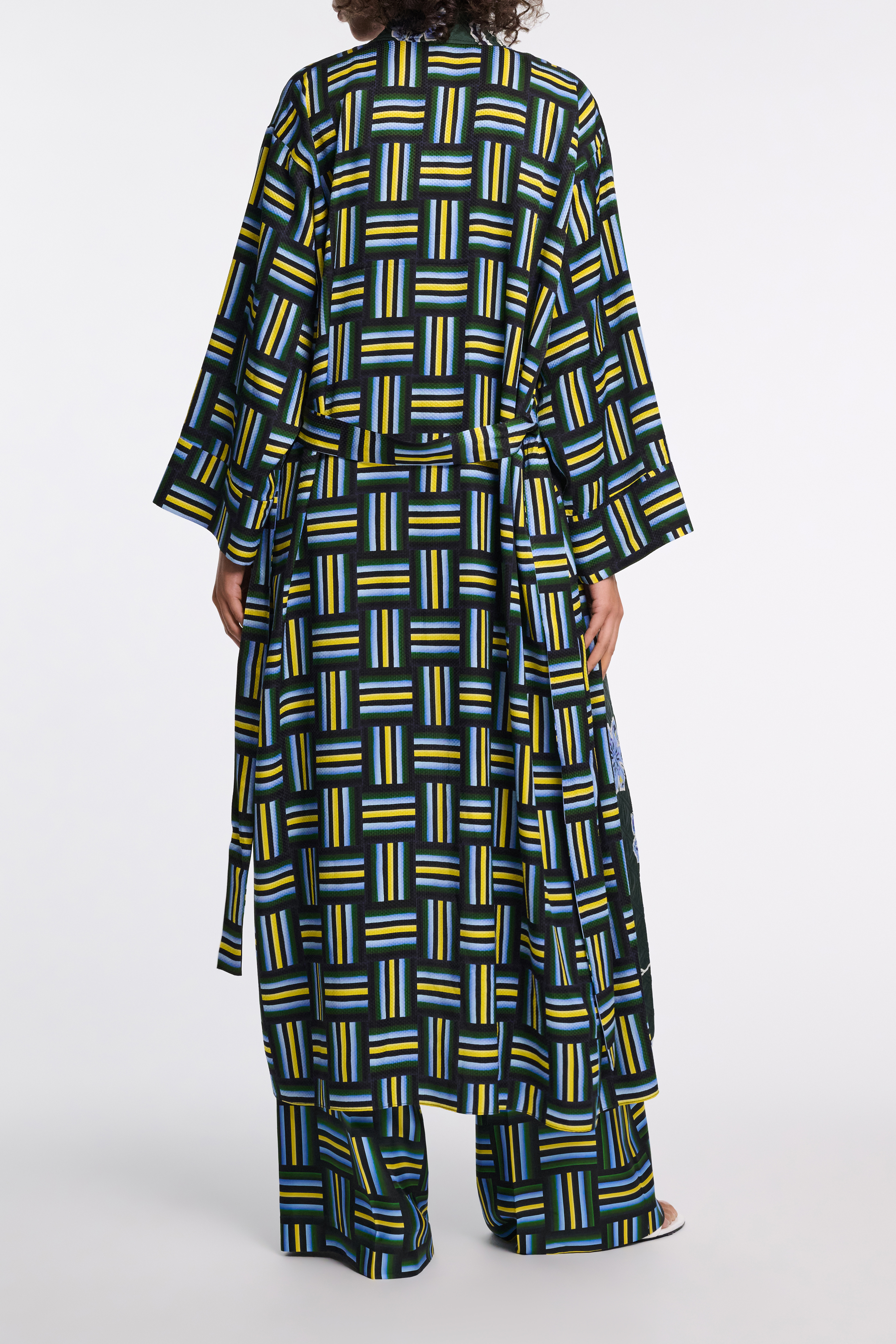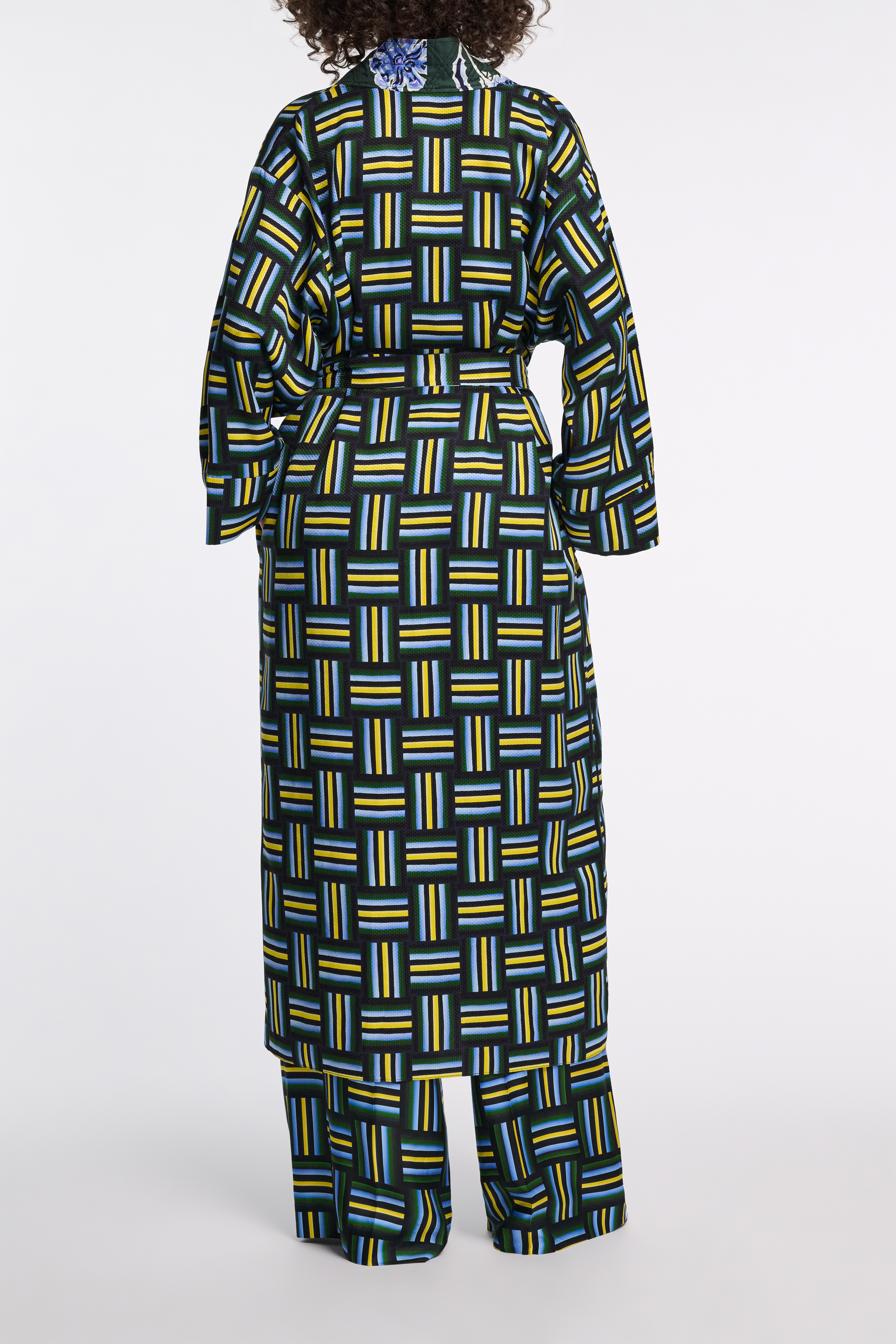 Dreaming about thisâ?¦The silk jacquard pajama coat has a double sided print and ankle-grazing length.
