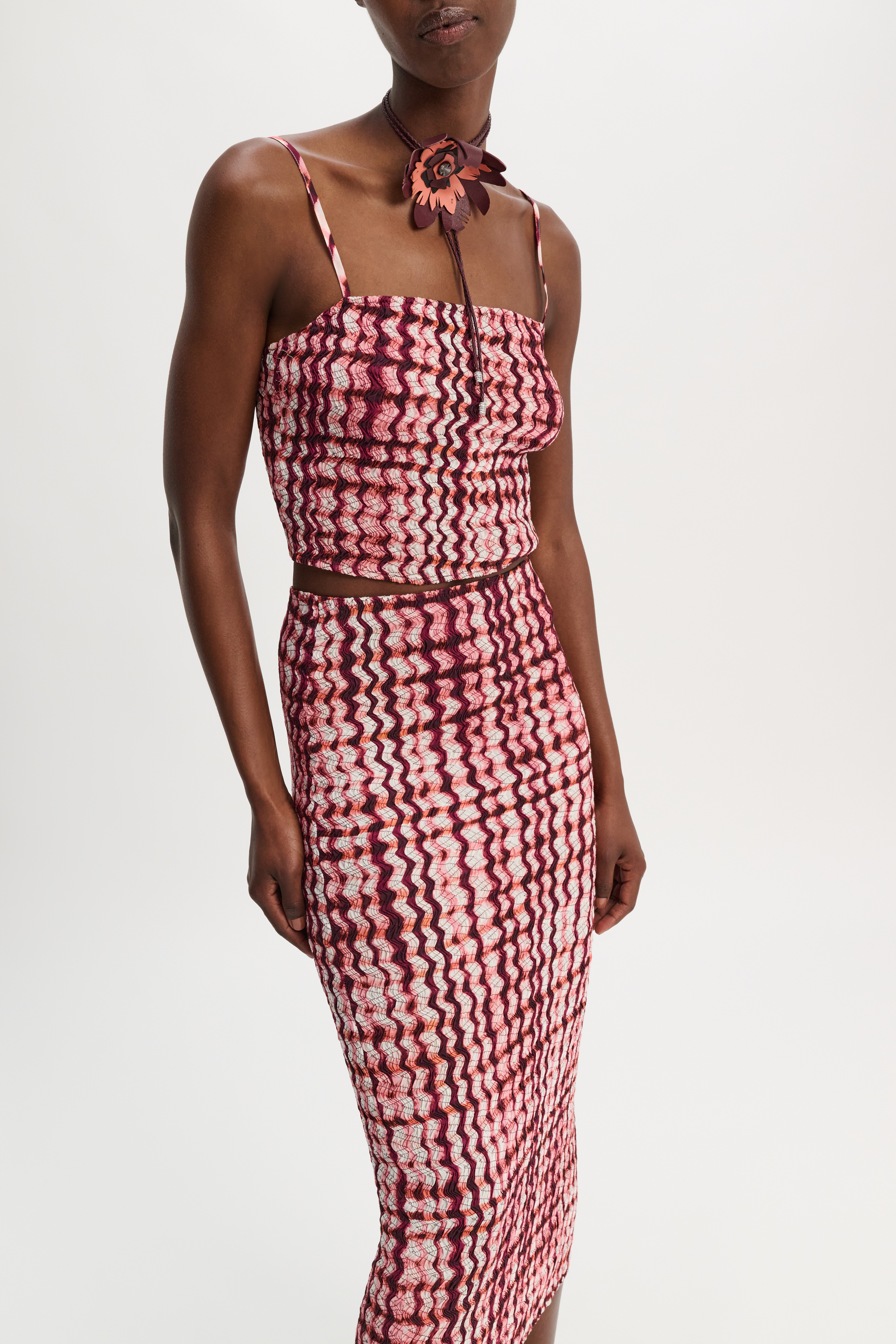 The fitted style has allover smocking, and can be paired with the matching skirt for a dress-like look.