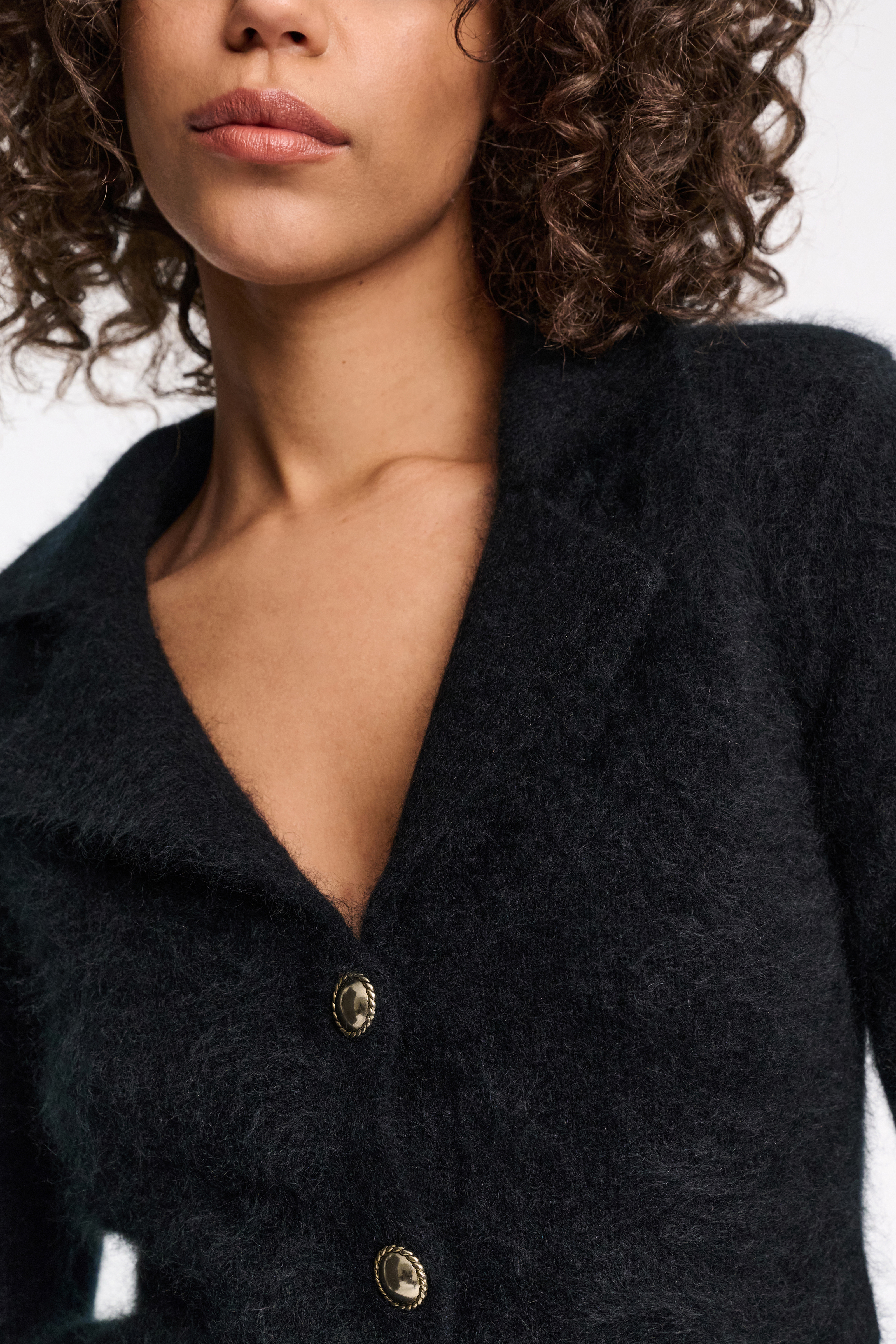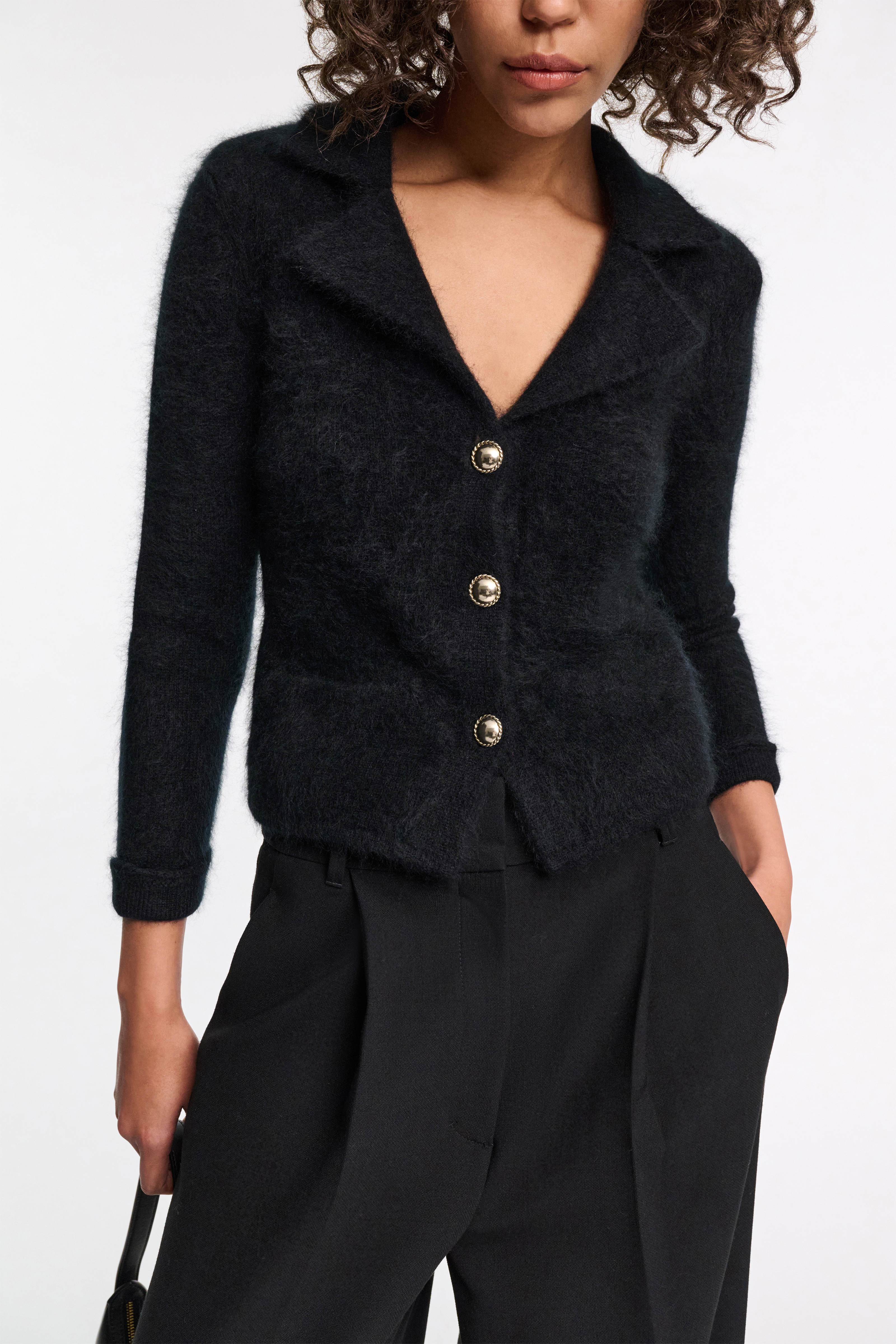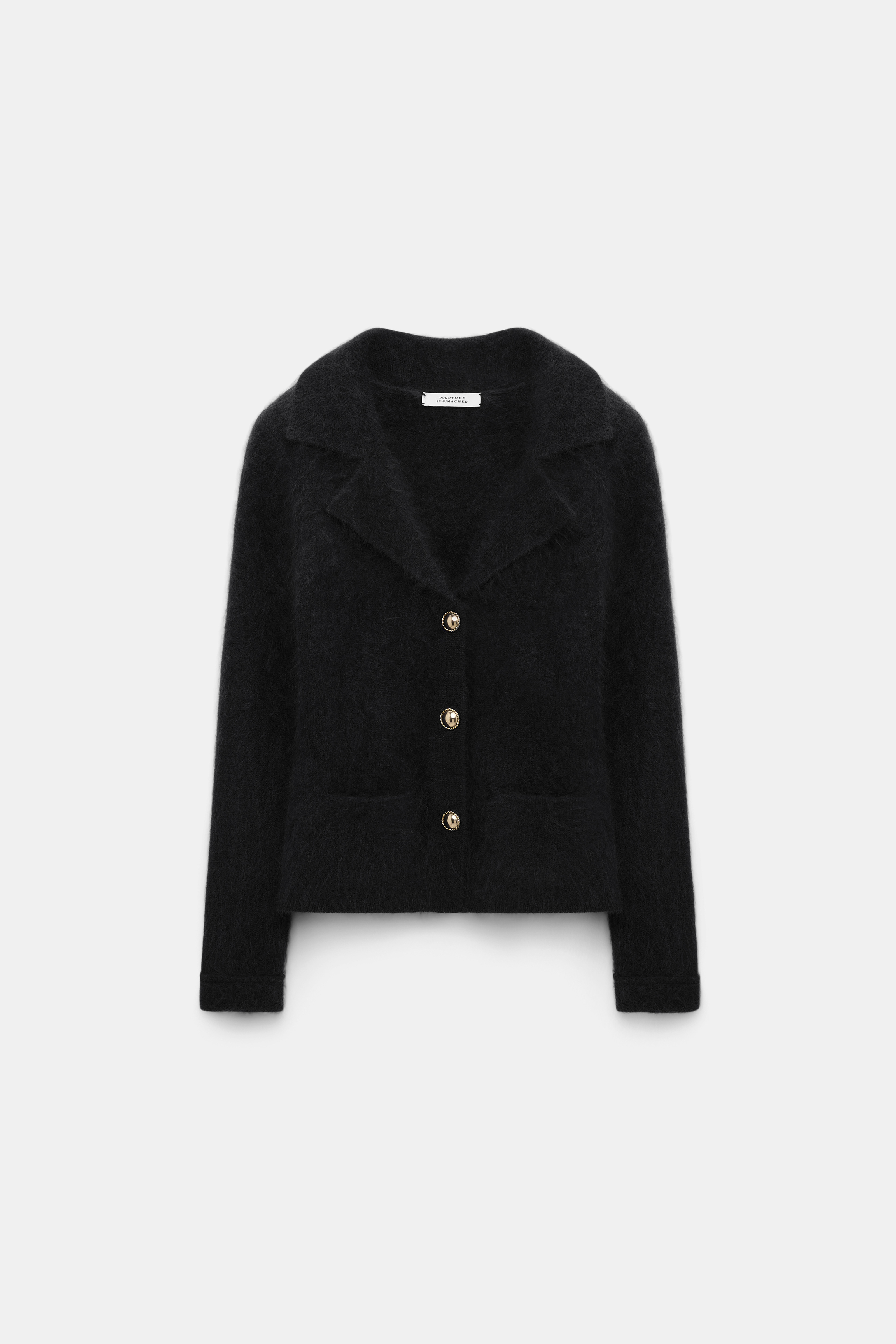 Finished with our special new fluffy knit wash, the blazer-style cardigan is extra soft and has a tactile feel.