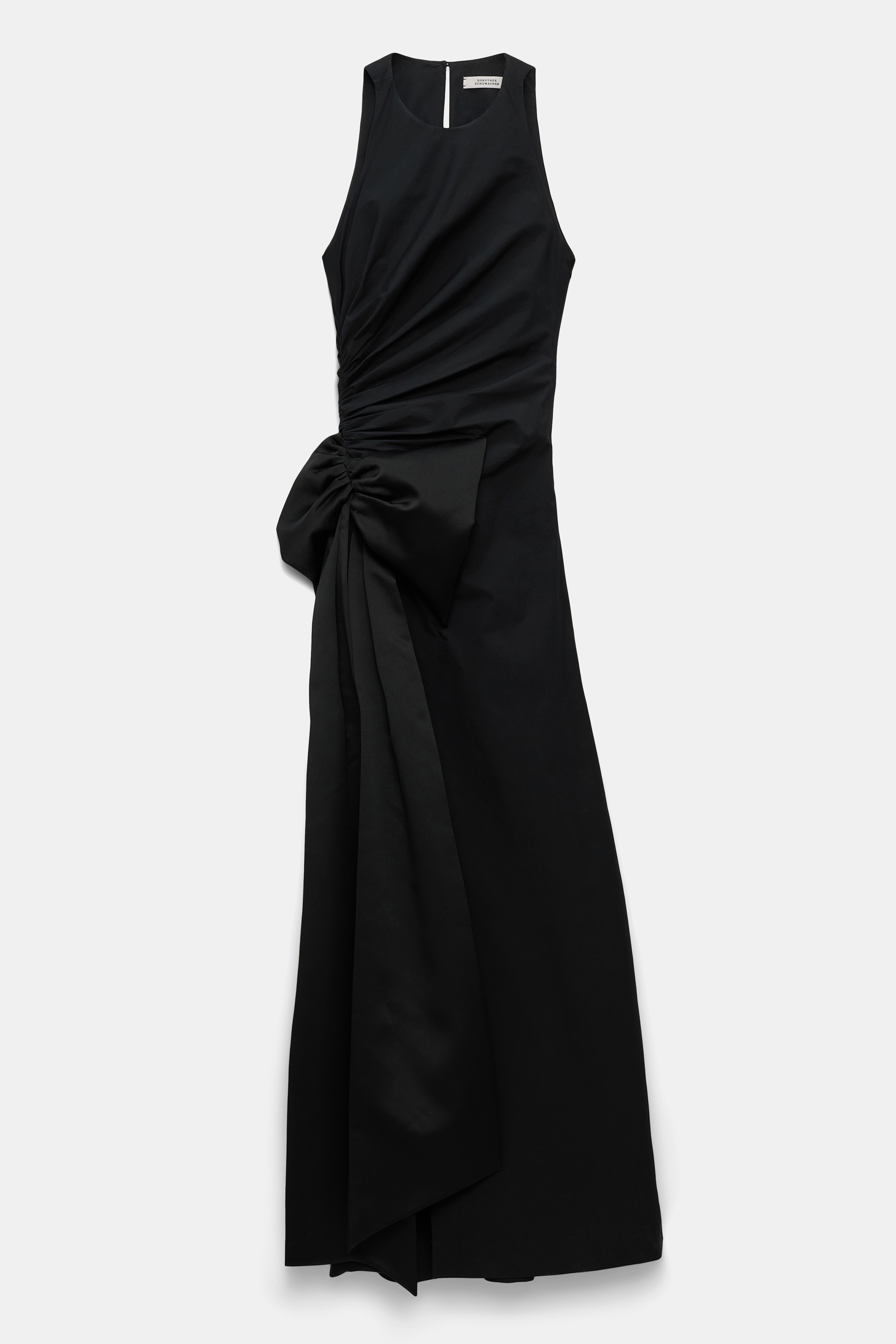 The floor-grazing dress is cut in cotton-poplin and features soft draping and an XL satin bow on the hip.