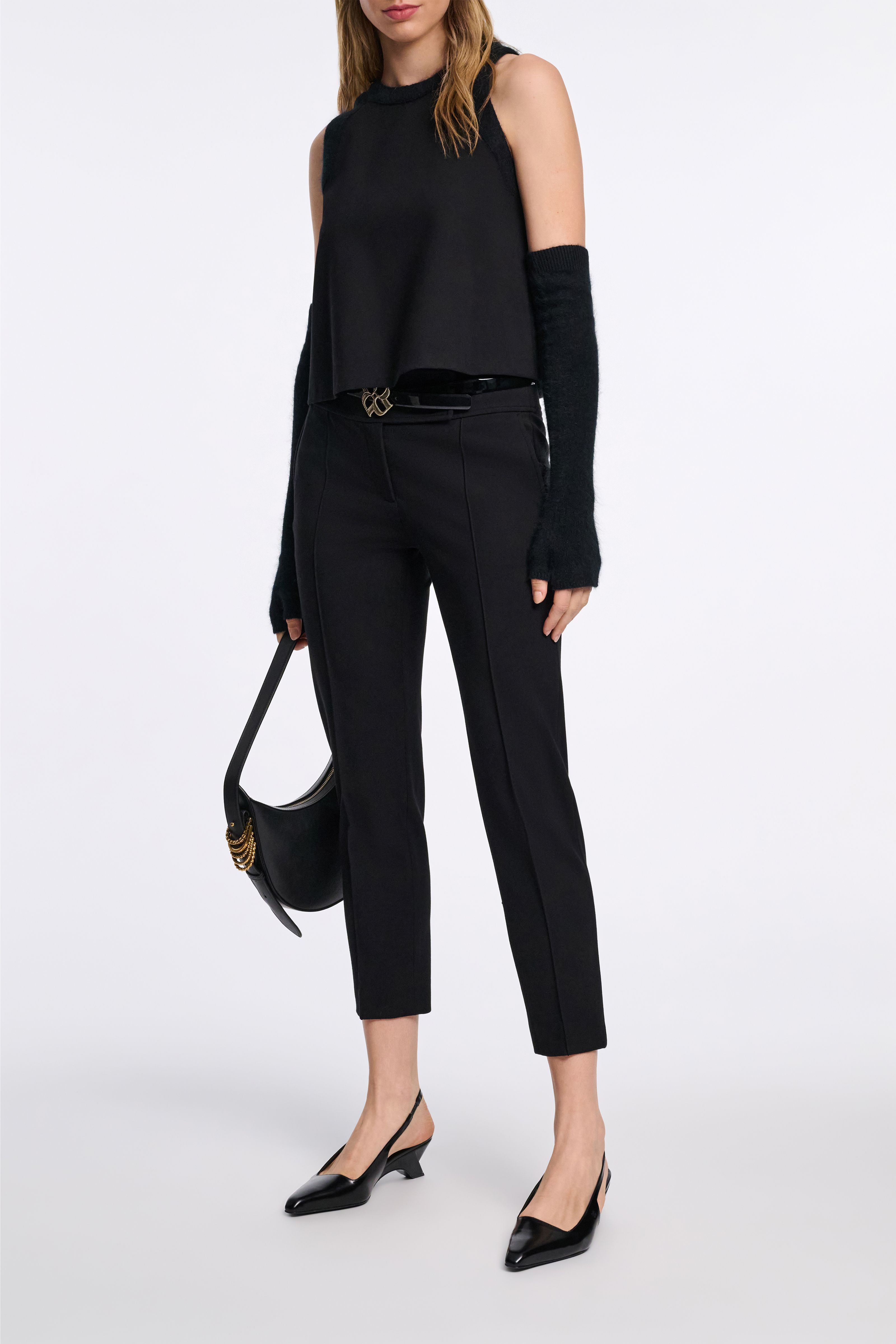 The Punto Milano cigarette pants have a wide waistband and a slight cropped leg.