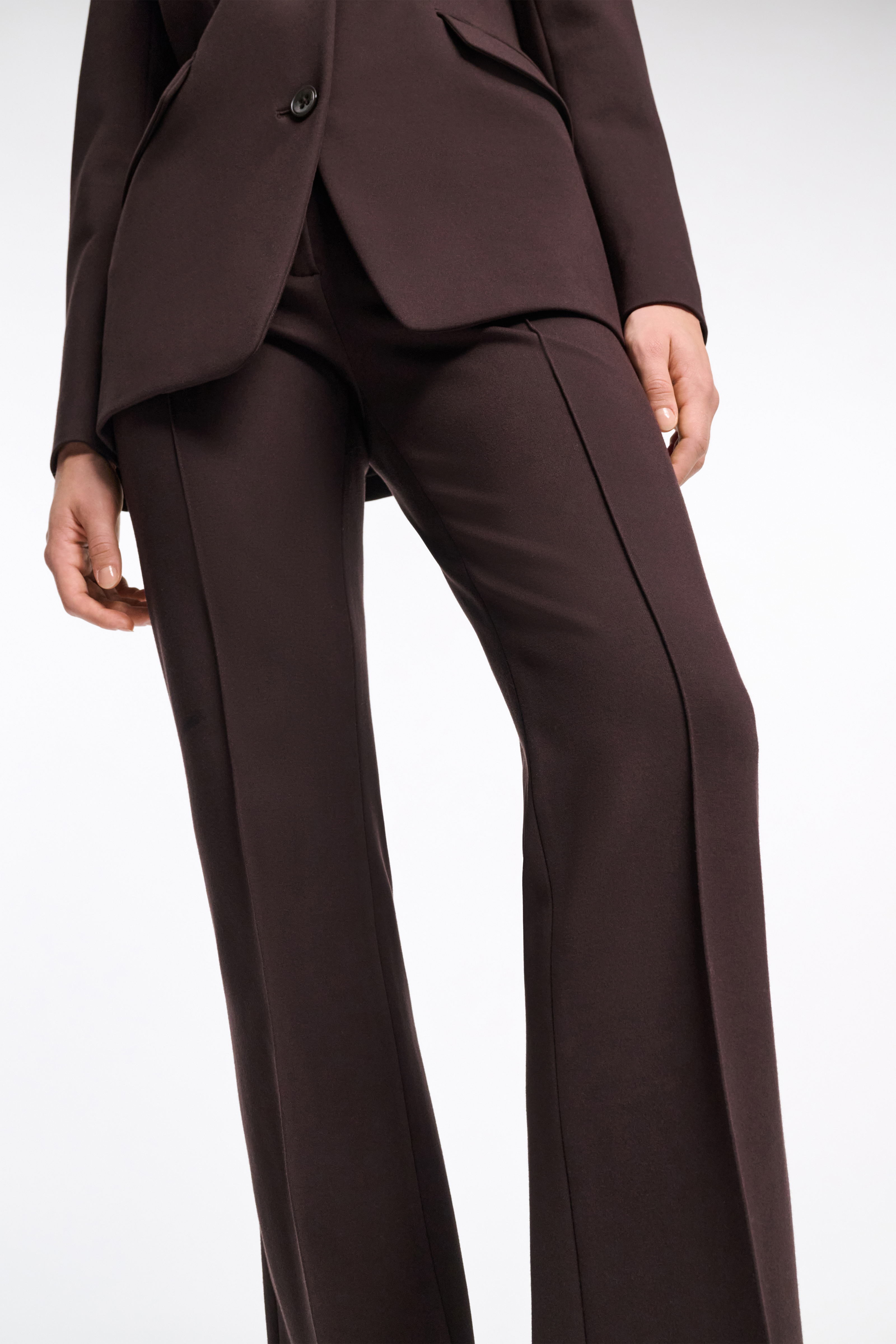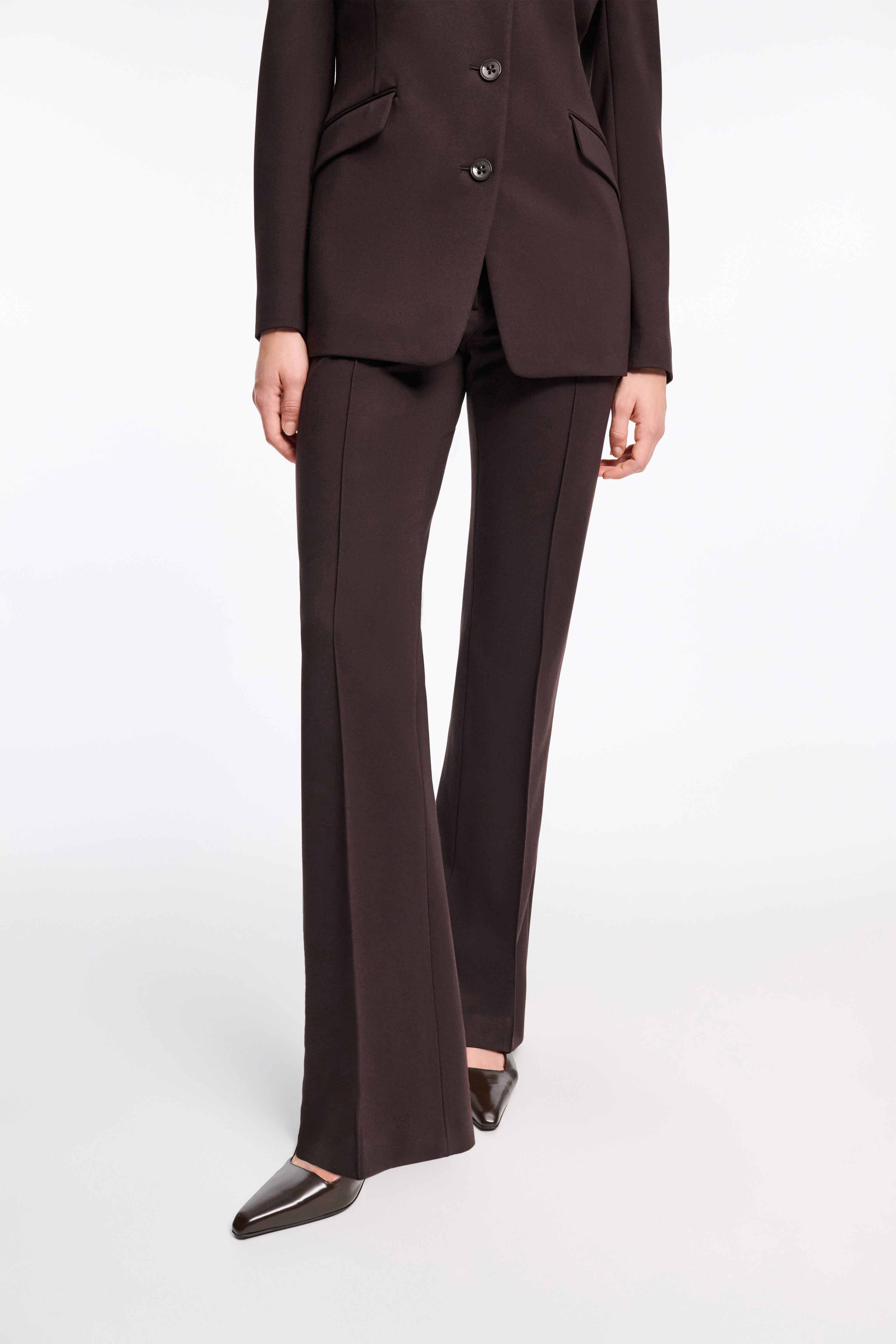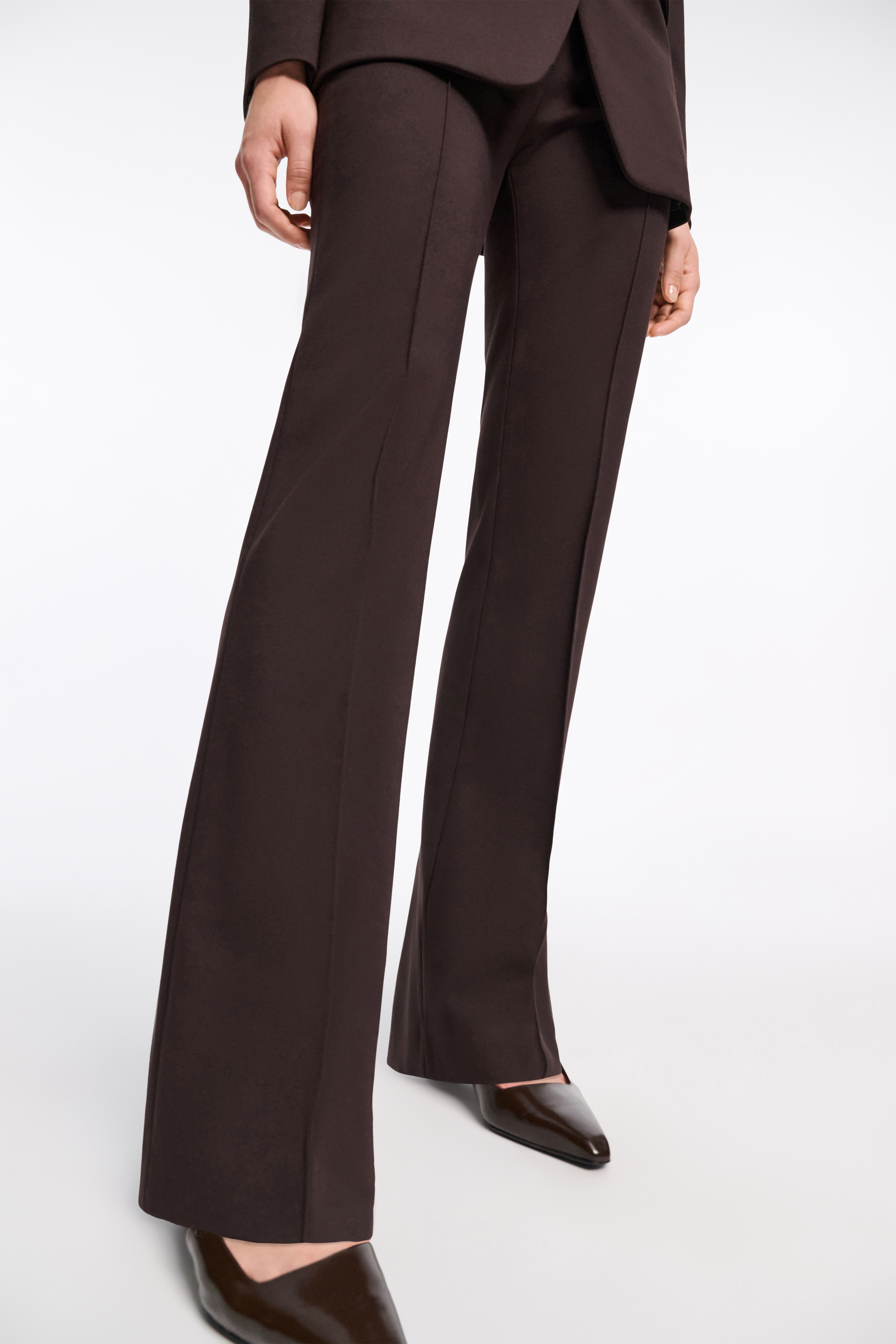 Colored in a rich shade of espresso, the Punto Milano pants channel a key colorway of the collection.