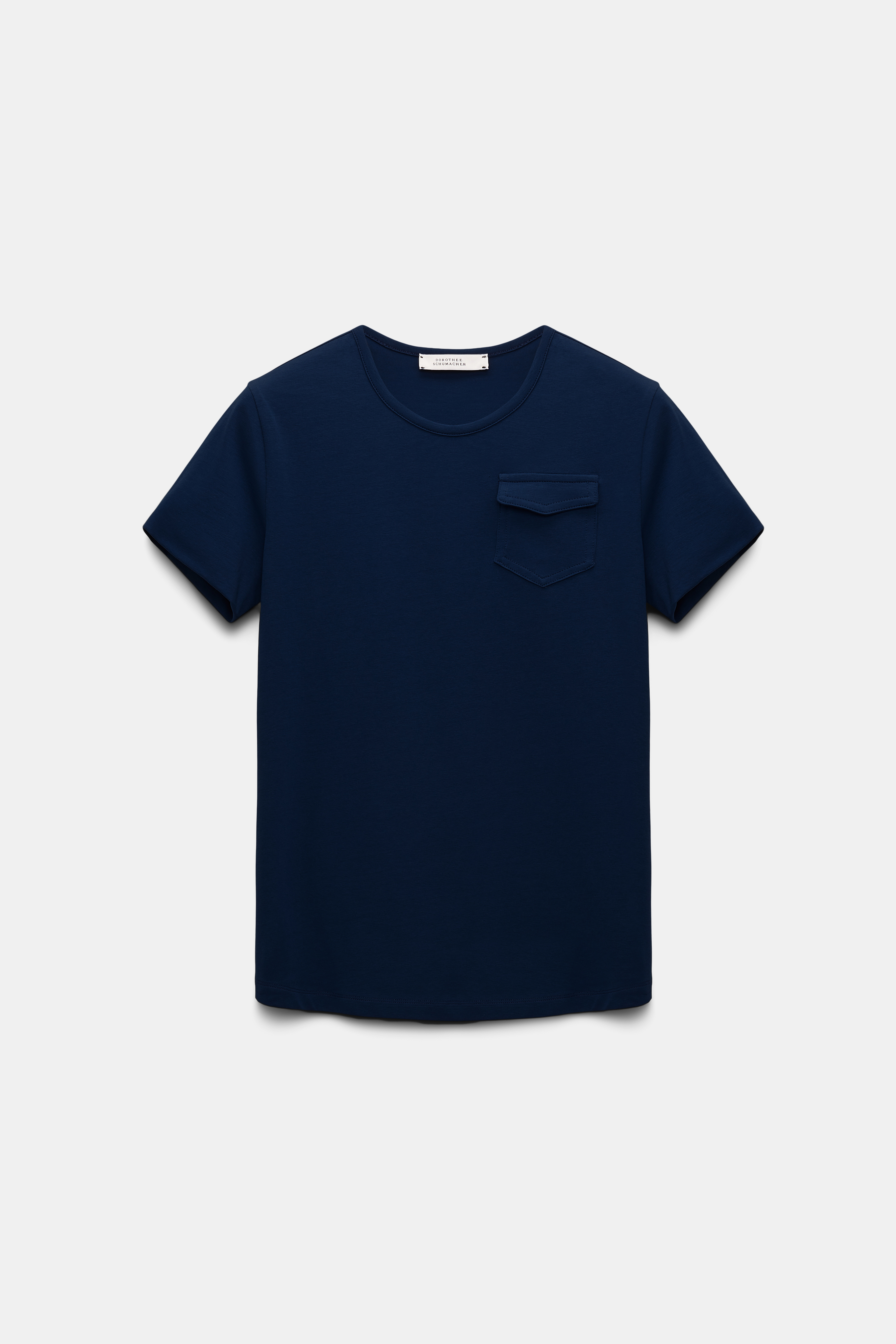 Das Rundhalsshirt ist aus einem angenehmen Baumwoll-Stretch Mix gefertigt.