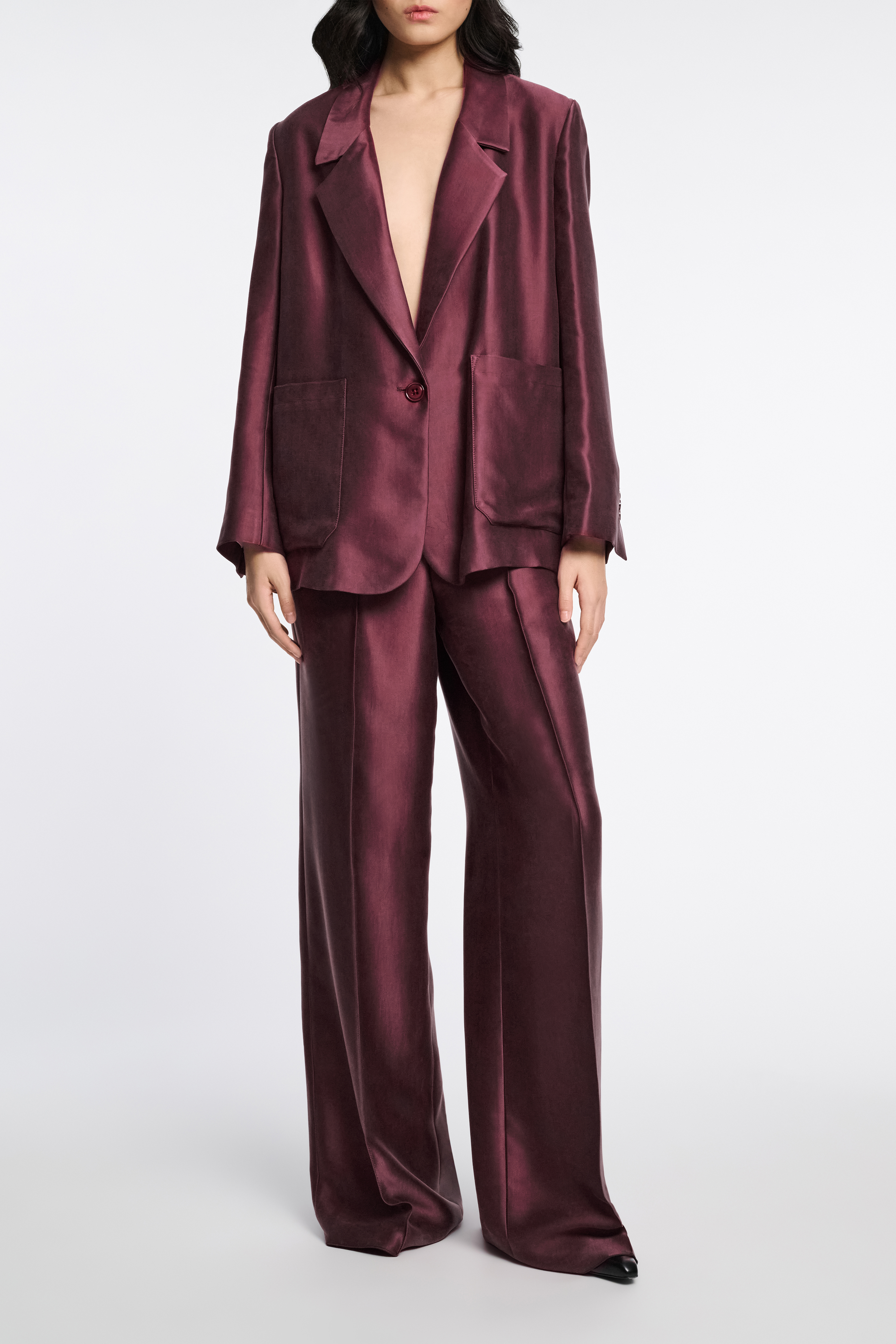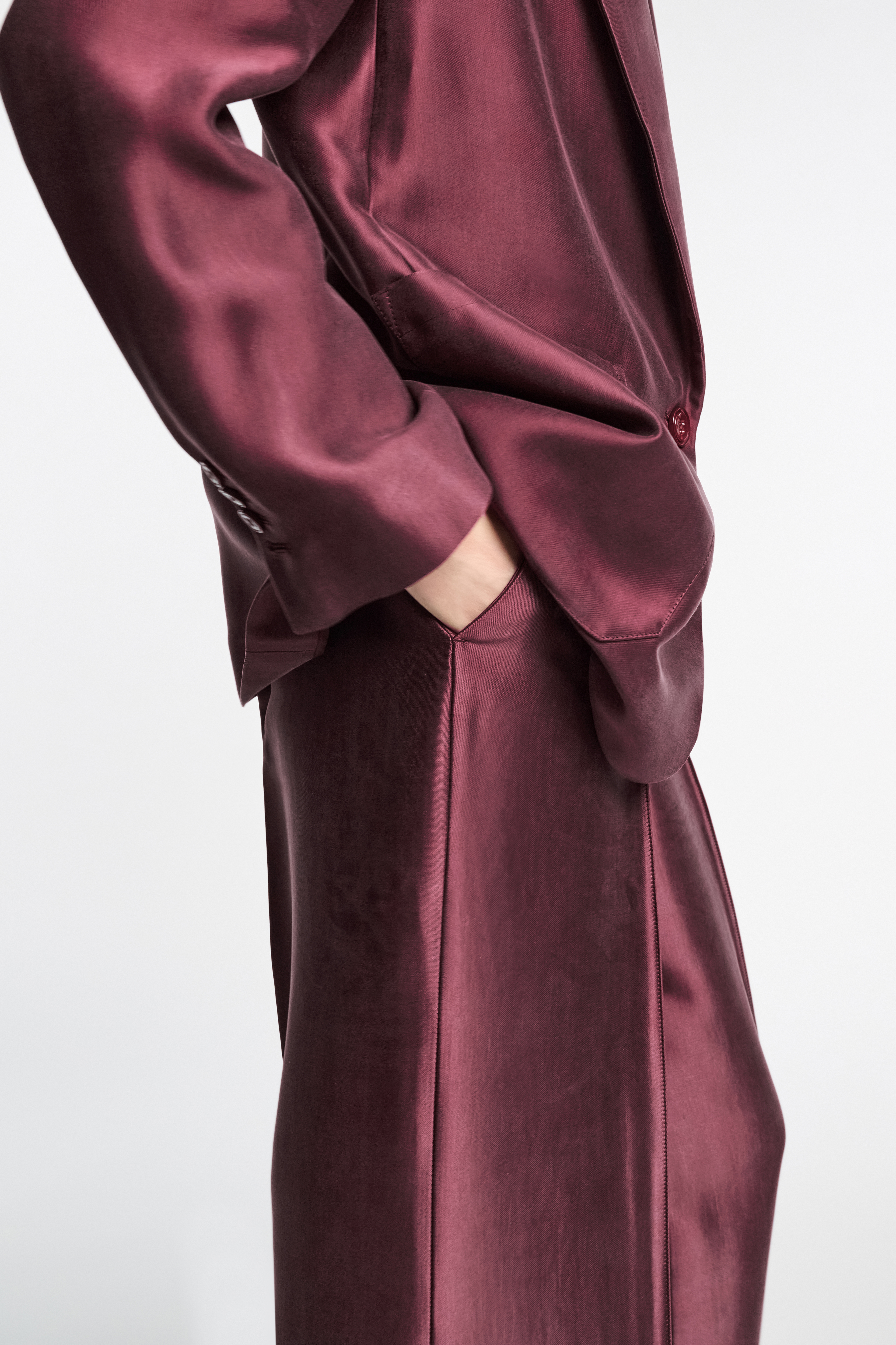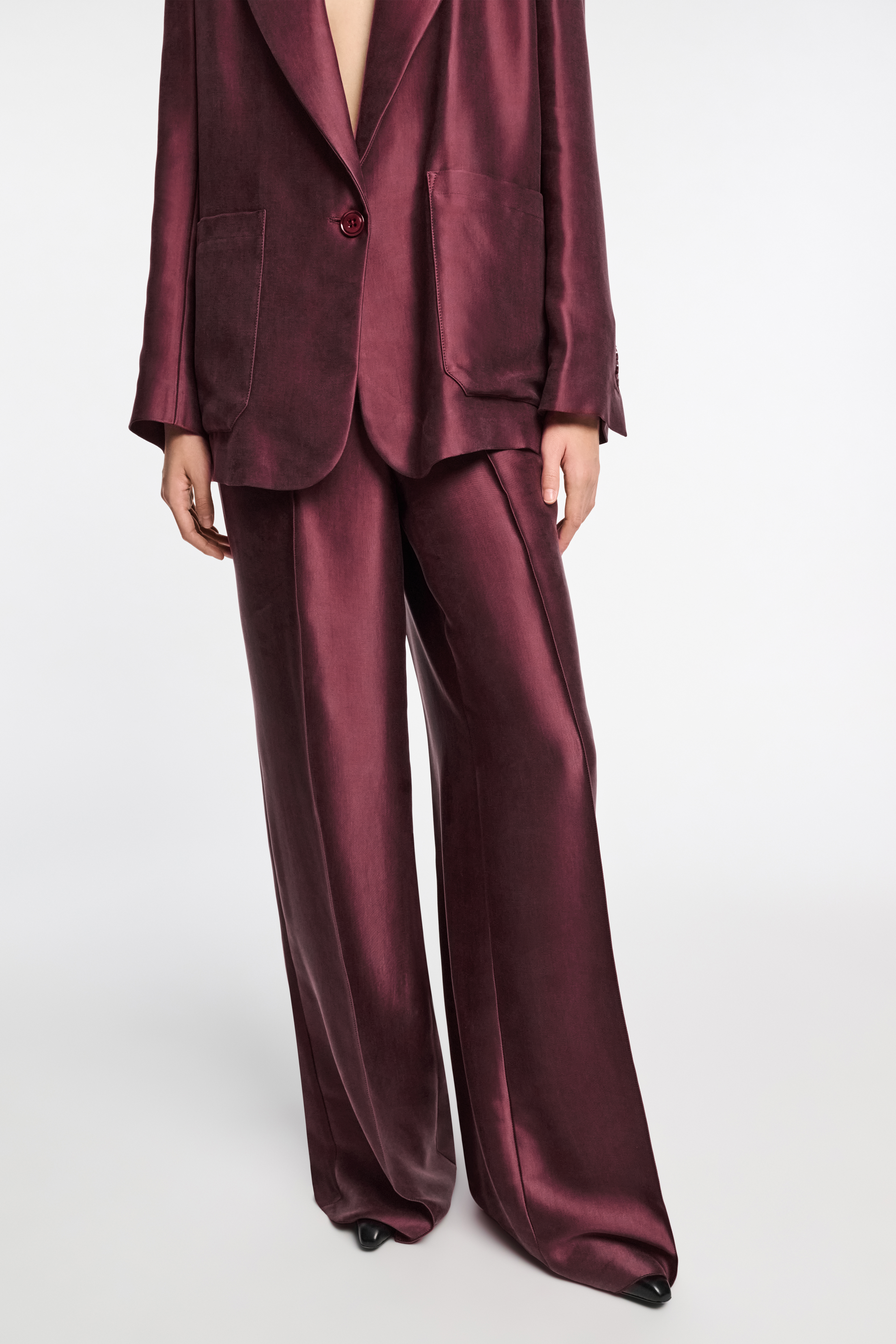 Die Hose aus Lyocell wird durch ein spezielles Finish mit samtiger Haptik ausgezeichnet.