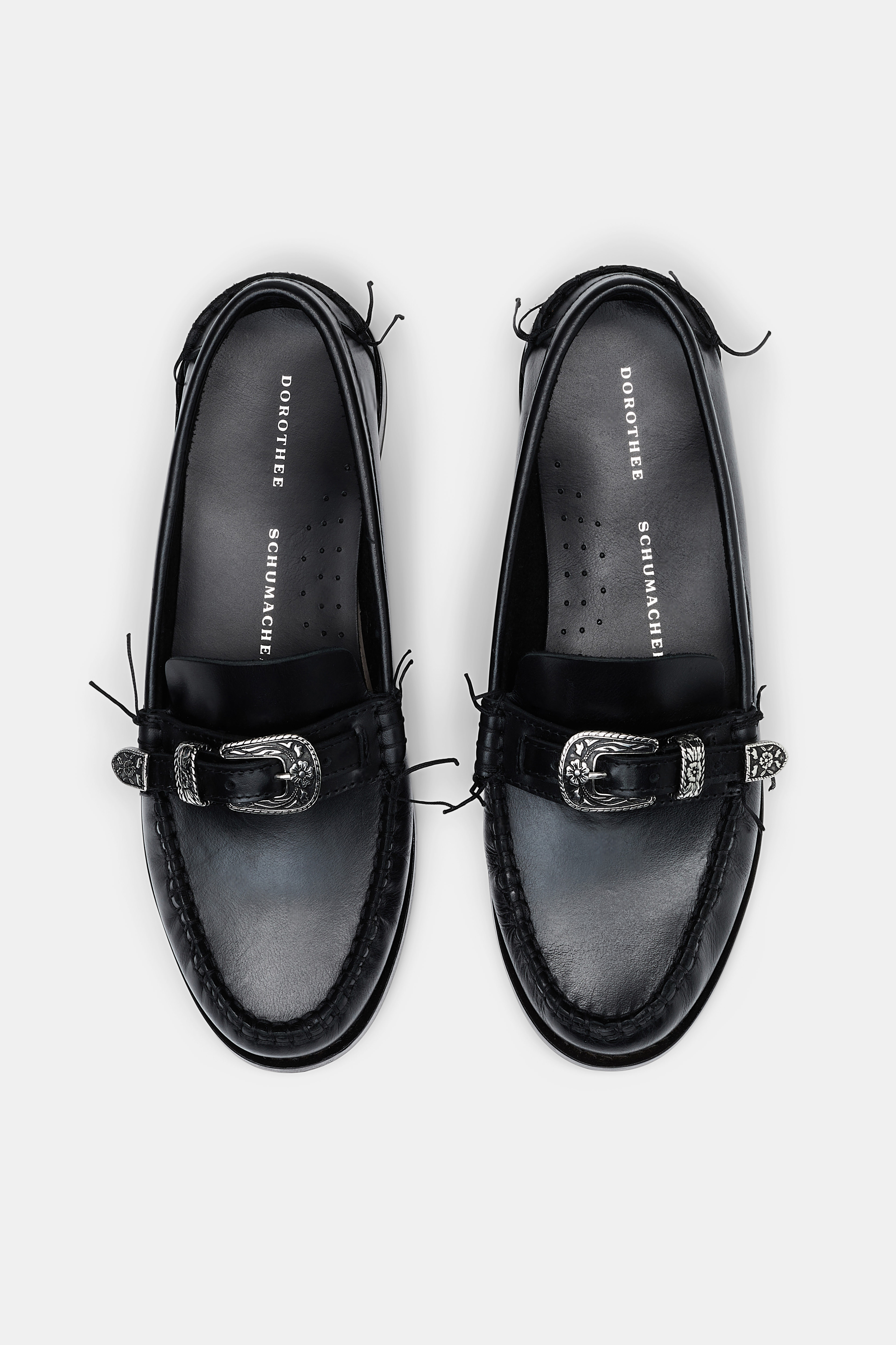 Dorothee Schumacher Loafer aus Kalbsleder mit Schließen und handgestickten