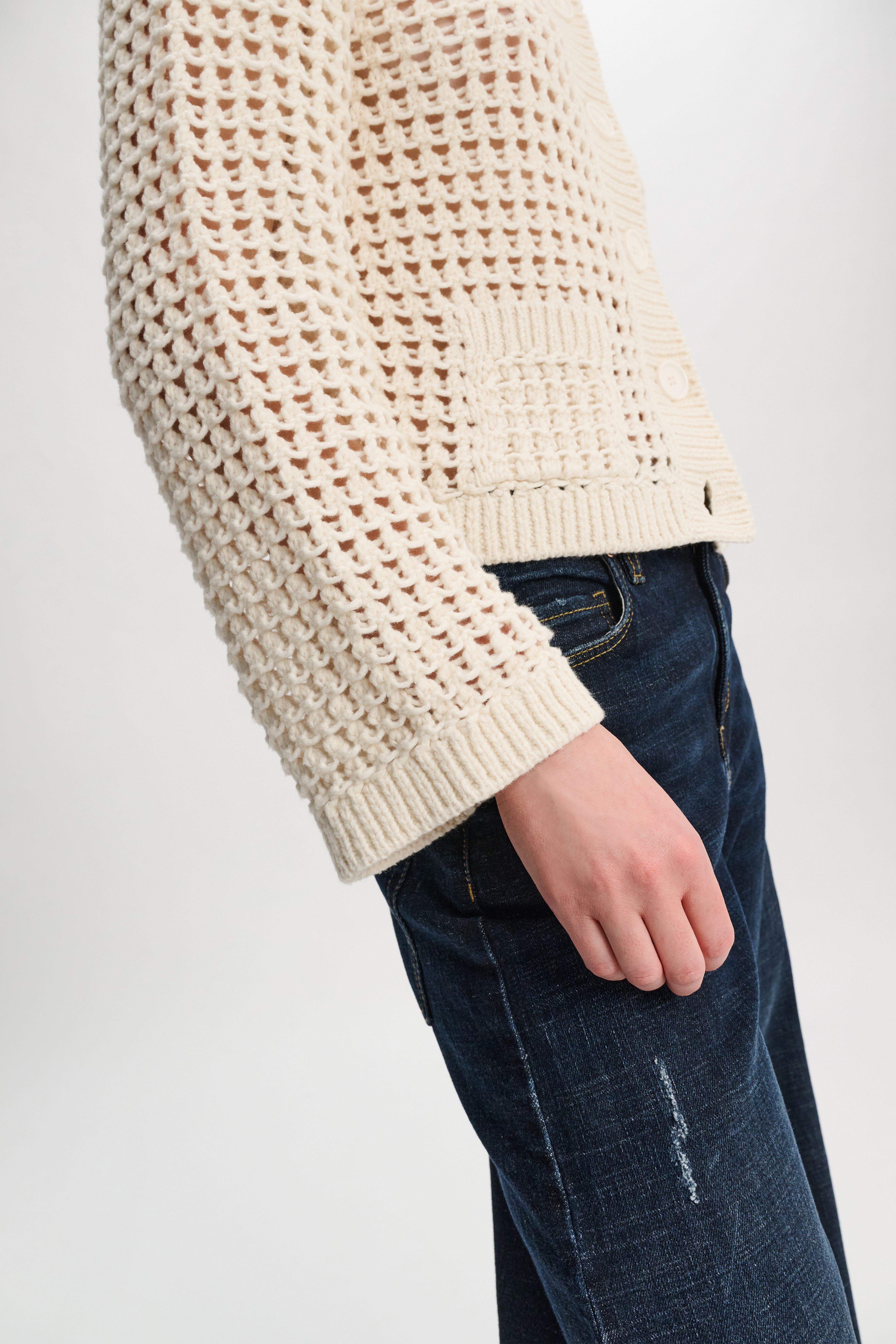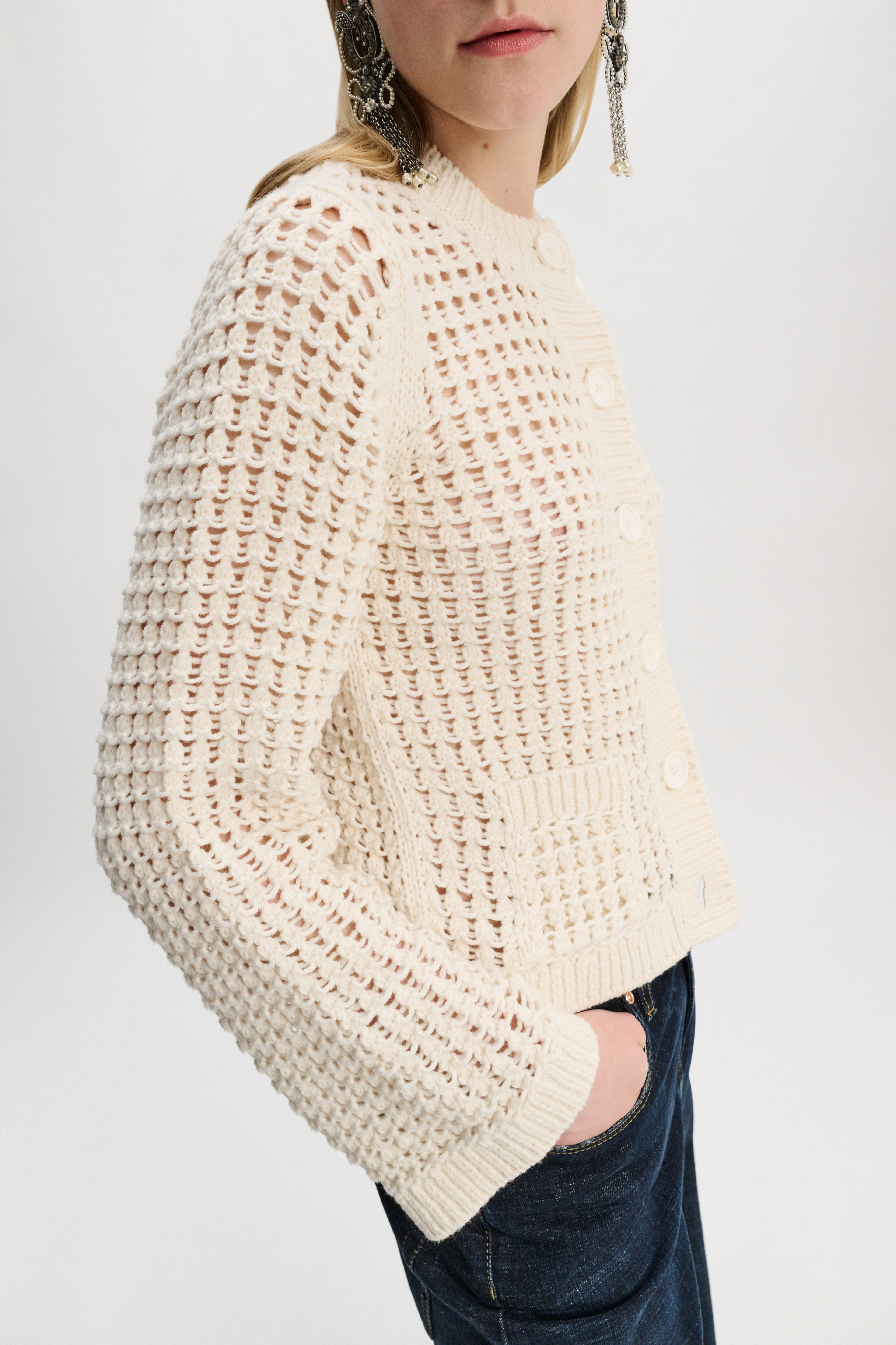 Der offene Pointellestrick erzeugt auf der leichten Baumwollmischung eine offene Struktur.